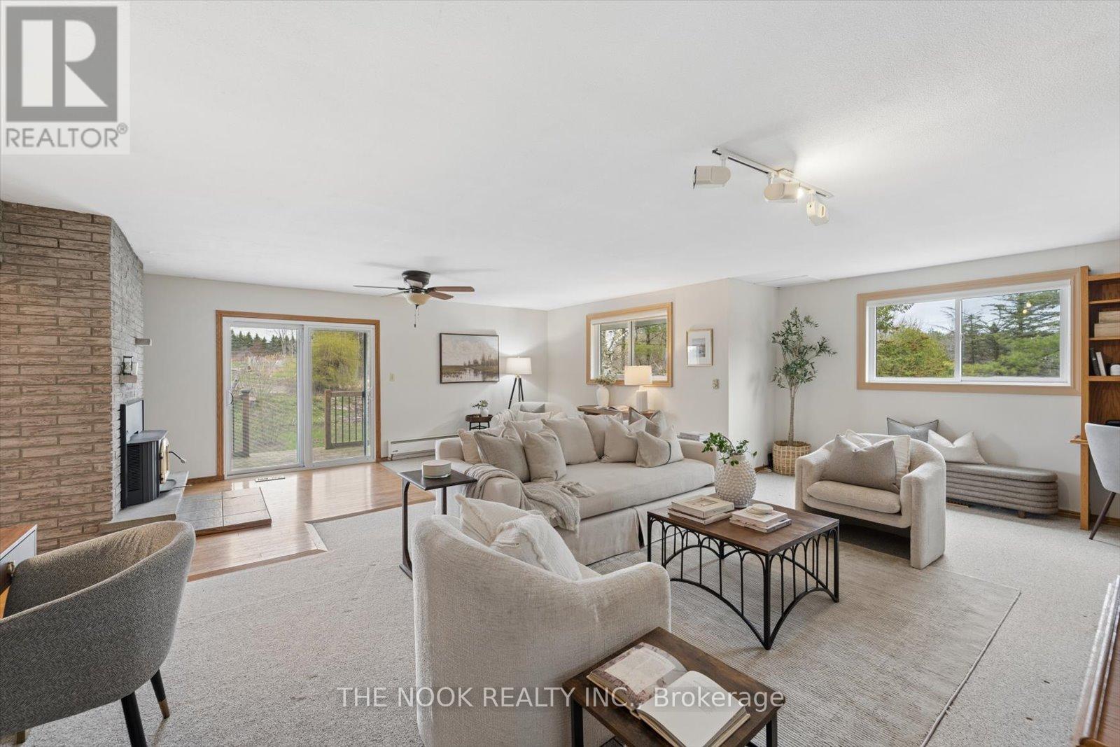 Incredible opportunity for peaceful country living with the convenience of nearby city amenities on this 2.5-acre property! Offering privacy, space, and versatility, this unique home delivers a true "country in the city" lifestyle, just minutes from schools, shopping, and everyday essentials. The main floor features multiple walk-outs, heated kitchen/entry/bathroom floors, 2 wood burning fireplaces, and access to a 3-season pool area where you can stave off the summer sun. In the winter, there is lots of room to entertain or relax with the family in the oversized family room. When it's time to rest, an expanded primary bedroom features a sitting area and His 'n Hers closets . The large driveway easily accommodates multiple cars and recreational vehicles. The multi-use outbuilding has power and supplementary heat, ideal for hobbyists, storage, workspace, or hobby farm use. If you've been searching for space, privacy, and rural charm without sacrificing proximity to amenities, this uncommon property offers the best of both worlds. Furnace 2023. Click the VIRTUAL TOUR link for a video. (id:43681)