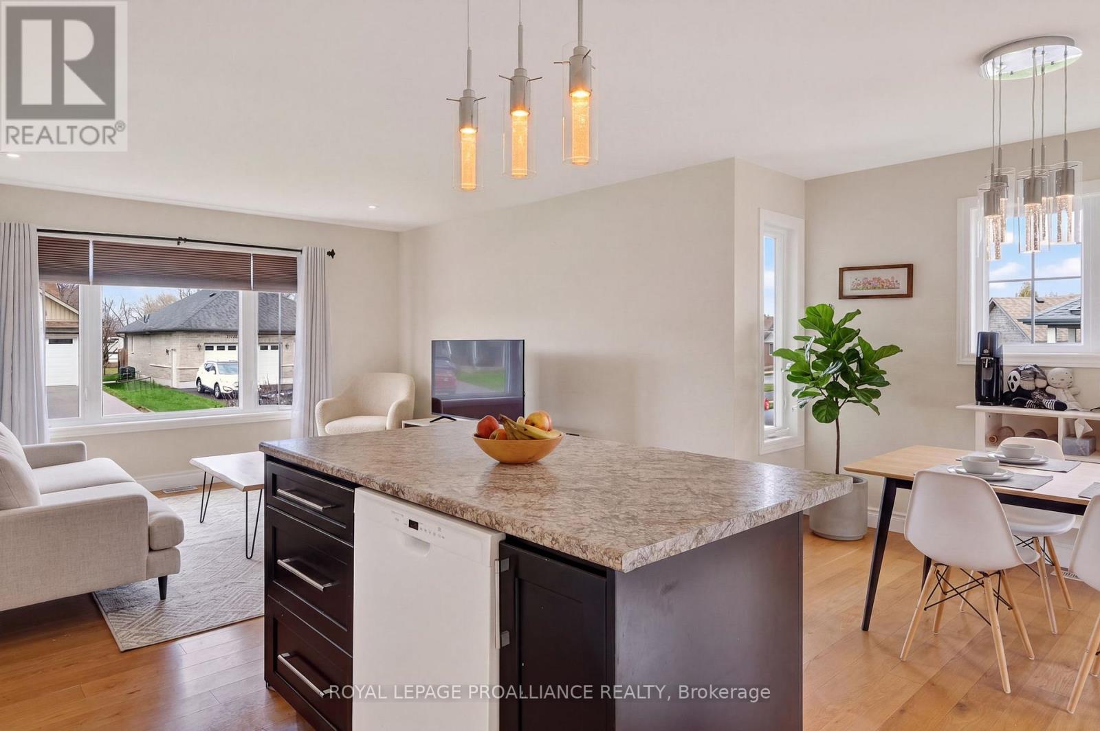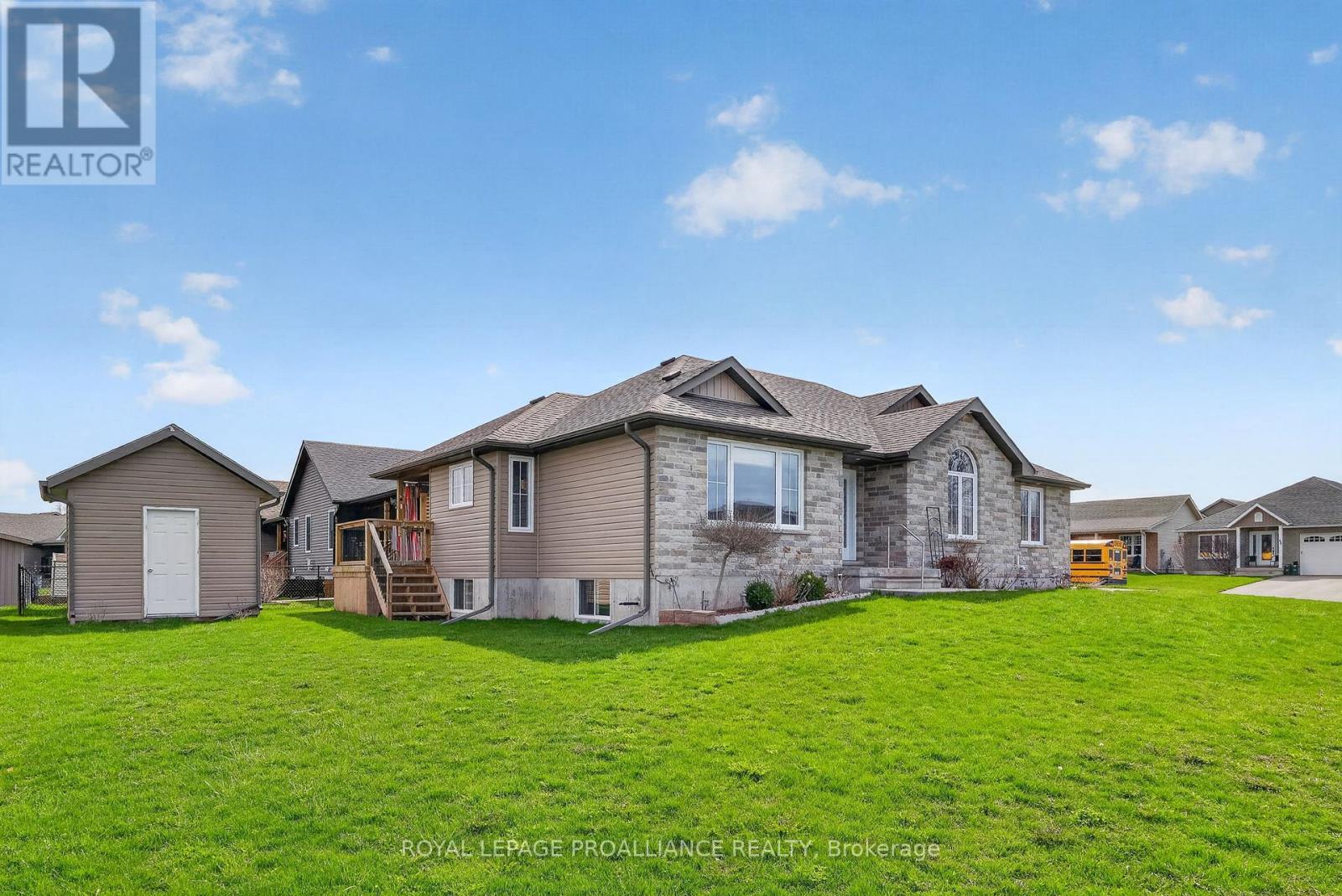 Discover this charming brick bungalow in the sought-after Colborne Creek subdivision, set on a spacious corner lot along quiet, wide streets with no sidewalks-perfect for enjoying a relaxed, small-town atmosphere. Conveniently located just a short drive from Highway 401; the Wicklow Beach Waterfront area on the shores of Lake Ontario; and to the public beach at Little Lake; this home also offers easy walking access to Colborne Village shops and all downtown amenities. Inside, you'll find 3 bedrooms and 2 bathrooms, including a well-appointed primary suite with a walk-through closet and private ensuite. The bright, open-concept living space is filled with natural light, featuring hardwood floors and a seamless walkout to a private outdoor area-ideal for entertaining or unwinding. A double-car garage and four-car driveway provide parking for up to six vehicles. With neutral finishes throughout and an unfinished basement ready for your vision, this home offers both comfort and potential. Experience the perfect blend of peaceful living and everyday convenience. (id:43681)