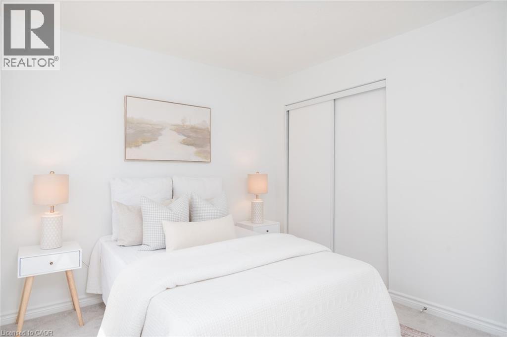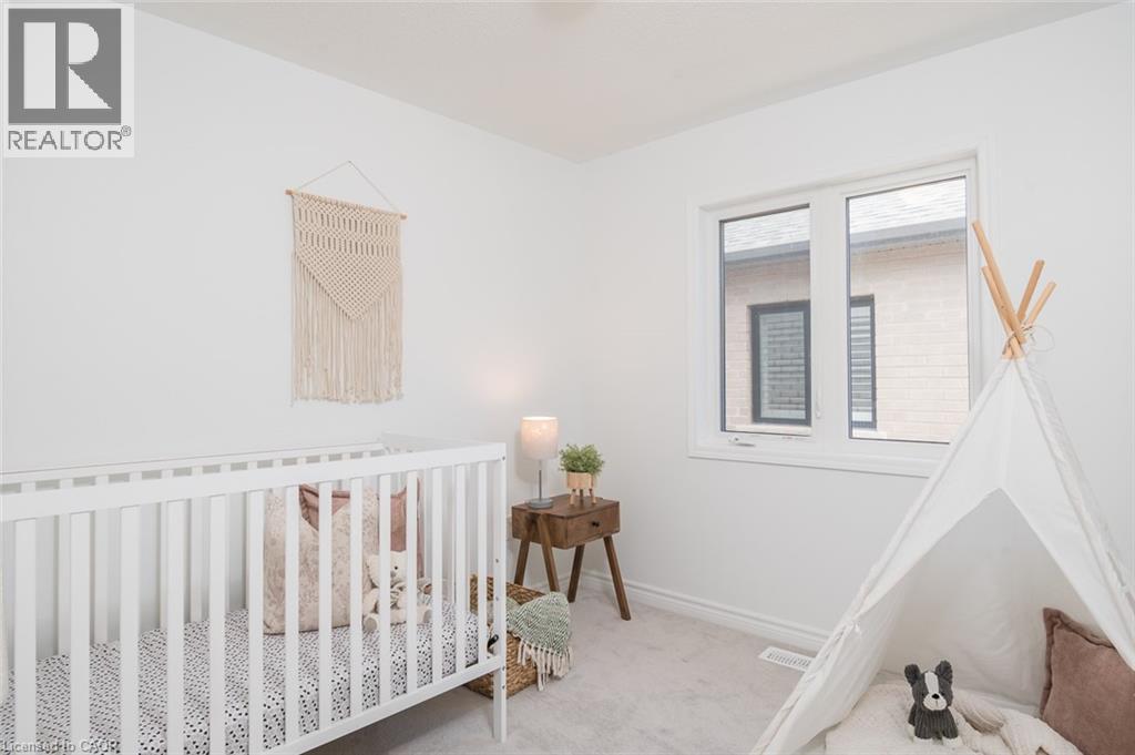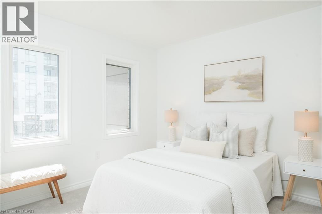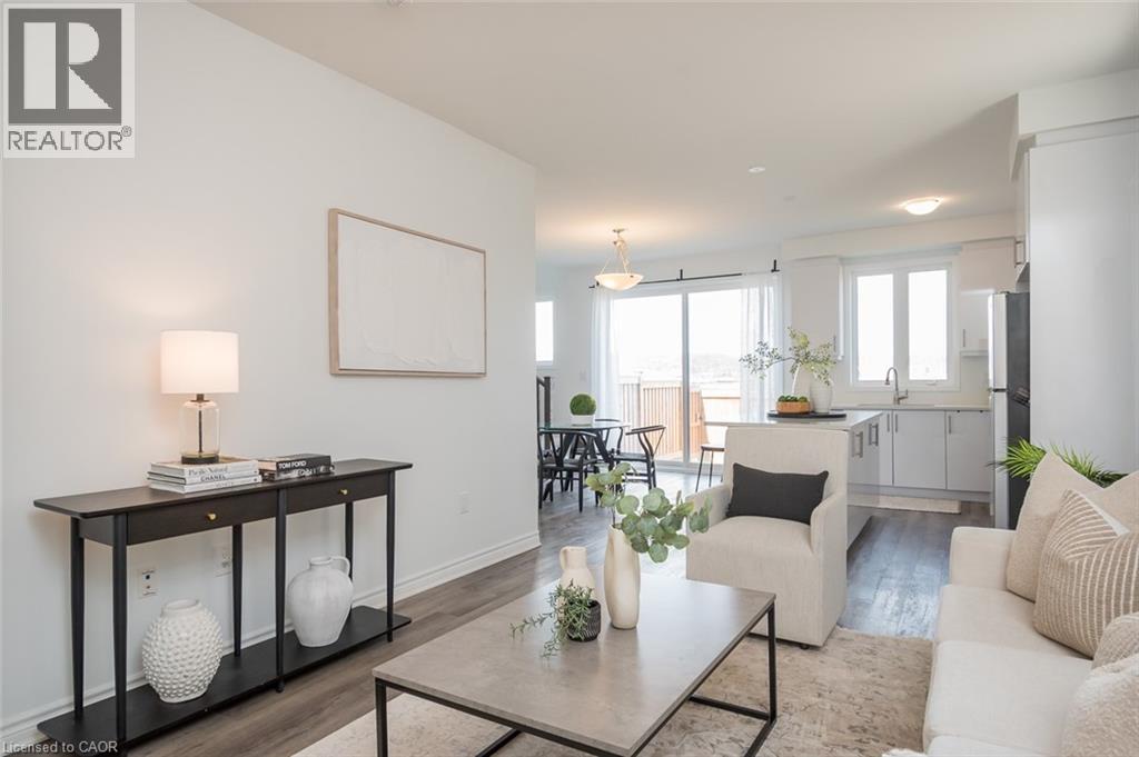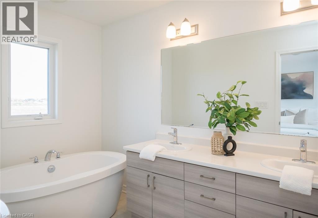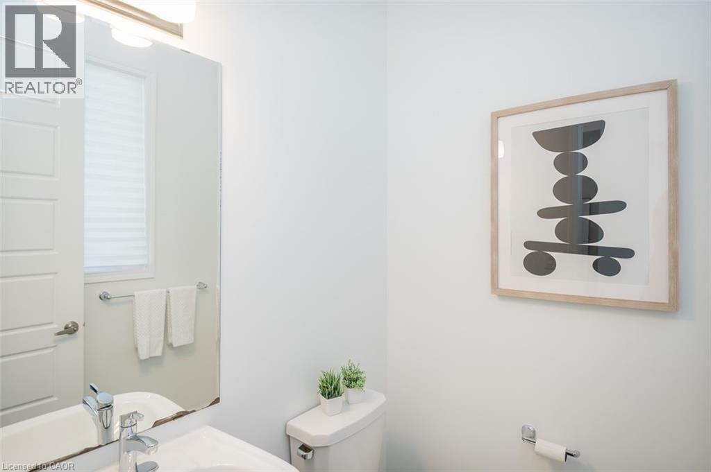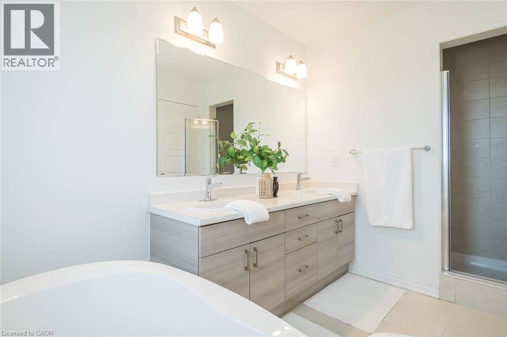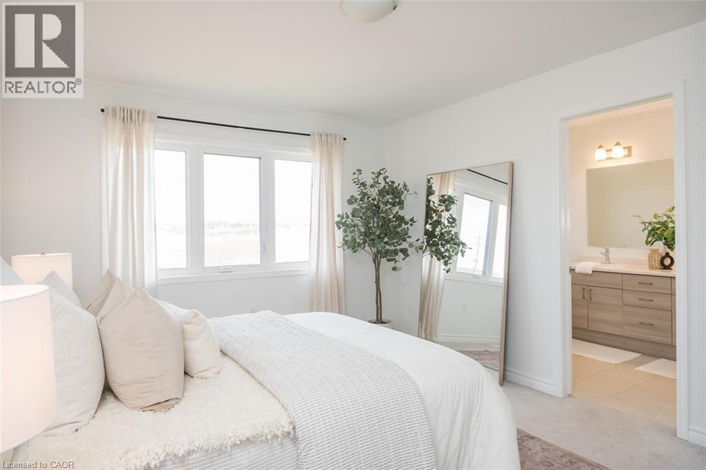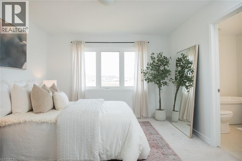 Spacious 4 bedroom end-unit townhome with a thoughtful layout, 9 ft ceilings, and escarpment views. The main floor features a bright kitchen with white cabinetry, quartz countertops, stainless steel appliances, and a centre island with breakfast bar seating. Double sliding doors lead to a fully fenced backyard, making indoor-outdoor living easy, while main floor laundry and interior garage access add convenience. Upstairs, the two-storey staircase with wood spindles opens to four bedrooms and a 4-piece main bathroom. The primary suite offers a walk-in closet, double sink vanity, enclosed shower, and freestanding soaker tub. Three additional bedrooms and a large linen closet complete the level. The all-brick exterior and black-framed windows provide strong curb appeal in Milton’s sought-after Walker neighbourhood. All major mechanicals are under five years old making this a move-in ready home! (id:43681)