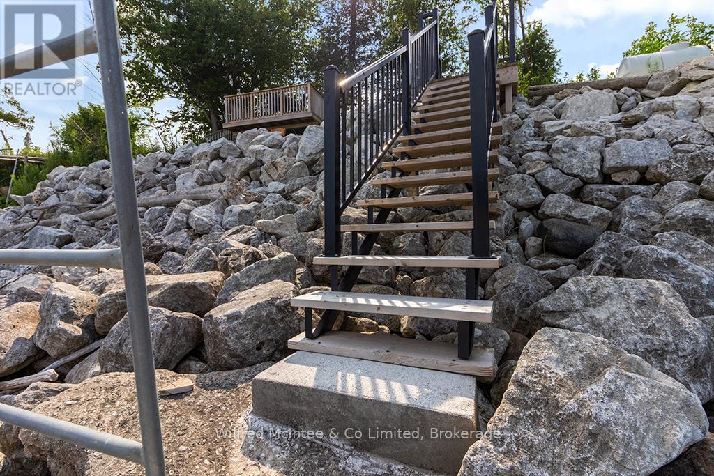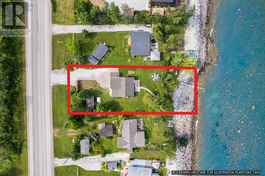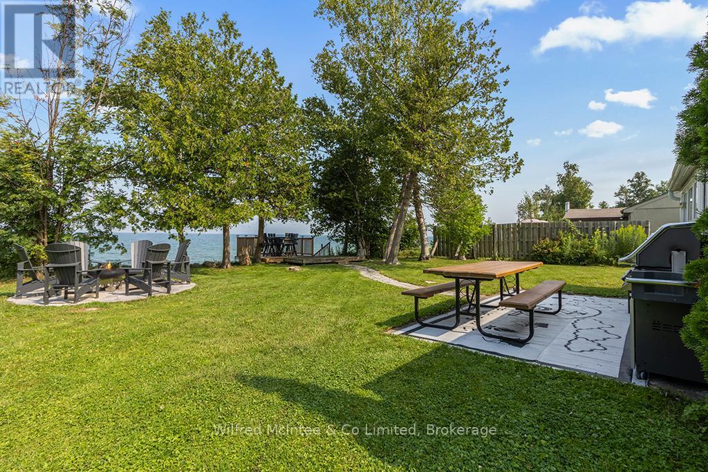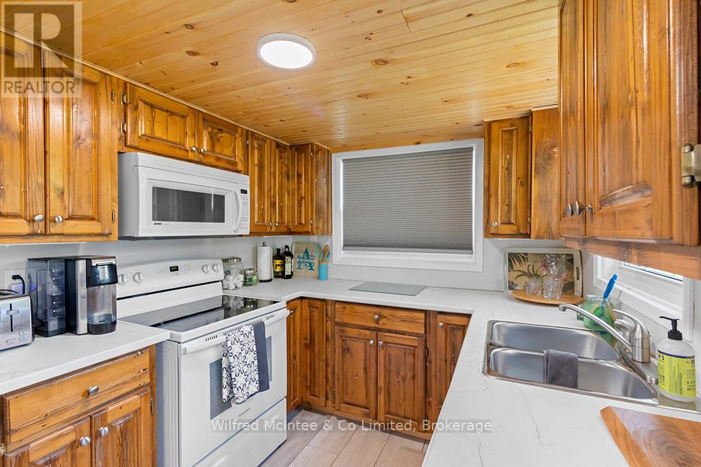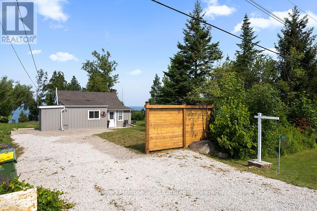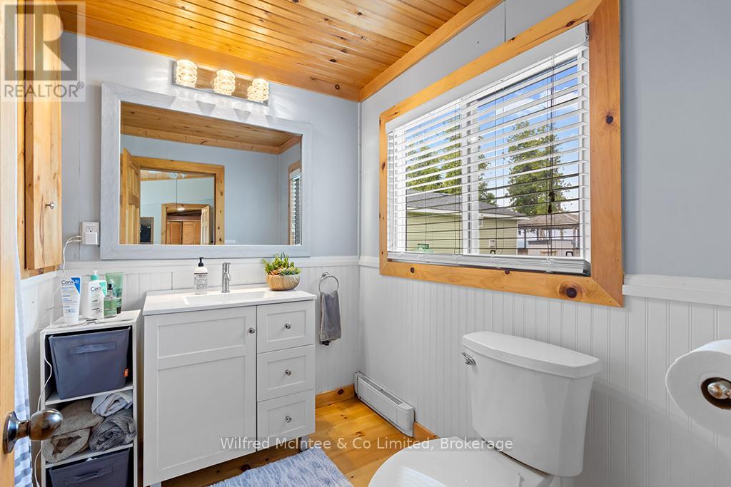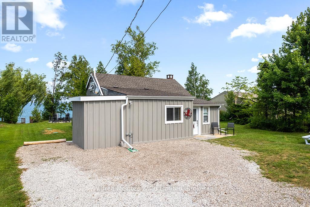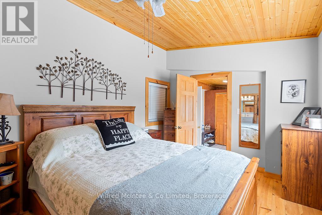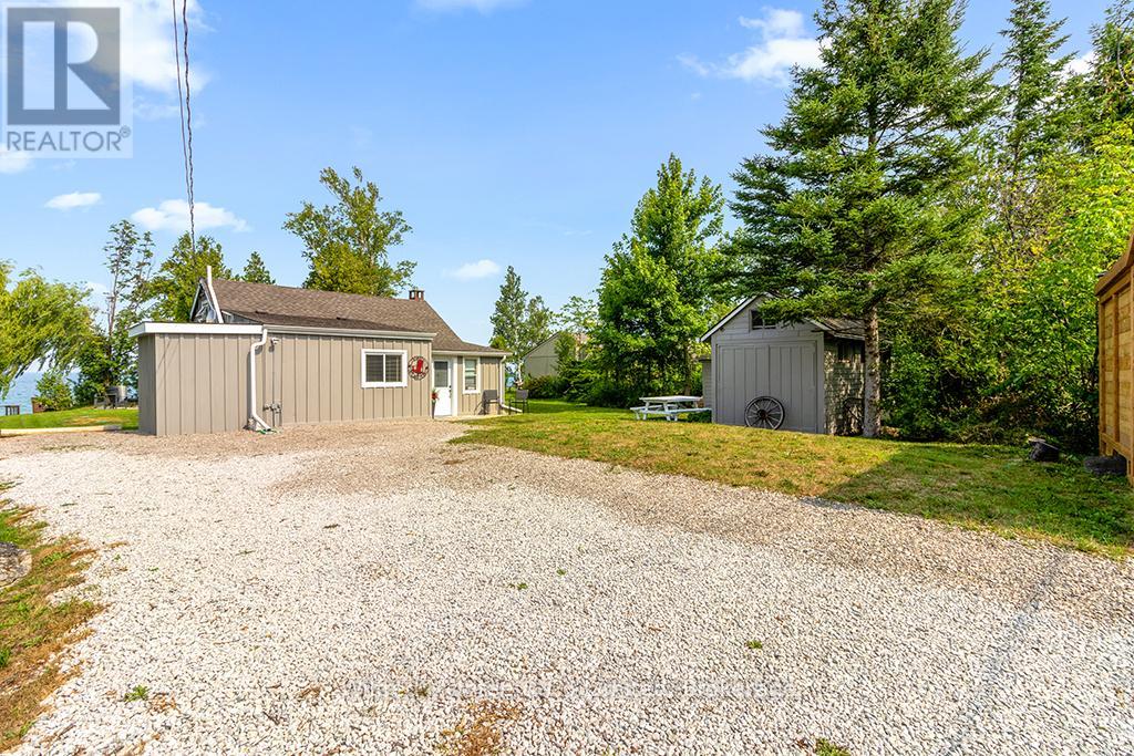 Check out this awesome waterfront leased land cottage featuring elevated panoramic lake views, spectacular sunsets, and brimming with rustic cottage charm and modern updates. The exceptionally tidy cottage offers 3 bedrooms (one in the loft), 2 bathrooms, and an insulated fully reno'd bunk for guests that could also be converted to a great yoga/gym space or office for those who must work at the cottage. From the moment you step inside the cottage you are greeted with beautiful blue hues from Lake Huron casting their glow through the windows. There is small foyer/mudroom and to the left is your private primary bedroom with 4pc en-suite bathroom. Take a couple steps forward and you are welcomed into the open concept living/dining area with vaulted ceiling that showcases the rustic cottage framing and opens to the loft bedroom above. Completing the space is a 2nd bedroom, 3Pc bathroom, and U-shaped kitchen with plenty of cabinetry, new counter tops, and stunning water views from many viewpoints. The cottage is as sturdy as they come with most of the cottage built on concrete slab with block walls and has many noteworthy features, including; updated septic system, solid stairs down to the water, newer roof shingles, fresh exterior paint, lake side deck and flagstone patio, plenty of parking, 100amp breaker panel, baseboard electric heaters and electric fireplace, plus a window a/c unit, highspeed internet, and most furniture & appliances are included creating a turnkey opportunity. This well cared for, and tidy cottage is in excellent shape and a pleasure to view. (id:43681)