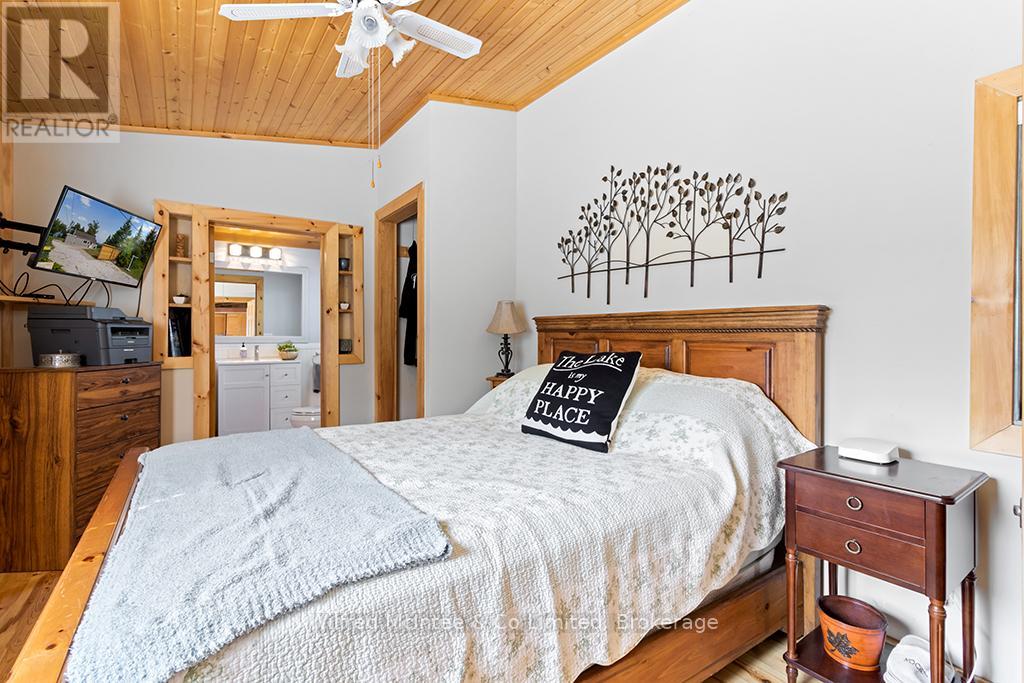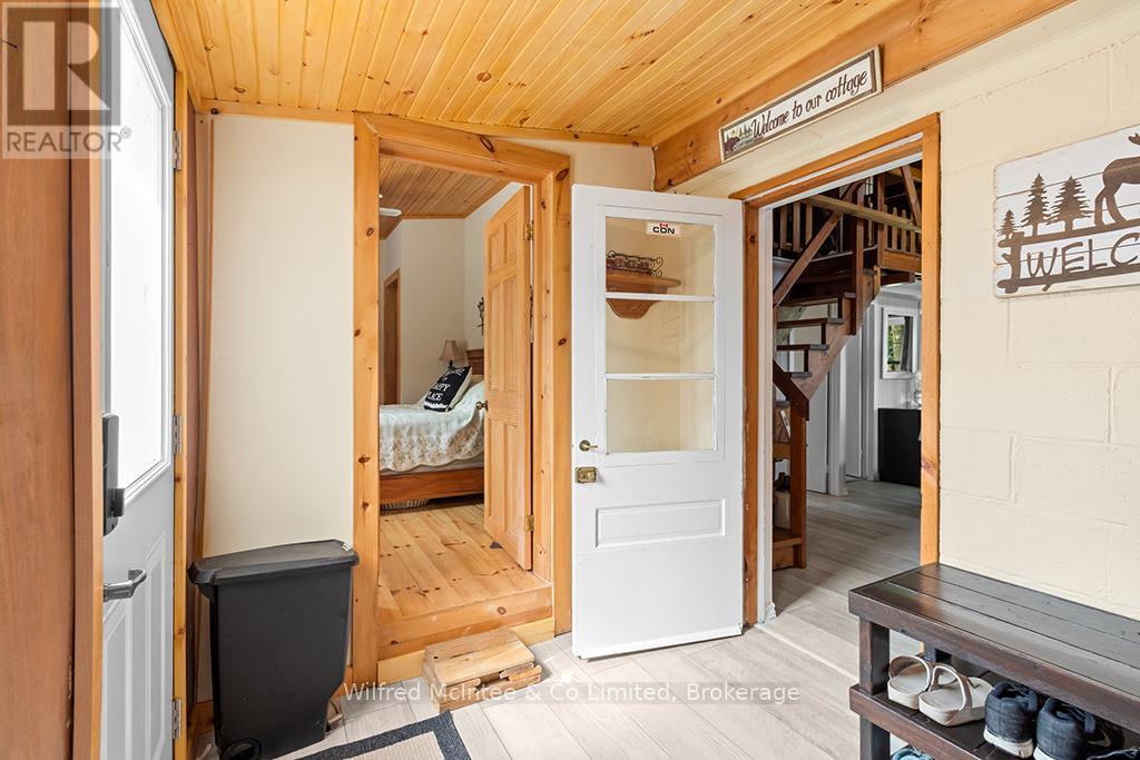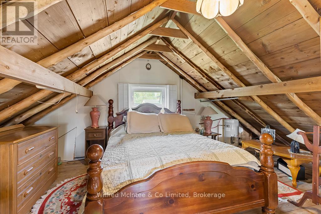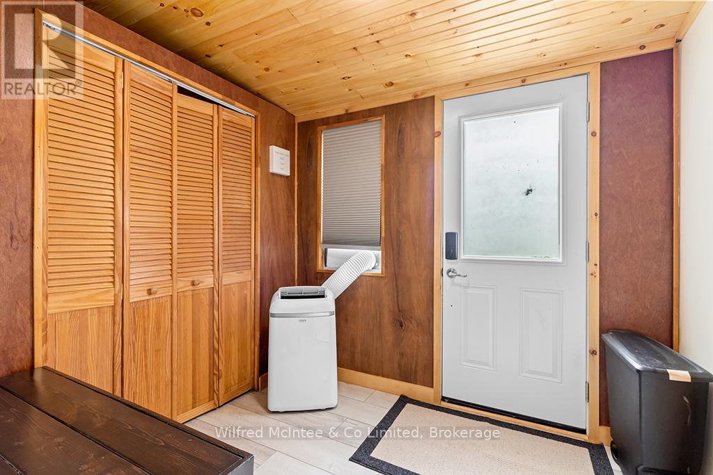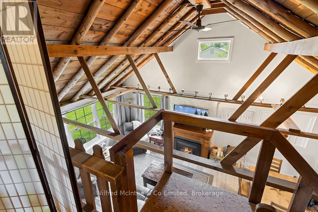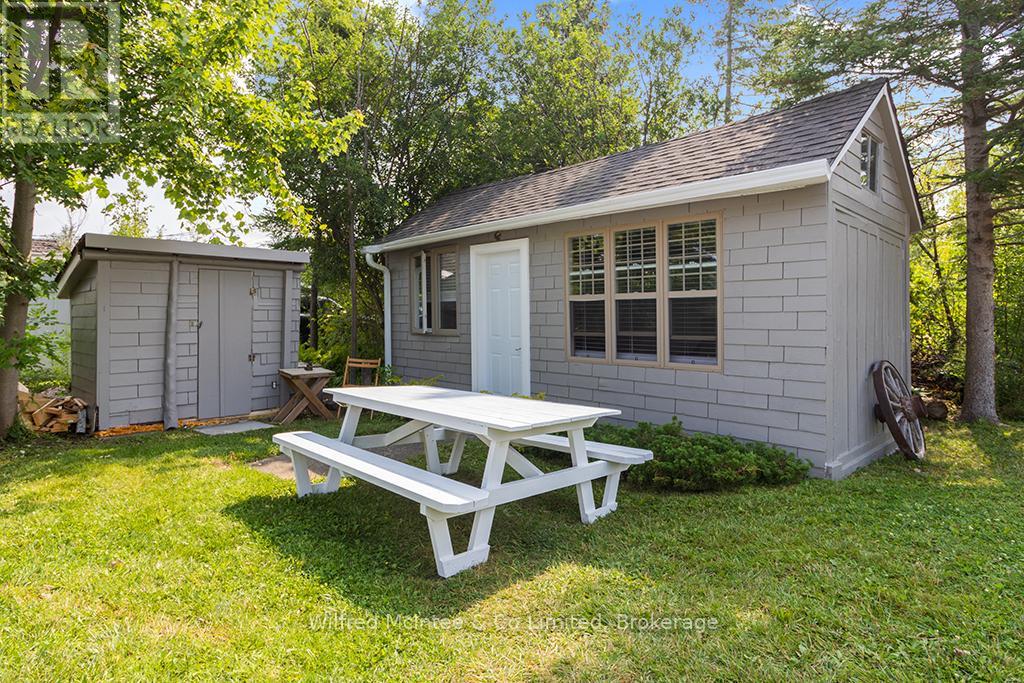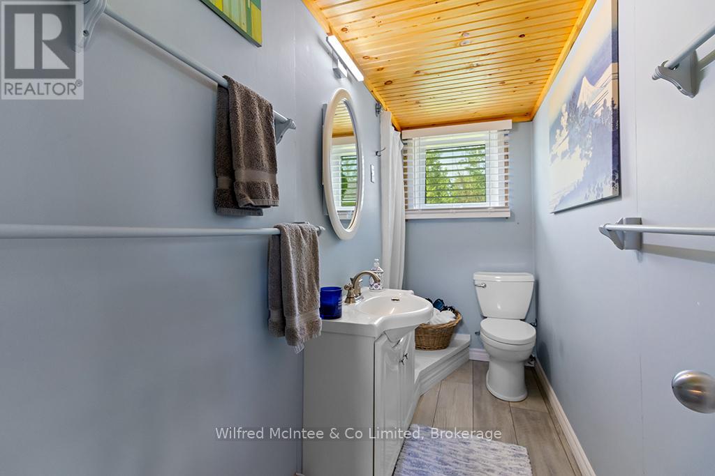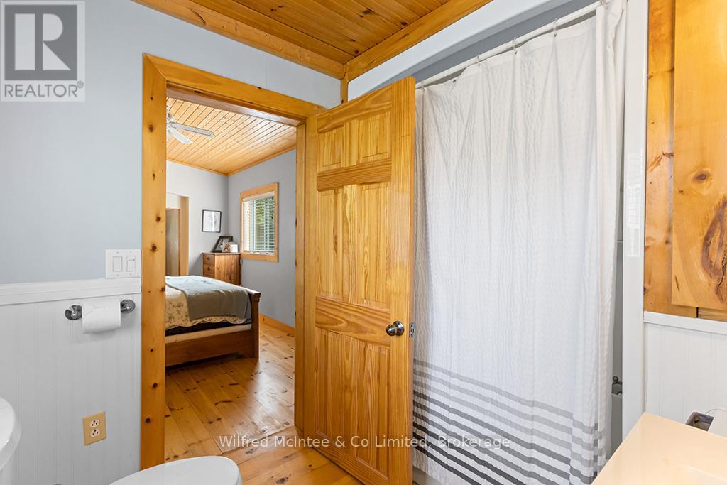 Check out this awesome waterfront leased land cottage featuring elevated panoramic lake views, spectacular sunsets, and brimming with rustic cottage charm and modern updates. The exceptionally tidy cottage offers 3 bedrooms (one in the loft), 2 bathrooms, and an insulated fully reno'd bunk for guests that could also be converted to a great yoga/gym space or office for those who must work at the cottage. From the moment you step inside the cottage you are greeted with beautiful blue hues from Lake Huron casting their glow through the windows. There is small foyer/mudroom and to the left is your private primary bedroom with 4pc en-suite bathroom. Take a couple steps forward and you are welcomed into the open concept living/dining area with vaulted ceiling that showcases the rustic cottage framing and opens to the loft bedroom above. Completing the space is a 2nd bedroom, 3Pc bathroom, and U-shaped kitchen with plenty of cabinetry, new counter tops, and stunning water views from many viewpoints. The cottage is as sturdy as they come with most of the cottage built on concrete slab with block walls and has many noteworthy features, including; updated septic system, solid stairs down to the water, newer roof shingles, fresh exterior paint, lake side deck and flagstone patio, plenty of parking, 100amp breaker panel, baseboard electric heaters and electric fireplace, plus a window a/c unit, highspeed internet, and most furniture & appliances are included creating a turnkey opportunity. This well cared for, and tidy cottage is in excellent shape and a pleasure to view. (id:43681)
