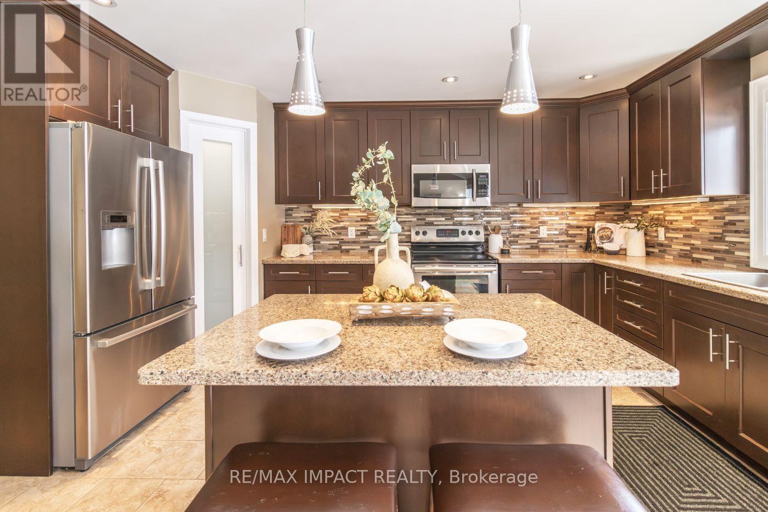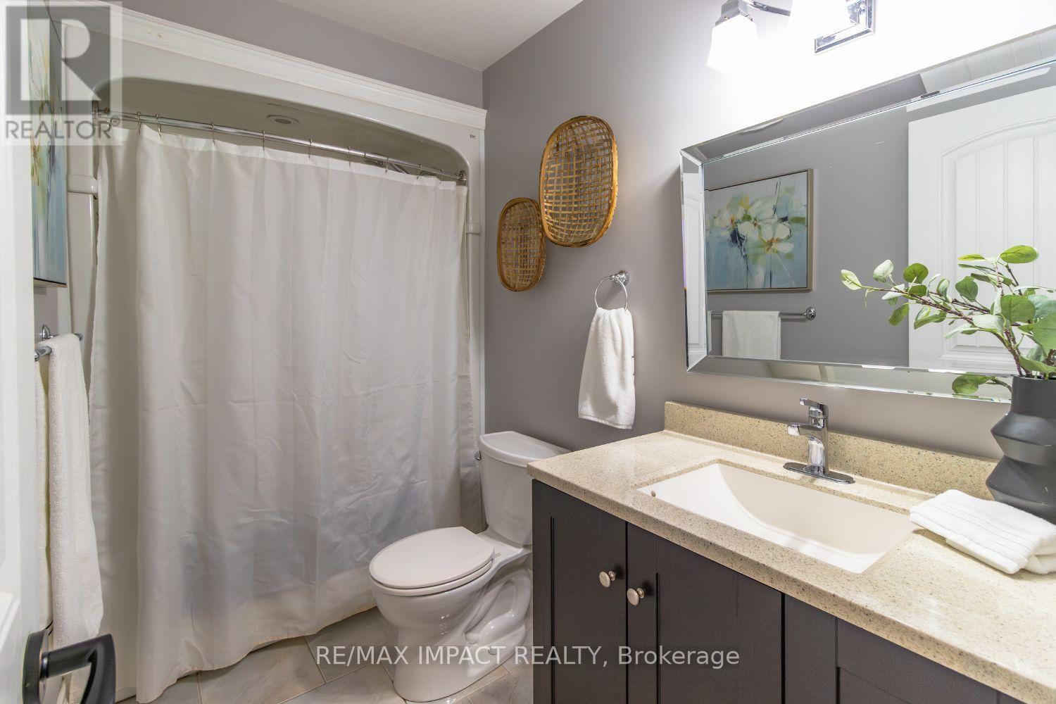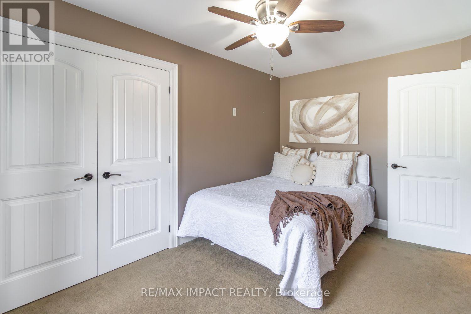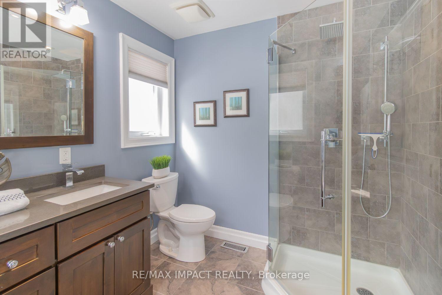 Welcome to this stunning country property, a true gem built in 2011, nestled on a spacious 1.23 acre lot measuring 195' x 275'. This beautiful 2110 sf (per blueprint) bungalow boasts a charming stone and vinyl exterior, complemented by an attached heated four-car garage (1-double overhead door and 2 single overhead doors) and lots of parking for 10+ vehicles. Conveniently, the main floor offers direct access to the garage, while a secondary entrance leads to the basement from the garage, enhancing the home's functionality. At the heart of this property is a picturesque spring-fed pond located in the rear yard, approximately 10' deep, perfect for those seeking tranquility and natural beauty. The back yard features a wooden deck off the kitchen within a chain-link enclosure, providing a safe children's play area with playhouse and swing. Inside, the main level showcases an open-concept design that seamlessly connects the kitchen, great room, and separate dining area. The kitchen features rich dark cabinetry with granite countertops, stainless steel appliances, ceramic backsplash and separate desk area. The ceramic tile flooring adds durability, while a corner pantry with shelving and a convenient two-piece powder room enhance practicality. The kitchen also opens up to a deck that overlooks the pond and is surrounded by mature trees, creating a country outdoor retreat. The great room is highlighted by a large picture window, vaulted ceiling and pot lights with hardwood flooring. Double entry doors lead to the spacious primary bedroom, which includes a walk-in closet and a 5-piece ensuite complete with soaking tub, separate shower and 2 sink vanity. Two additional front bedrooms and a well-appointed 4-piece main bathroom complete the main floor. (id:43681)