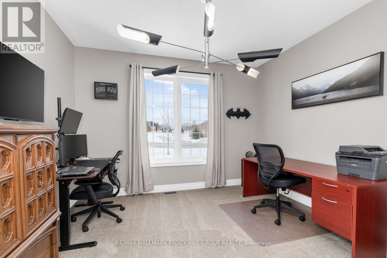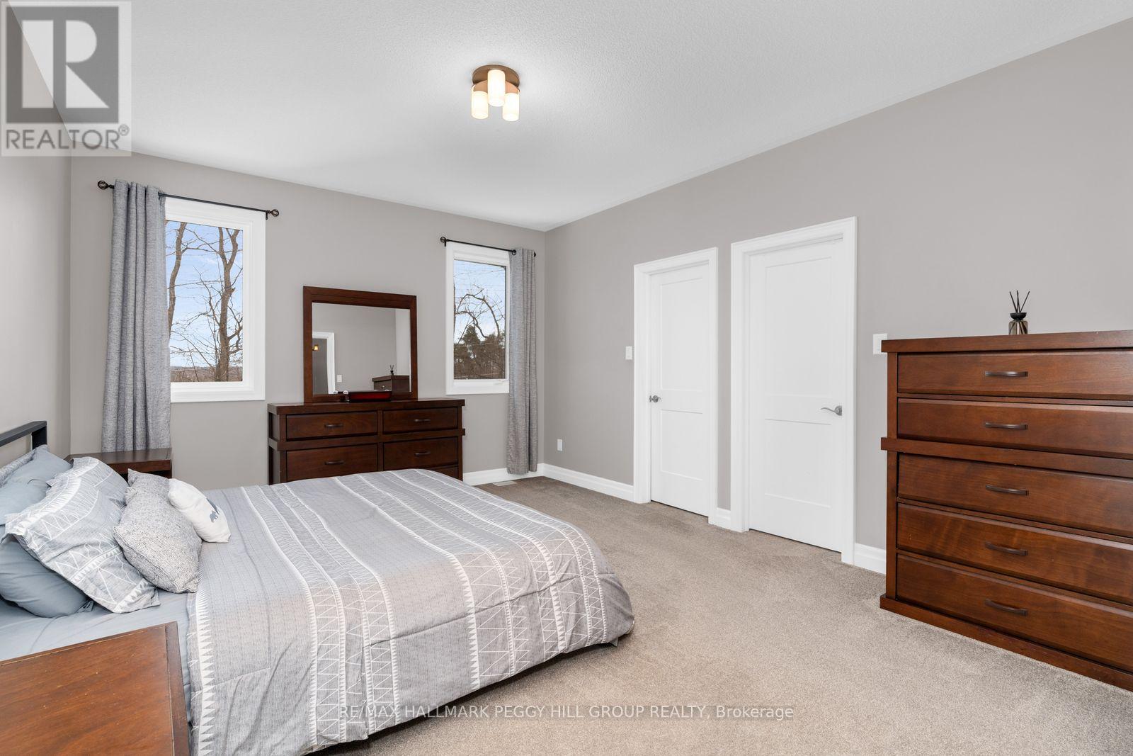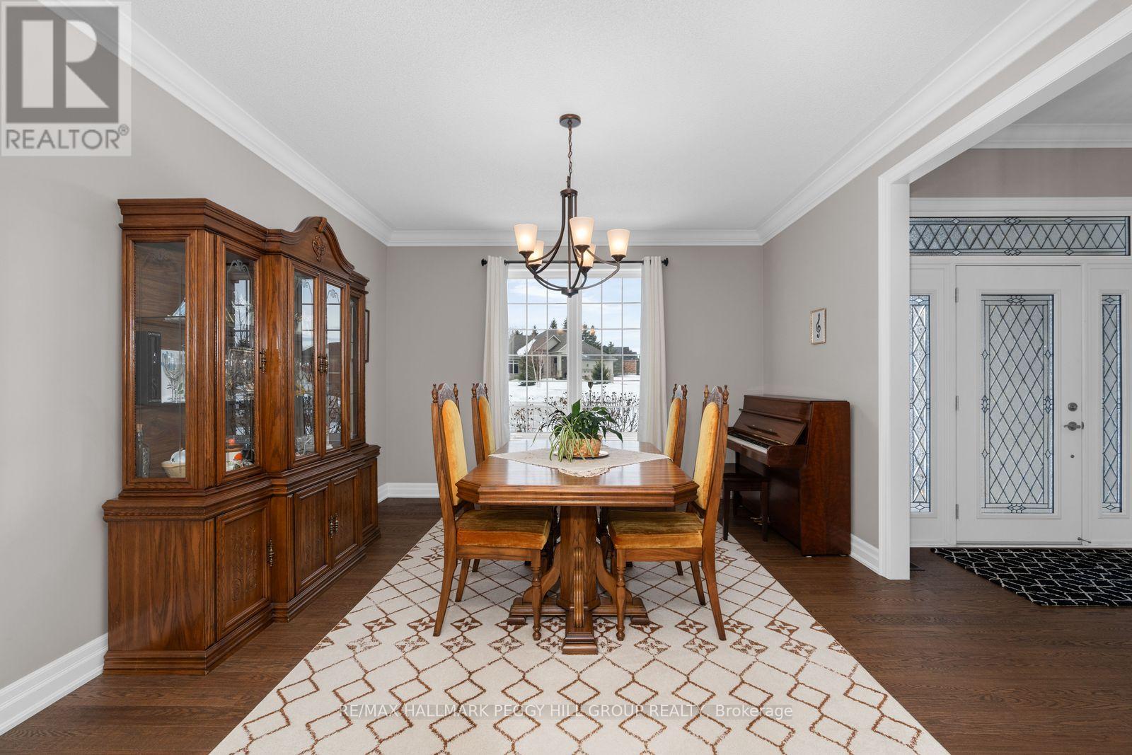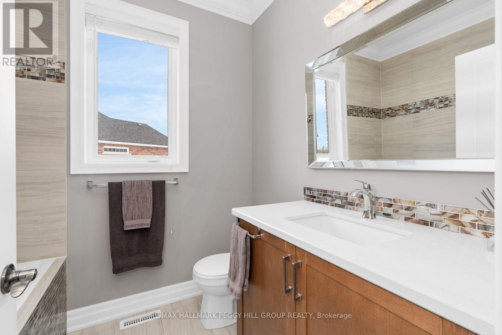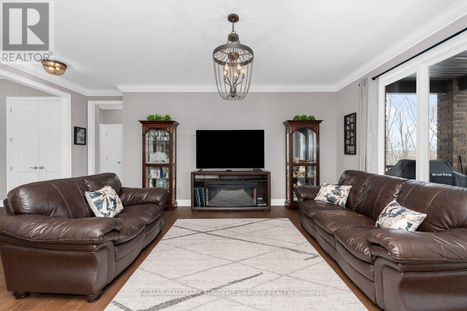 PRESTIGIOUS CARSON RIDGE ESTATES BUNGALOW WITH NEARLY 2,100 SQ FT ON OVER HALF AN ACRE! Tucked into one of Midhurst's most exclusive enclaves, this Carson Ridge Estates bungalow sits at the end of a cul-de-sac among executive homes, with a treed backdrop on an 84 x 191 ft lot offering over half an acre. A stone and brick exterior sets a confident first impression, with an attached 3-car garage with inside entry and a wide driveway that accommodates up to 6 vehicles. Nearly 2,100 sq ft above grade features 9-ft ceilings, crown moulding, engineered hardwood flooring, main floor laundry, and an open-concept layout that keeps the kitchen, living, and dining spaces connected. The kitchen feels distinctly upscale with white cabinetry topped with crown moulding, full-height pantry storage, granite counters, a glossy white elongated hexagon tile backsplash, stainless steel appliances including a gas stove, stylish pendant lighting, and a contrasting wood-tone island with seating. The breakfast area walks out to the composite raised deck, with a covered patio below creating a shaded space for outdoor living. Three generous bedrooms include a primary retreat with two walk-in closets and a 5-piece ensuite featuring a dual sink vanity, freestanding tub, and separate shower. Downstairs, an unfinished walkout basement offers nearly 2,100 sq ft of additional space and excellent in-law potential, ready to be finished to suit your needs with direct backyard access. Located in the highly sought-after Forest Hill Public School catchment, the setting also offers quick access to Barrie and major highways, plus shopping, recreation, golf, and skiing, with trails and conservation lands nearby for the outdoor lifestyle Springwater is known for. (id:43681)