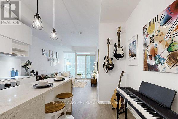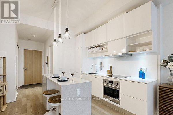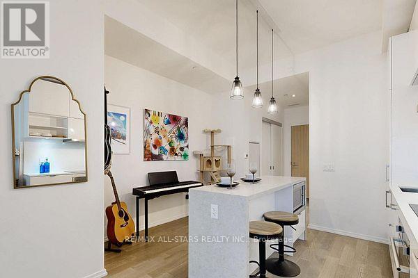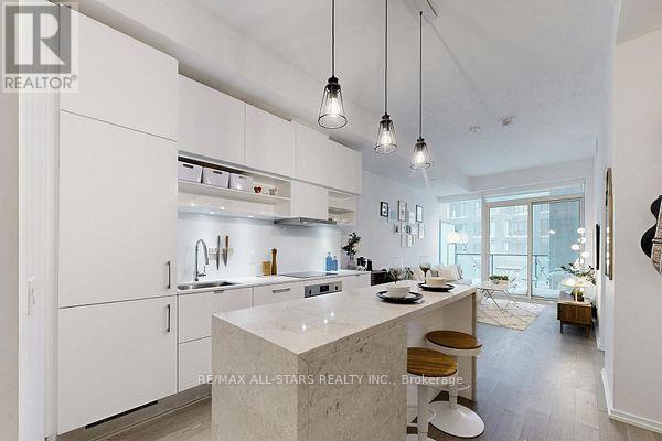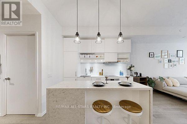Welcome to this beautiful 1-bedroom + den condo in one of Toronto's most sought-after neighbourhoods! Located in an unbeatable spot, you're right above a fantastic mix of shops including Farm Boy, West Elm, Staples, and great restaurants, with the subway station just across the street for ultimate convenience.The unit offers a highly functional layout with plenty of storage and is filled with natural light thanks to floor-to-ceiling windows that create a bright, open feel throughout. The sleek, modern kitchen features a centre island with a stunning waterfall countertop and seating for four-perfect for casual dining or entertaining. Step out onto the spacious balcony, with a great view! With everything you need just steps away and all amenities within walking distance, this is truly urban living at its best. Added bonus: a large public underground parking lot is conveniently located right below, making parking easy for you and your guests. A fantastic opportunity to own in one of Toronto's best locations! (id:43681)