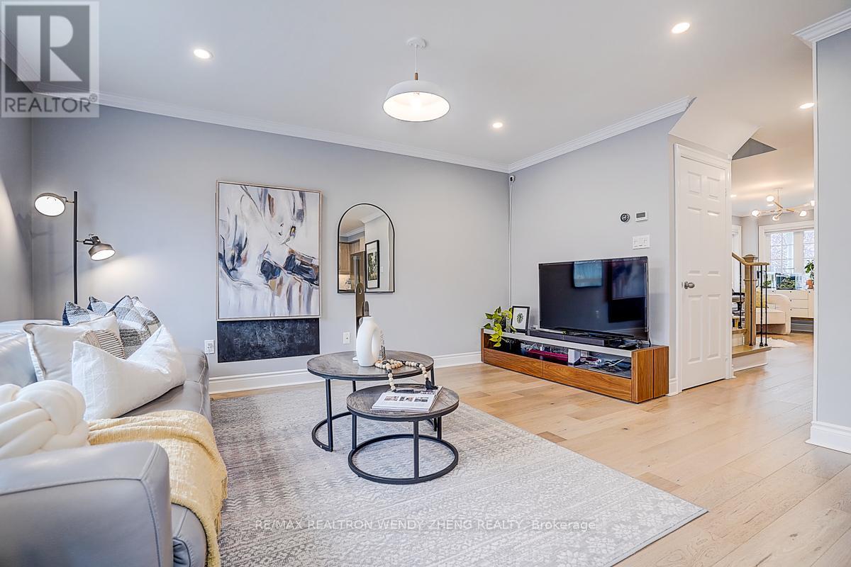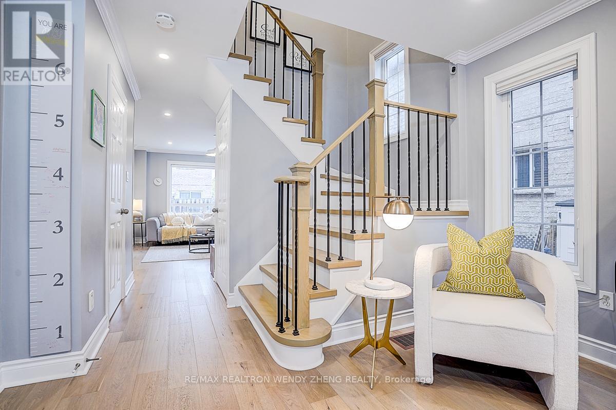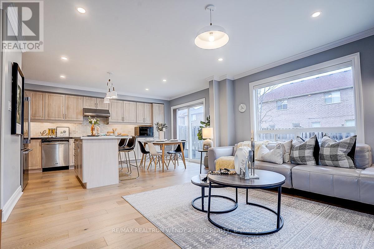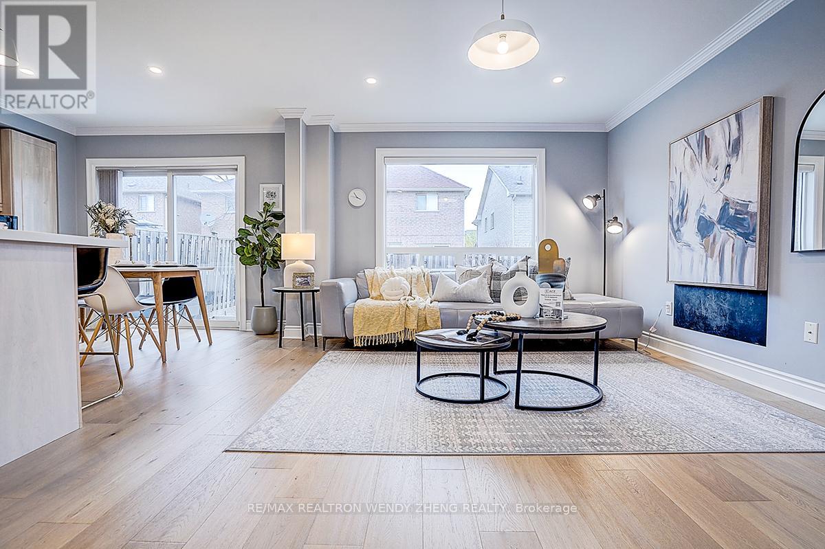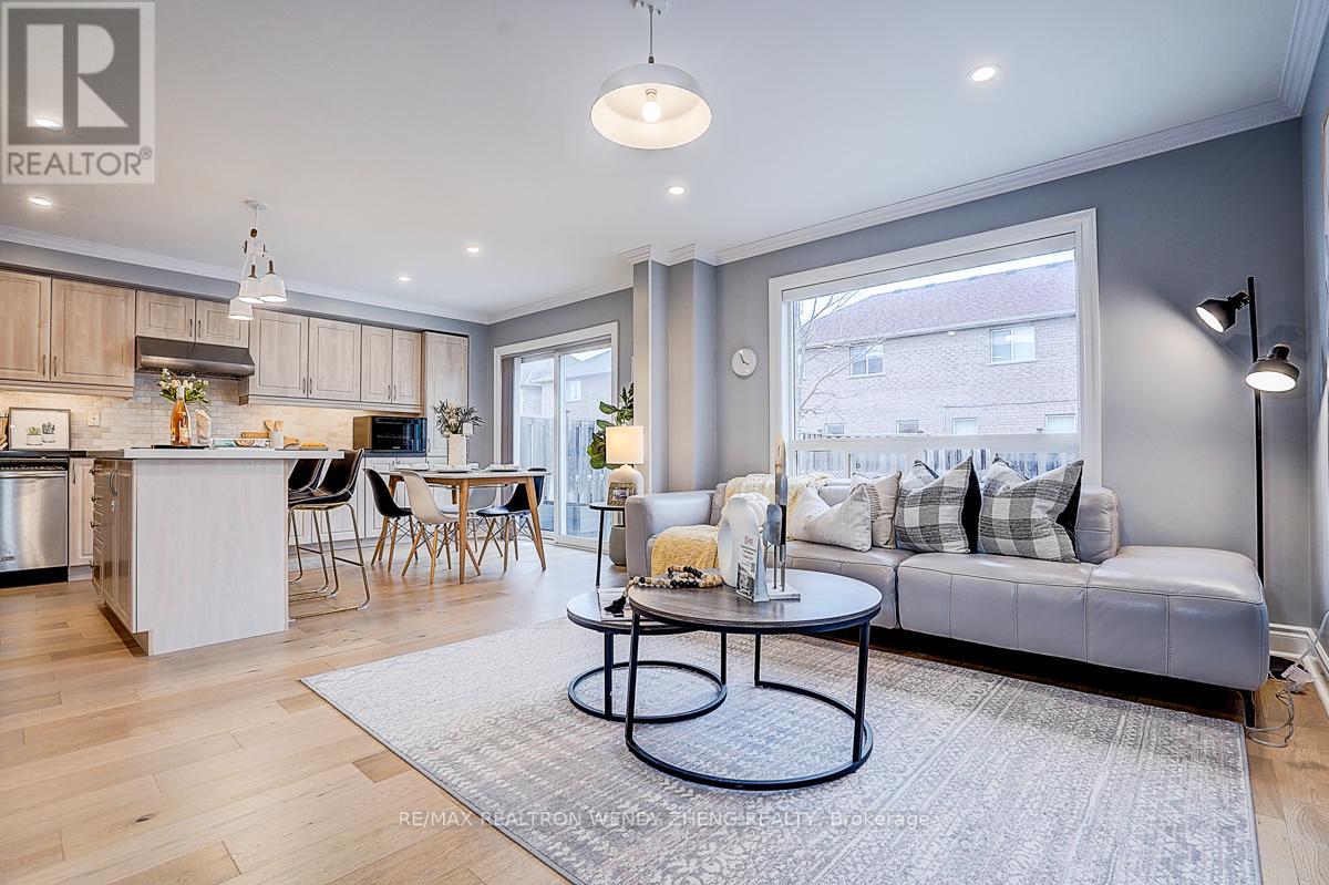 This must-see, beautifully upgraded semi-detached home offers 3 spacious bedrooms and a functional layout that blends comfort with modern style. Featuring new wide-plank hardwood flooring throughout, smooth ceilings, pot lights, and contemporary light fixtures. An elegant staircase with light wood steps, white trim, and iron pickets adds a refined touch. The modern gourmet kitchen showcases quartz countertops, a centre island/breakfast bar, and quality stainless steel appliances. The generously sized primary bedroom includes a walk-in closet and an upgraded 5-piece ensuite. The finished basement (2023) features 1 bedroom, 1 full bathroom, and a large recreational area-ideal for extended family or additional living space. Fully interlocked backyard, offering low-maintenance outdoor living. Recent upgrades provide peace of mind: major renovations completed between 2022-2024, furnace (2023), A/C (2024). Equipped with an EV charger for added convenience. Situated in a desirable neighborhood within a top-ranking school district (Markville SS), and conveniently close to GO Transit, shopping, parks, restaurants, YMCA, and Hwy 407. (id:43681)