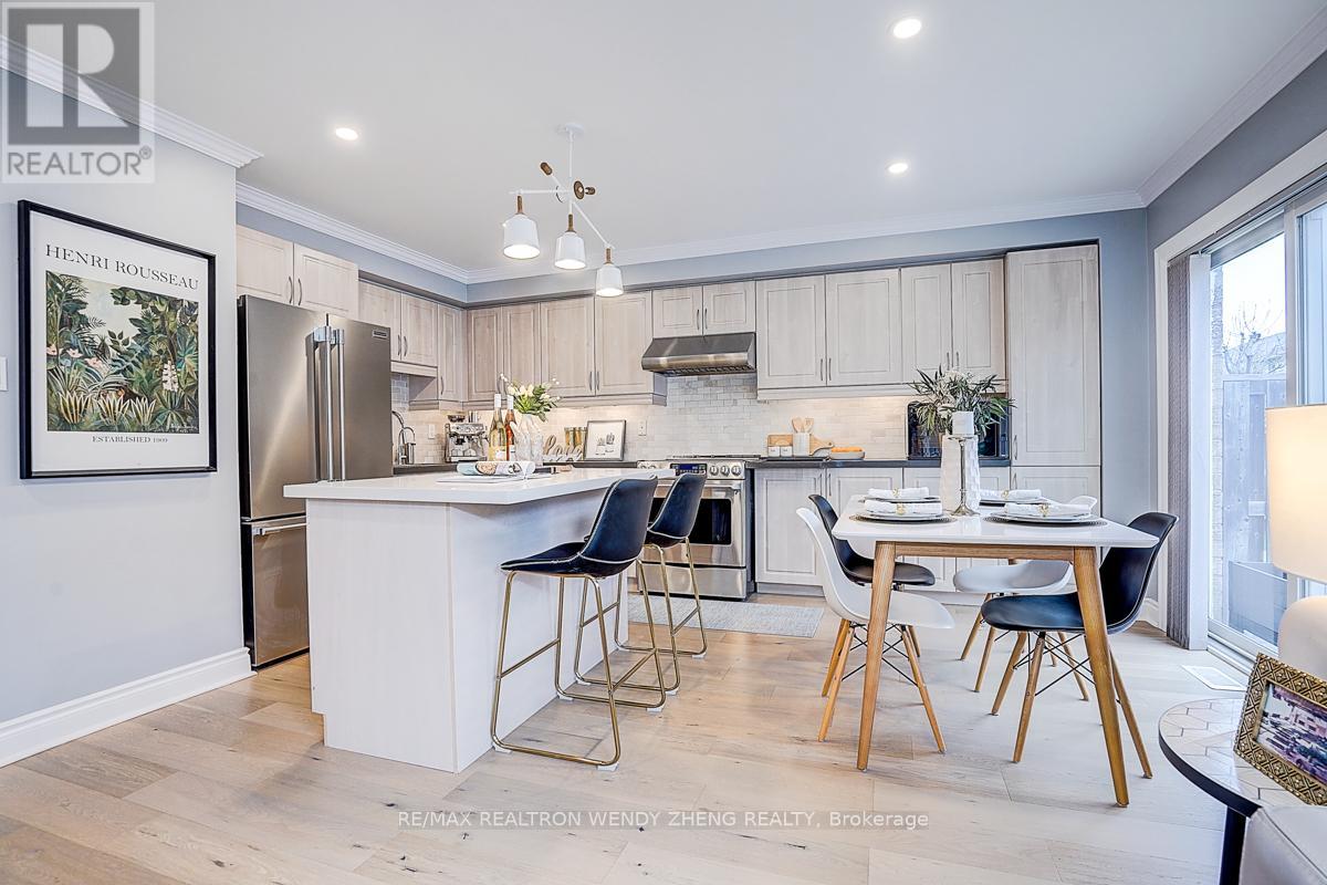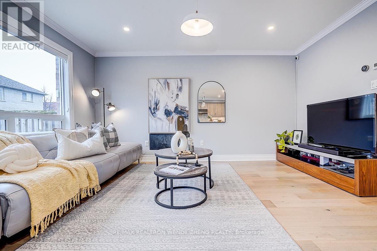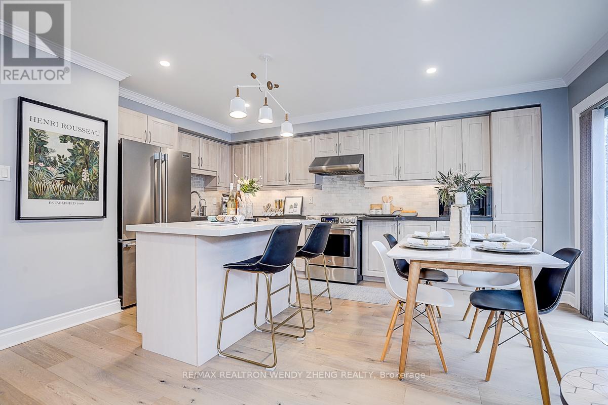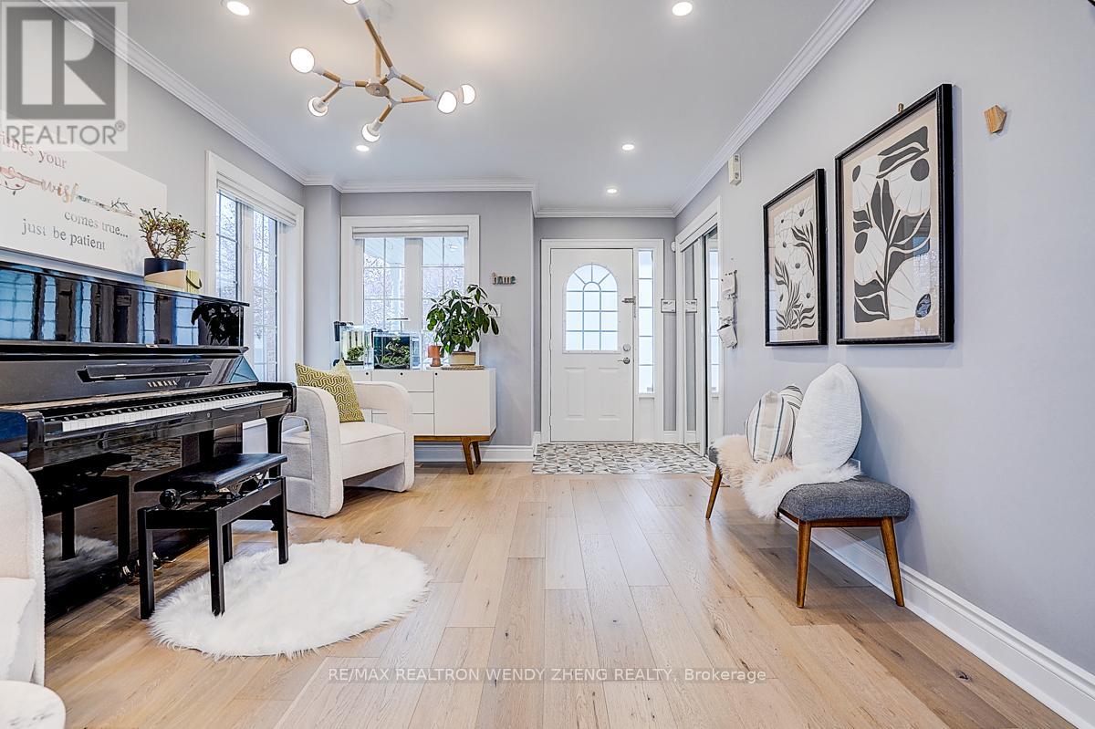 This must-see, beautifully upgraded semi-detached home offers 3 spacious bedrooms and a functional layout that blends comfort with modern style. Featuring new wide-plank hardwood flooring throughout, smooth ceilings, pot lights, and contemporary light fixtures. An elegant staircase with light wood steps, white trim, and iron pickets adds a refined touch. The modern gourmet kitchen showcases quartz countertops, a centre island/breakfast bar, and quality stainless steel appliances. The generously sized primary bedroom includes a walk-in closet and an upgraded 5-piece ensuite. The finished basement (2023) features 1 bedroom, 1 full bathroom, and a large recreational area-ideal for extended family or additional living space. Fully interlocked backyard, offering low-maintenance outdoor living. Recent upgrades provide peace of mind: major renovations completed between 2022-2024, furnace (2023), A/C (2024). Equipped with an EV charger for added convenience. Situated in a desirable neighborhood within a top-ranking school district (Markville SS), and conveniently close to GO Transit, shopping, parks, restaurants, YMCA, and Hwy 407. (id:43681)