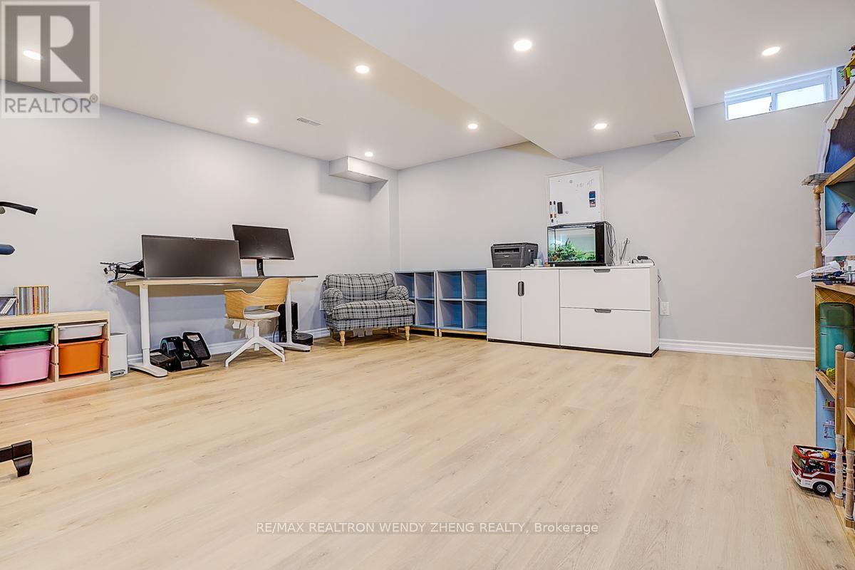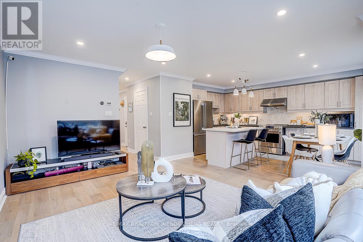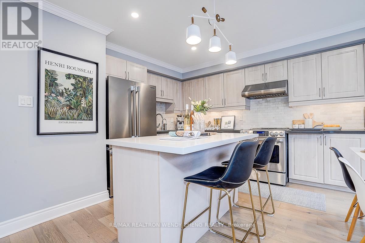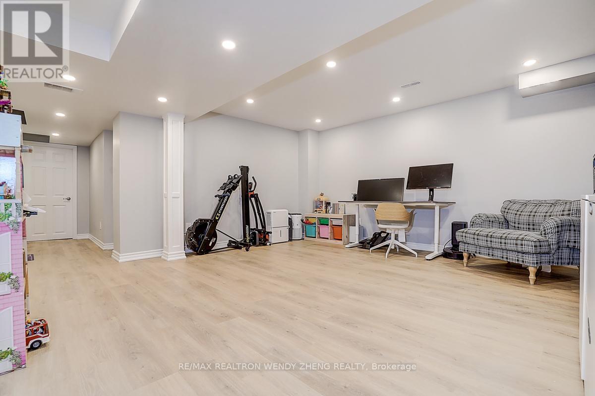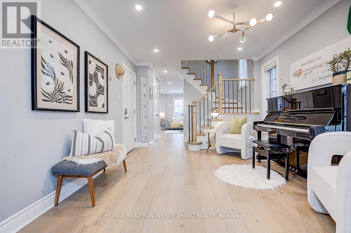 This must-see, beautifully upgraded semi-detached home offers 3 spacious bedrooms and a functional layout that blends comfort with modern style. Featuring new wide-plank hardwood flooring throughout, smooth ceilings, pot lights, and contemporary light fixtures. An elegant staircase with light wood steps, white trim, and iron pickets adds a refined touch. The modern gourmet kitchen showcases quartz countertops, a centre island/breakfast bar, and quality stainless steel appliances. The generously sized primary bedroom includes a walk-in closet and an upgraded 5-piece ensuite. The finished basement (2023) features 1 bedroom, 1 full bathroom, and a large recreational area-ideal for extended family or additional living space. Fully interlocked backyard, offering low-maintenance outdoor living. Recent upgrades provide peace of mind: major renovations completed between 2022-2024, furnace (2023), A/C (2024). Equipped with an EV charger for added convenience. Situated in a desirable neighborhood within a top-ranking school district (Markville SS), and conveniently close to GO Transit, shopping, parks, restaurants, YMCA, and Hwy 407. (id:43681)