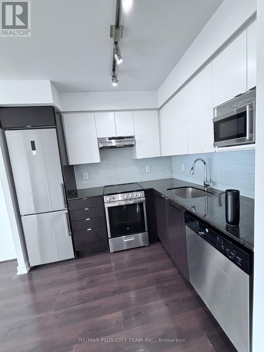 Beautiful 2-bedroom, 2-bathroom suite offering a bright and open-concept layout with large windows that fill the space with natural light. The spacious living and dining area flows seamlessly into a modern kitchen featuring stone countertops, stainless steel appliances, and ample cabinetry for everyday convenience. Enjoy laminate flooring throughout, an extra-large balcony, and well-proportioned bedrooms each with their own windows for added light and comfort. Residents have access to exceptional building amenities, including a fully equipped fitness centre, stylish party room, and a landscaped outdoor terrace perfect for relaxing or entertaining. Ideally located just steps from public transit, Yorkdale Mall, schools, grocery stores, restaurants, and with easy access to major highways, this suite offers modern living in a prime, central Toronto location. (id:43681)
