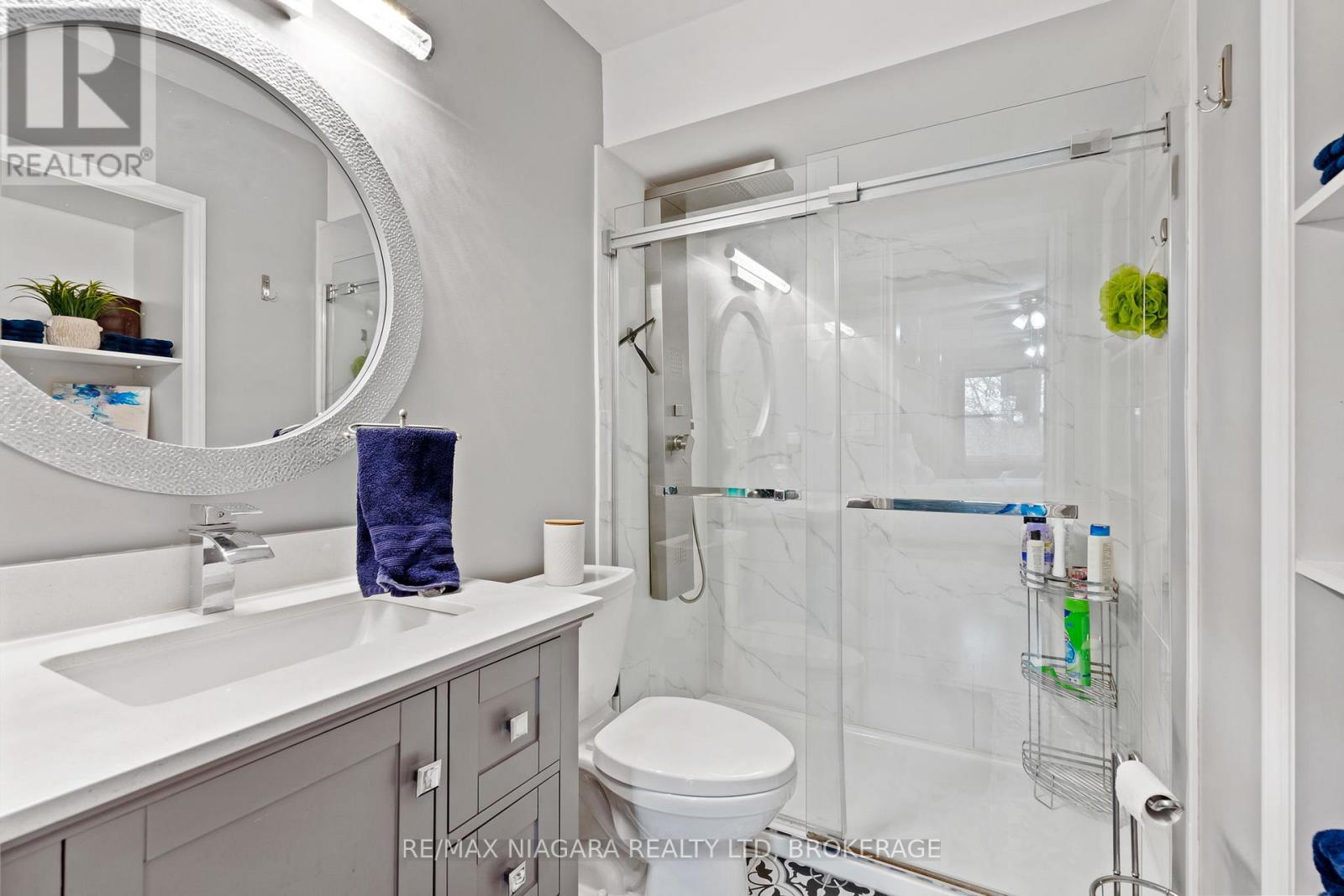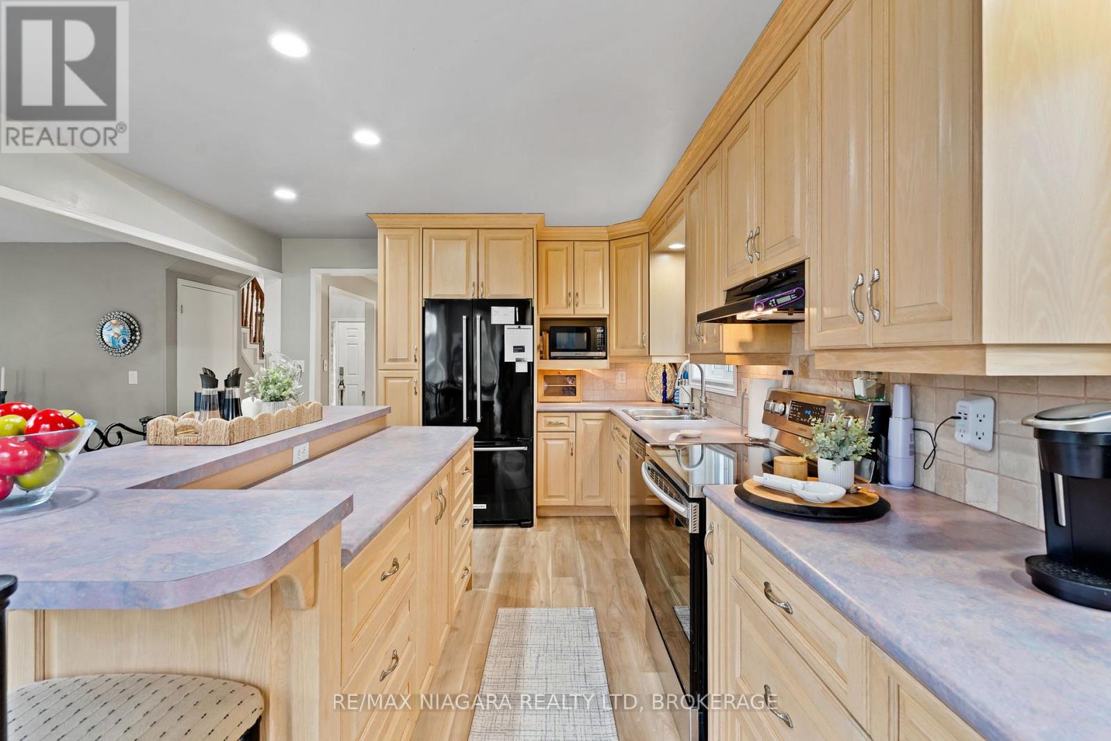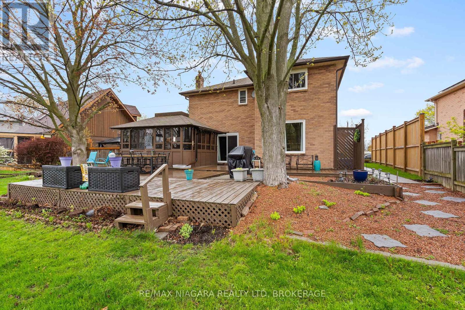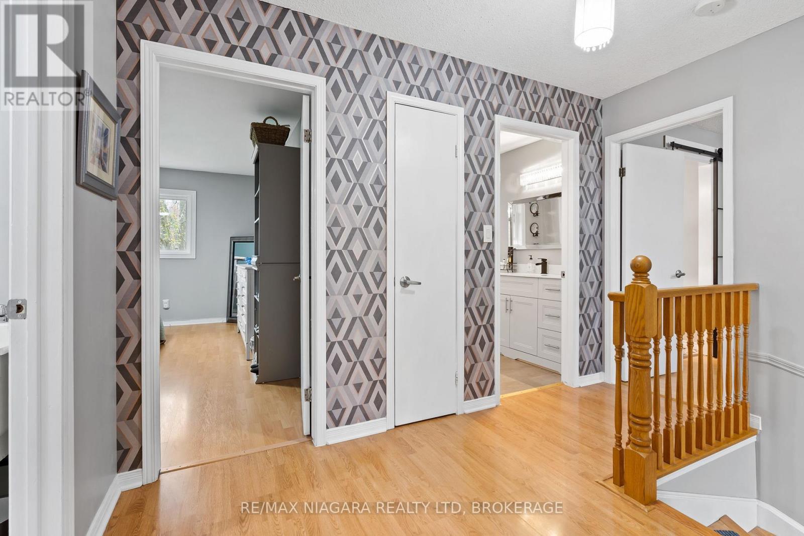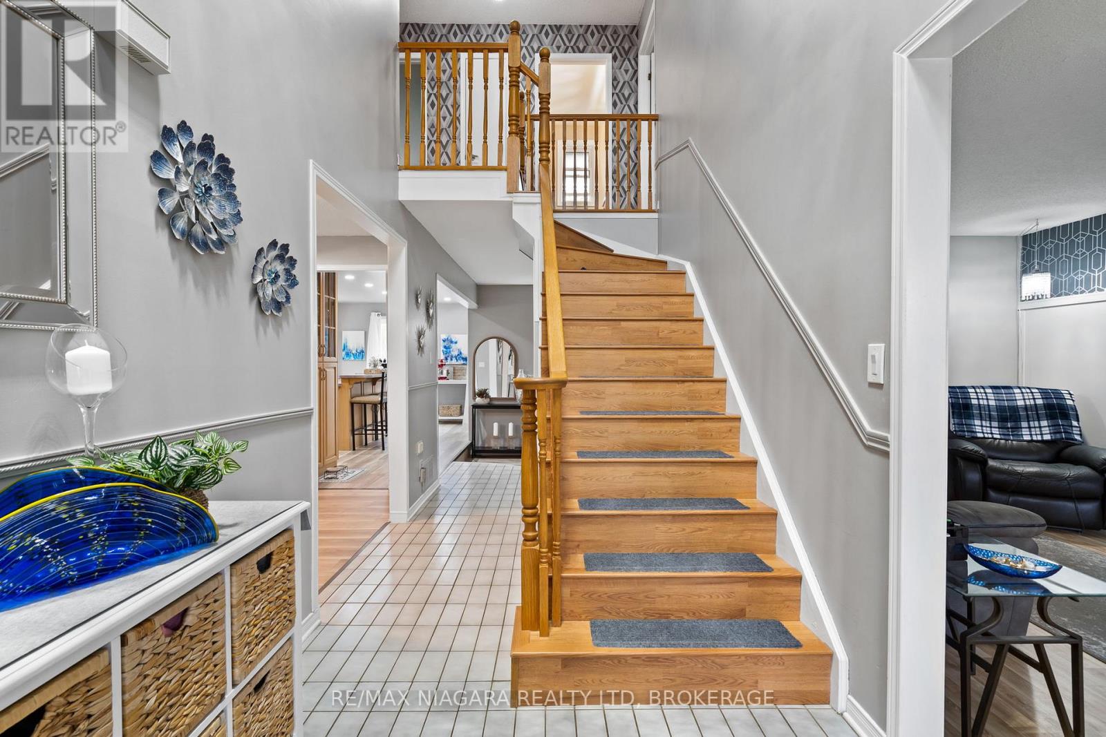 Welcome to this pride of ownership home in the quiet north end of Welland, ideally located close to all amenities and backing directly onto Ricelawn Park for added privacy and green space. Upon entering, you are greeted by a beautiful wooden staircase that sets the tone for the home's warm and inviting feel. The main floor offers a functional layout with a double car garage featuring convenient interior access through a mudroom, along with a stylishly updated 2-piece powder room complete with a new vanity and toilet. Multiple living spaces include a comfortable family room and an additional sitting area, perfect for both relaxing and entertaining. The kitchen, office, and dining areas are enhanced by brand new luxury vinyl flooring (2026), and sliding doors lead you to a backyard oasis featuring a wood deck, enclosed gazebo, and hot tub (in as-is condition), all with the added bonus of no rear neighbours and direct access to the park. Upstairs, you'll find three spacious bedrooms, a fully renovated 4-piece bathroom (2024), and the convenience of an upstairs laundry room. The large primary bedroom offers a walk-in closet and a beautifully updated 3-piece ensuite (2023). The lower level features new vinyl flooring on the stairs (2026) and offers a spacious rec room and additional storage room. It also has a toilet, sink, and rough-in for a shower, making it easy to convert into a full bathroom. This is a fantastic opportunity to own a move-in ready home in a desirable family-friendly neighbourhood! (id:43681)