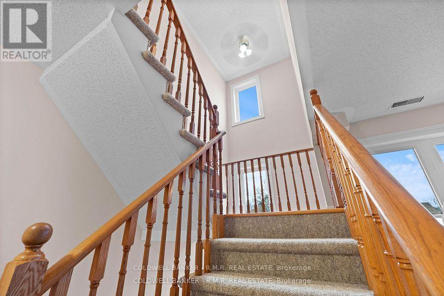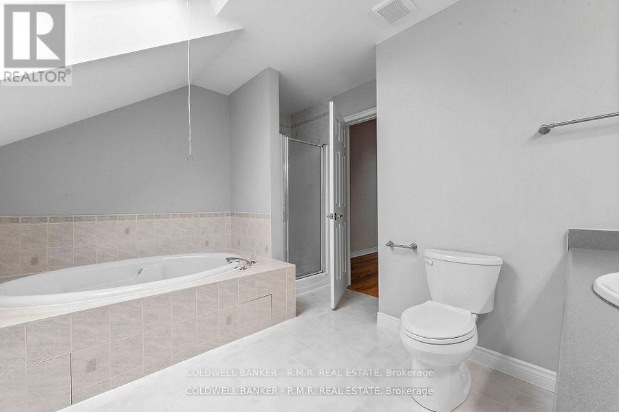 Welcome to this spacious newly renovated 3 bedroom 2 bathroom condo offering nearly 2,000 square feet of living space. The entire third floor is a dedicated primary suite with skylights and a 4 piece ensuite. Beaurtiful hardwood and tile flooring run throughout. The oversized eat in kitchen features new granite counters, ample cabinetry, and great workspace. A fomral dining room allows room to host family and friends, and the large living room opens to a generous west facing balcony; perfect for sunsets. The location is exceptional with the YMCA and Cobourg Creek Golf Course seconds away, plus shopping, restaurants downtown and the beach all withen minutes. Additional features include an attached garage and basement storage. Water garbage pickup snow removal and landscaping are included. Please note dogs are not permitted in this condo complex. (id:43681)