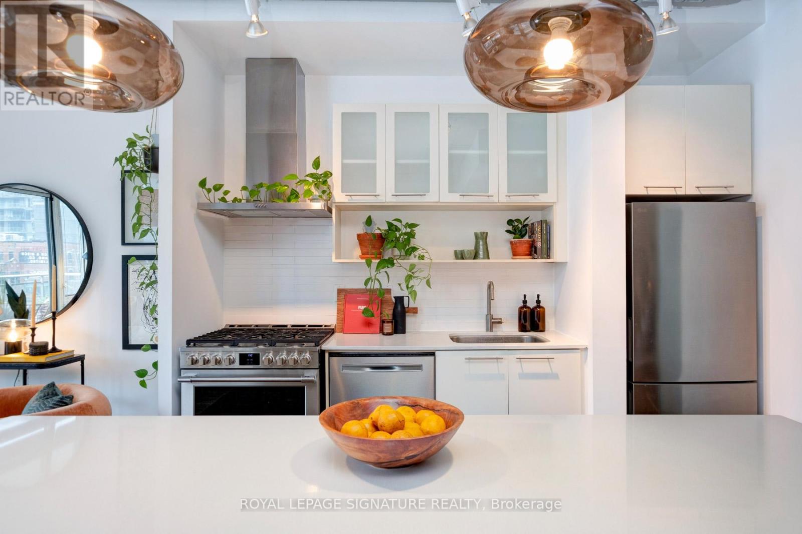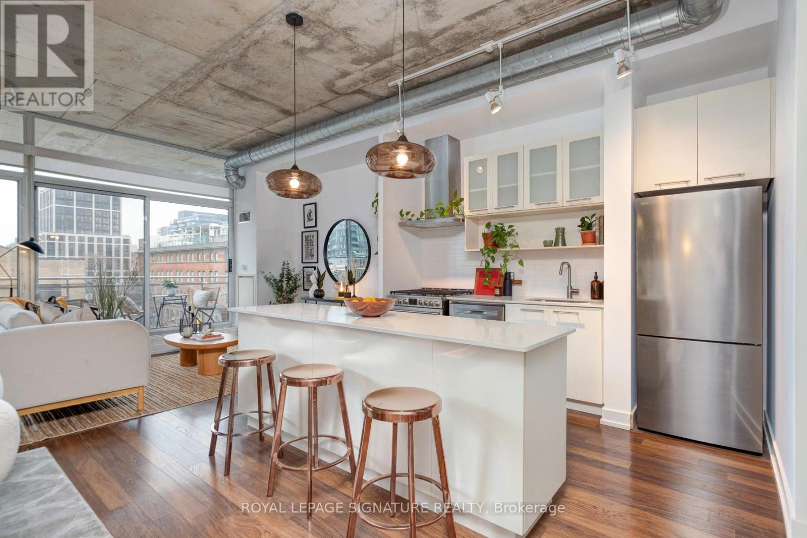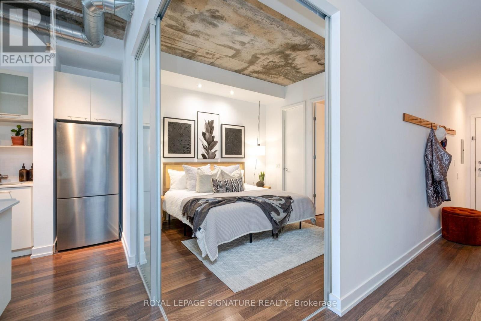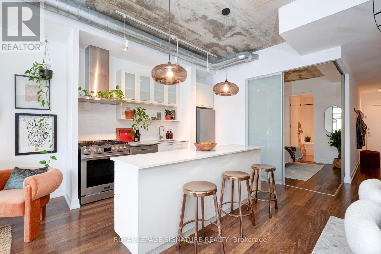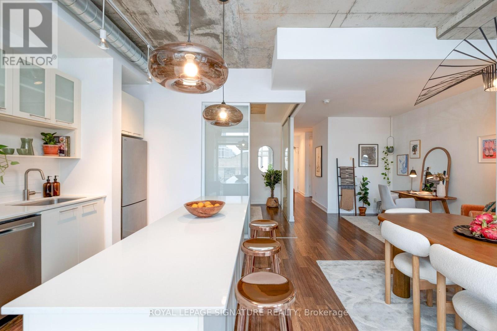 $754.63 每月Where King West energy meets boutique loft living. A gorgeous suite designed for entertaining, relaxing, & enjoying the buzz of the city. Welcome to 66 Portland St Suite 513, a beautifully updated 1+1 bedroom, 2 bathroom loft offering 927 sqft. of thoughtfully designed living space in a prime boutique building. This industrial-chic yet warm & inviting suite offers the perfect balance of vibrant city living & peaceful retreat. Experience the best of both worlds - the vibrant energy of King West at your doorstep, with quieter neighbourhood streets just moments away. Designed for both entertaining and everyday living, the spacious layout showcases a true full-size dining area anchored by custom built-in shelving, creating the perfect setting for hosting. The beautifully updated kitchen features an oversized island, new appliances including a gas stove, & excellent storage. A separate, full-sized living room framed by floor-to-ceiling windows opens directly onto a large 130 sqft. balcony complete with a gas line for BBQing, creating a seamless indoor-outdoor flow. Whether entertaining friends or enjoying a quiet evening outside, the balcony feels like a natural extension of the living space. The generous den functions beautifully as a large home office, ideal for today's work-from-home lifestyle. The primary bedroom comfortably accommodates a king-sized bed & features a walk-in closet with custom built-ins & a private ensuite. A rare second bathroom adds convenience for guests which is a rare & standout feature. Thoughtful upgrades throughout include custom built-in storage in both the hallway closet & walk-in closet, along with window coverings, maximizing both functionality & style. This suite is complete with prime parking & a large locker. With its generous square footage & rare layout offering a full dining area, spacious kitchen, & separate living room, this suite truly lives like a home in the sky. A King West opportunity that you need to see for yourself. (id:43681)