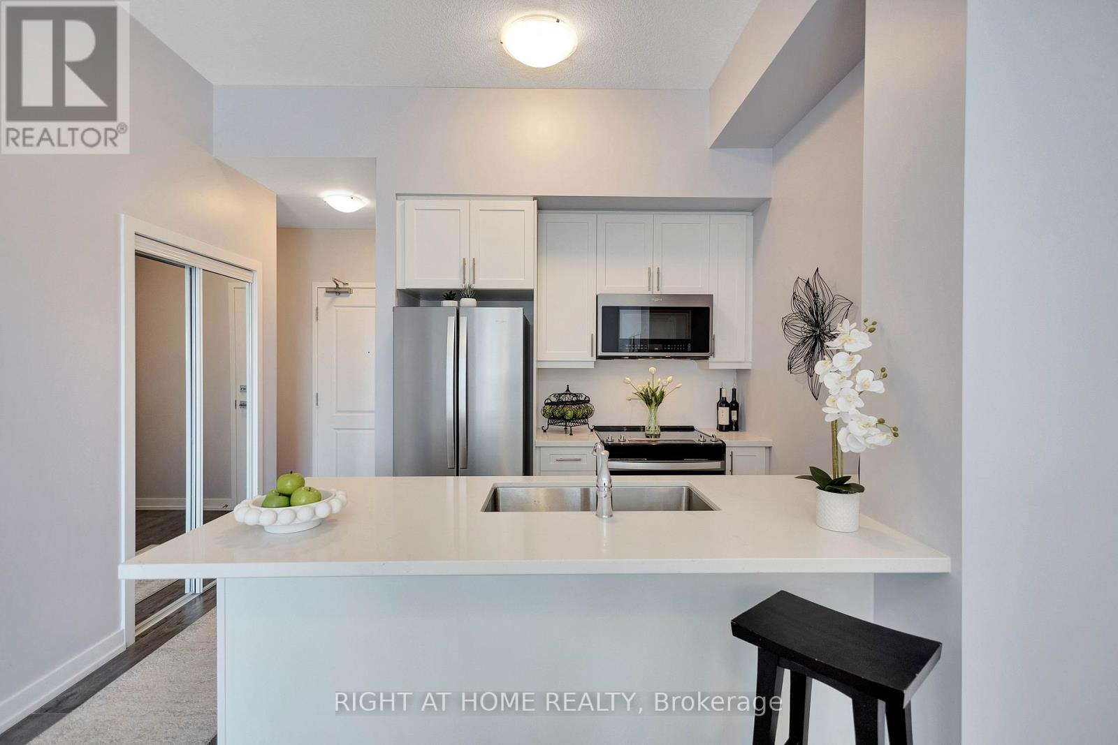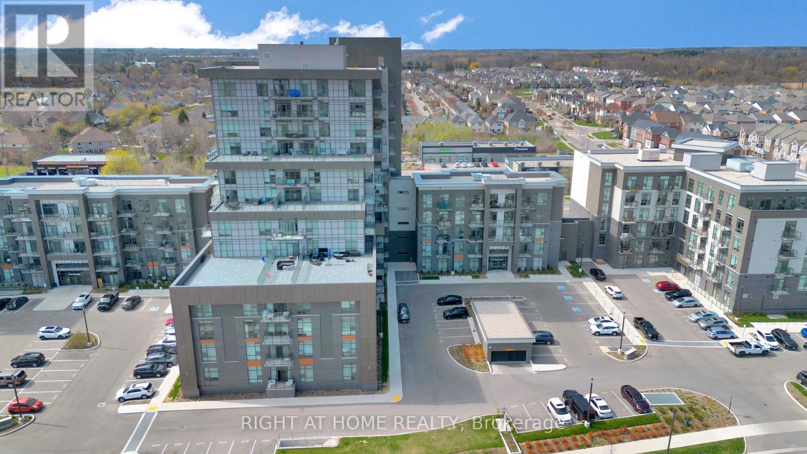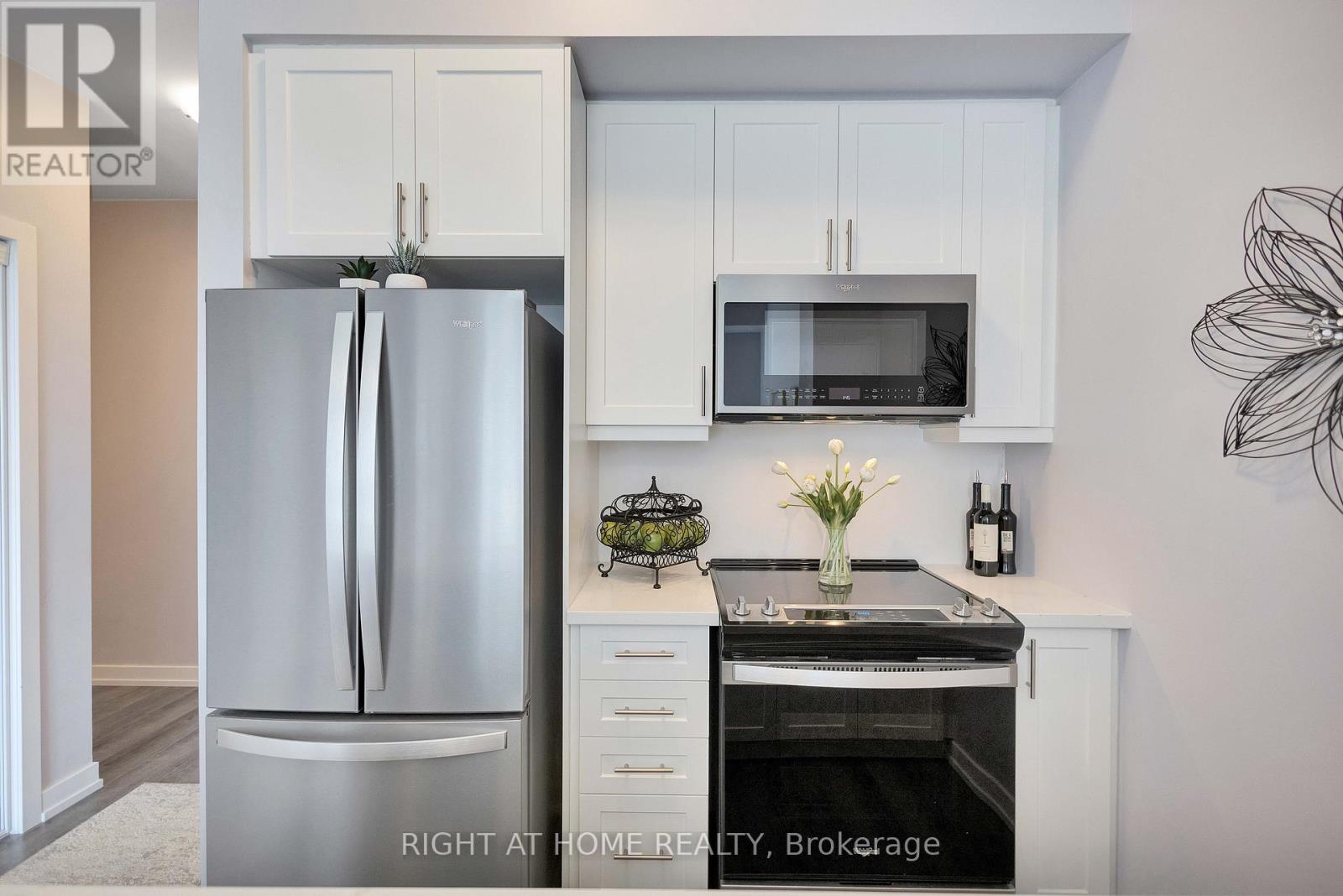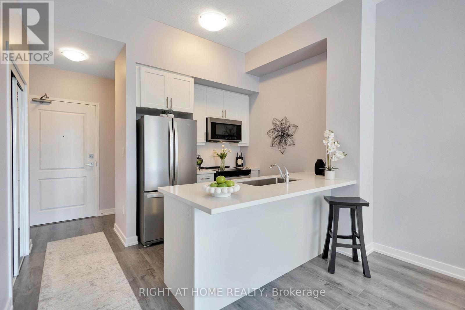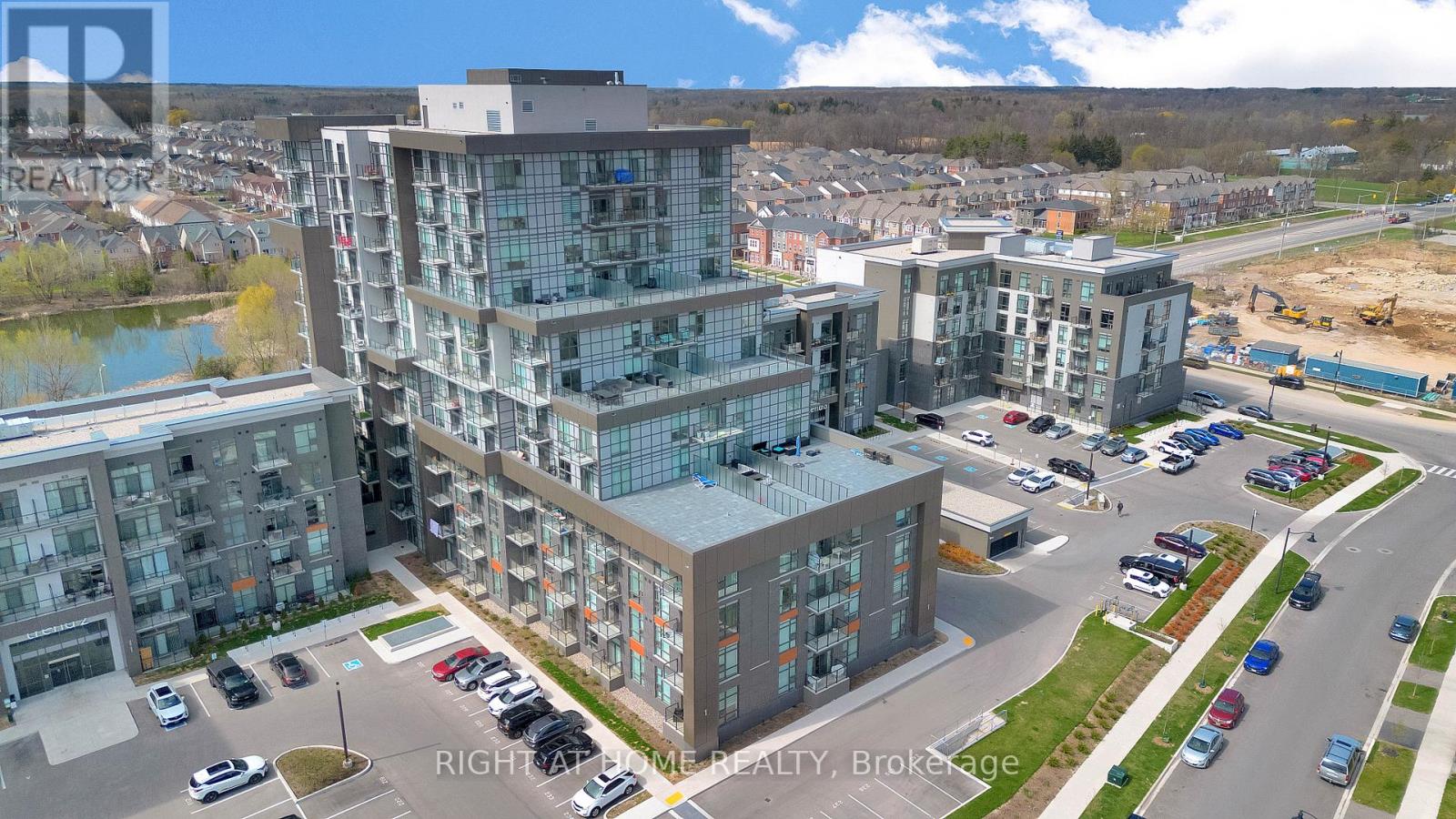 $370 每月Stylishly upgraded, and move-in ready! Welcome to this exceptional 1+Den condo by New Horizon Development Group in the highly sought-after Trend 3 building. Offering 638 sq. ft. of beautifully finished living space, this suite perfectly blends modern design with everyday comfort-ideal for first-time buyers, downsizers, or savvy investors. The modern kitchen is both elegant and timeless, showcasing quartz countertops, stylish cabinetry, upgraded hardware, and a full suite of upgraded Whirlpool appliances, including a versatile range with microwave and cooktop. The open-concept living area is complemented by sleek, neutral vinyl plank flooring throughout, creating a warm and contemporary feel. The generous primary bedroom is paired with a versatile den-ideal for a home office or guest space-and a well-appointed 4-piece bath. Enjoy the comfort and efficiency of geothermal heating and cooling year-round. This unit also includes one exclusively owned locker and one underground parking space for added convenience. Residents can enjoy the fantastic amenities, including a fully equipped gym on the main level and a beautifully designed terrace on the same floor-complete with seating areas, BBQs, and scenic views. Whether you're relaxing with a book, hosting summer get-togethers, or enjoying a quiet evening meal, this space is the perfect extension of your home. Ideally located within walking distance to downtown Waterdown, offering easy access to grocery stores, restaurants, and everyday amenities, and just minutes to the GO for effortless commuting. (id:43681)