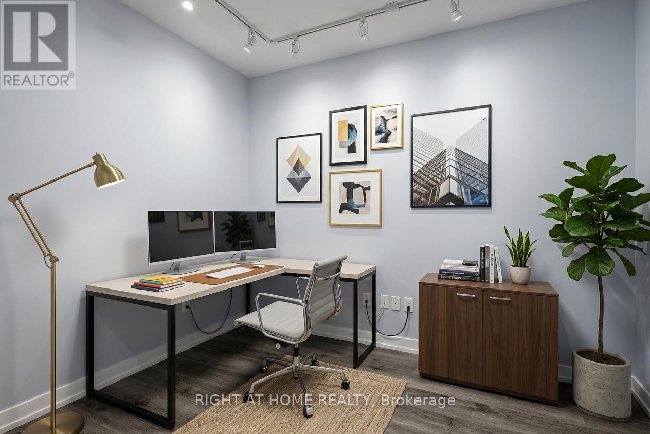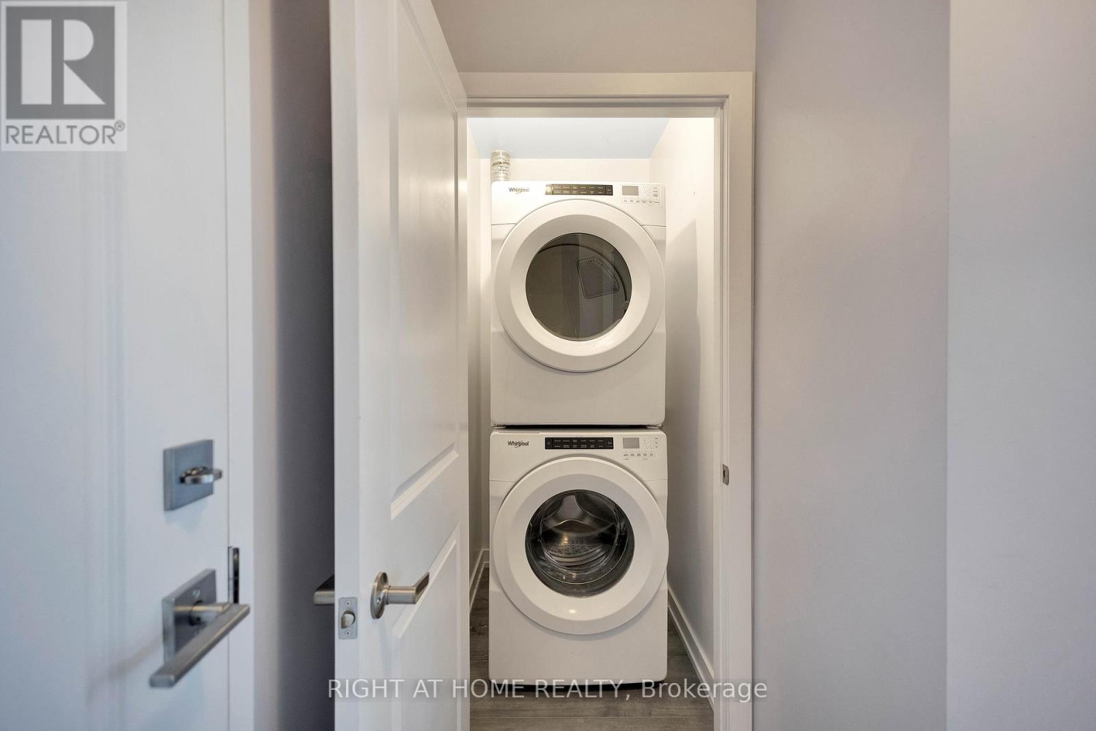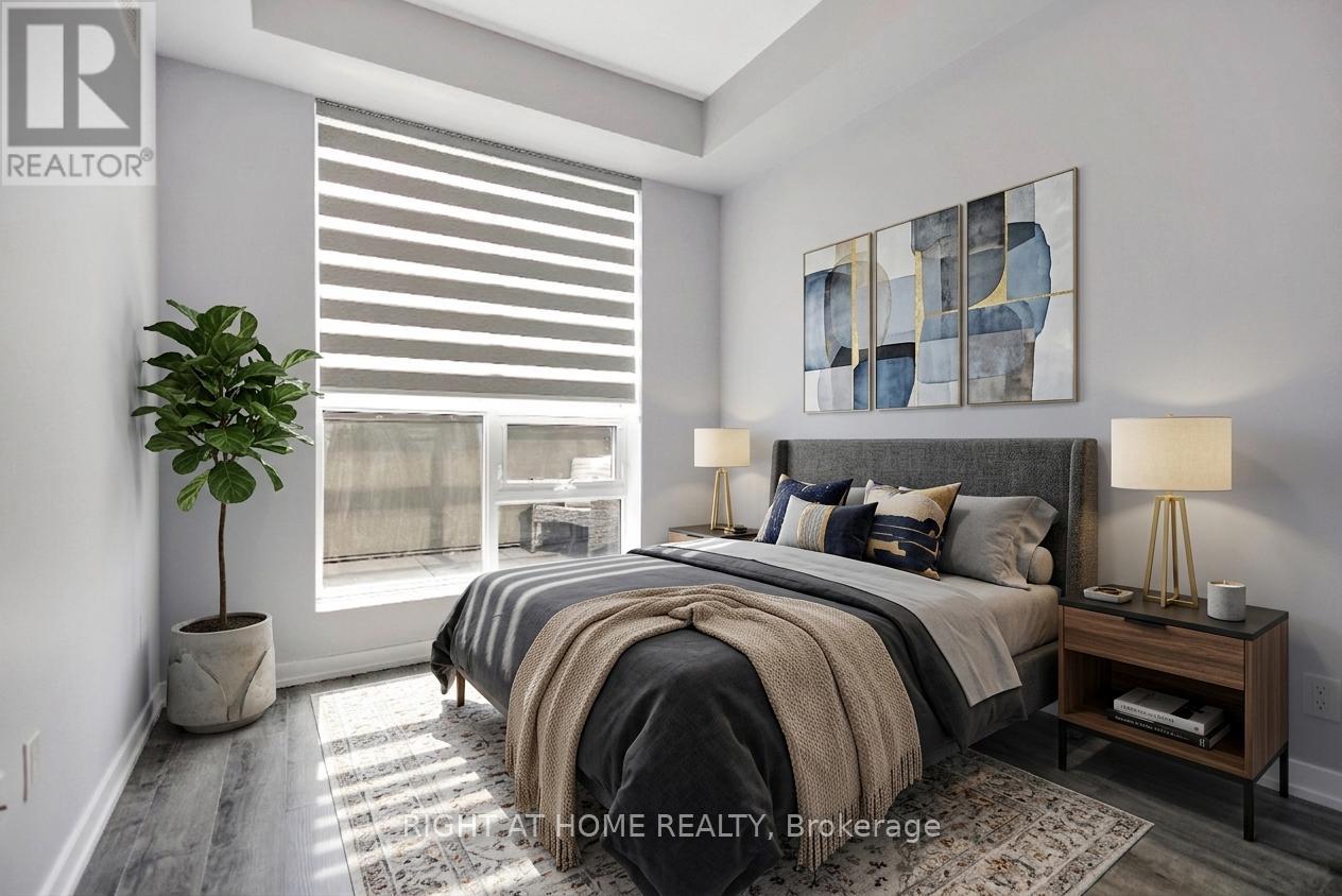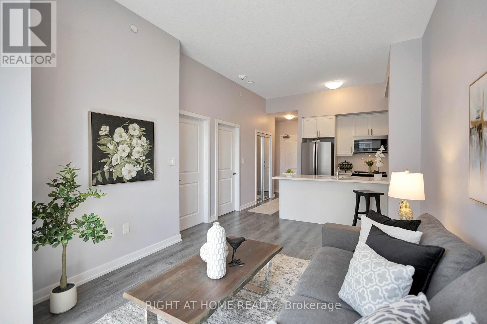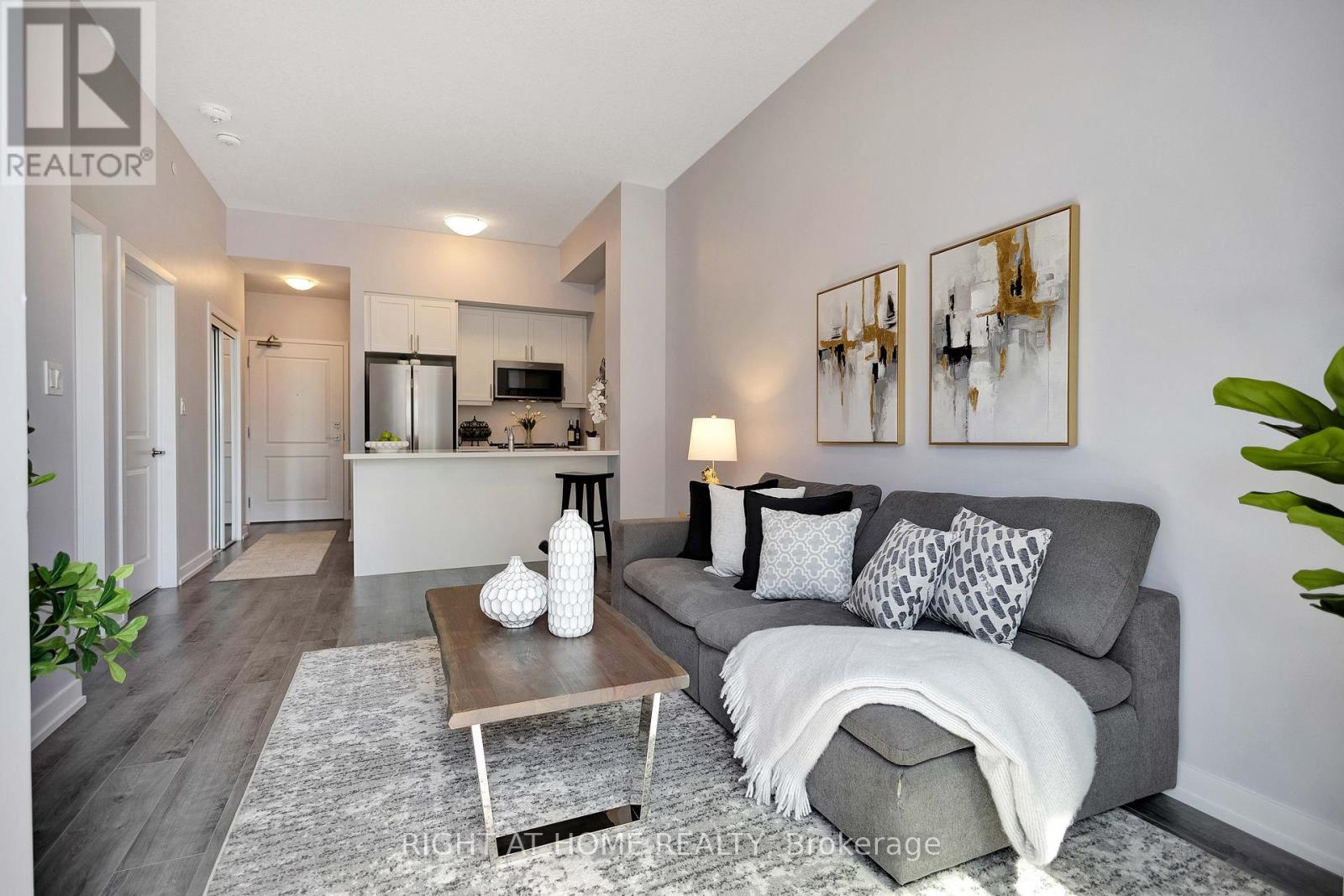 $370 每月Stylishly upgraded, and move-in ready! Welcome to this exceptional 1+Den condo by New Horizon Development Group in the highly sought-after Trend 3 building. Offering 638 sq. ft. of beautifully finished living space, this suite perfectly blends modern design with everyday comfort-ideal for first-time buyers, downsizers, or savvy investors. The modern kitchen is both elegant and timeless, showcasing quartz countertops, stylish cabinetry, upgraded hardware, and a full suite of upgraded Whirlpool appliances, including a versatile range with microwave and cooktop. The open-concept living area is complemented by sleek, neutral vinyl plank flooring throughout, creating a warm and contemporary feel. The generous primary bedroom is paired with a versatile den-ideal for a home office or guest space-and a well-appointed 4-piece bath. Enjoy the comfort and efficiency of geothermal heating and cooling year-round. This unit also includes one exclusively owned locker and one underground parking space for added convenience. Residents can enjoy the fantastic amenities, including a fully equipped gym on the main level and a beautifully designed terrace on the same floor-complete with seating areas, BBQs, and scenic views. Whether you're relaxing with a book, hosting summer get-togethers, or enjoying a quiet evening meal, this space is the perfect extension of your home. Ideally located within walking distance to downtown Waterdown, offering easy access to grocery stores, restaurants, and everyday amenities, and just minutes to the GO for effortless commuting. (id:43681)