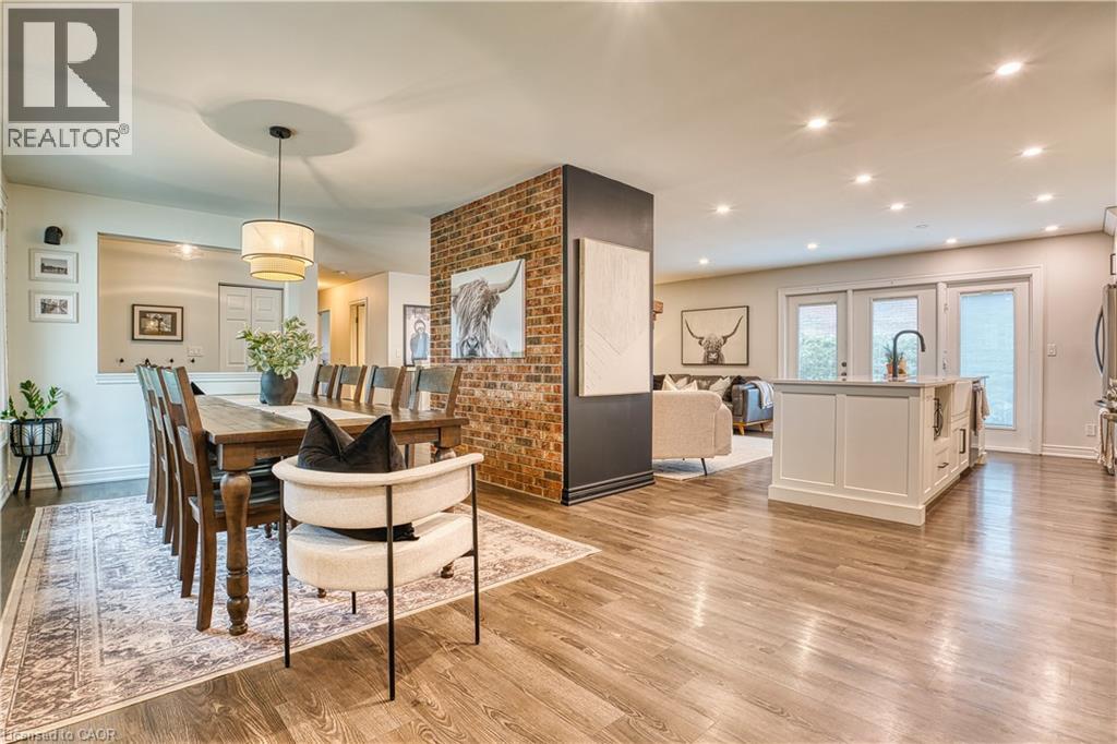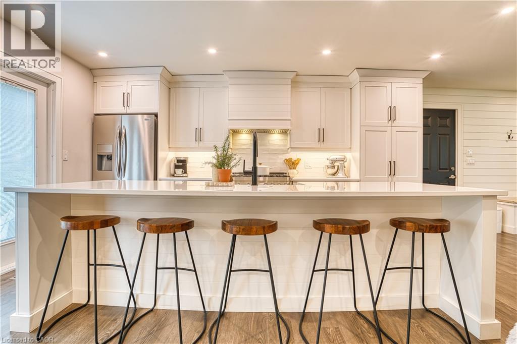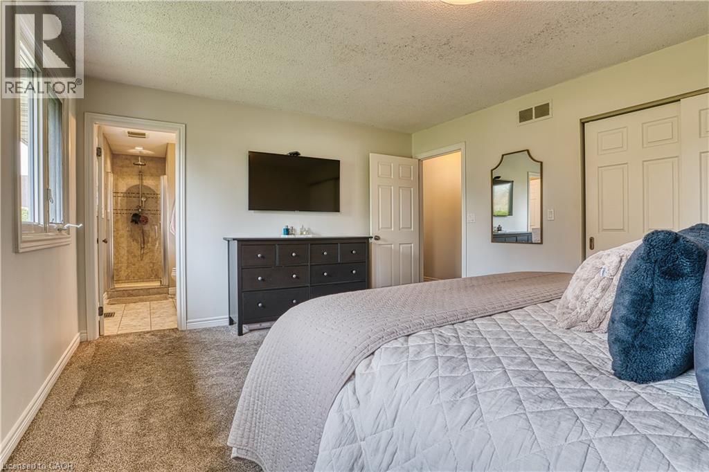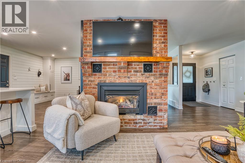 All brick bungalow situated on a dead end street in mature area of Listowel. 3+2 bedroom home is over 1555 sqft of finished space which has been recently renovated throughout. AAA location close to park, trails, Maitland River, baseball diamonds and wildlife. Step into the bright main floor which has newer kitchen (2020) with eat up island and quartz countertops, plenty of cabinetry and all newer appliances. Cozy up the beautiful brick fireplace in the living room for your favorite movie or enjoy your family time at the large formal dining area. Large master bedroom includes renovated 3 piece ensuite bath, 2 other bedrooms complete the main level. The open staircase leads to the finished basement which includes 2 more large bedrooms, bath, rec room area and laundry. Walk-up to the double car garage allows for great access. This home has very well cared for and is move in ready with the space for your growing family or for downsizers alike. (id:43681)