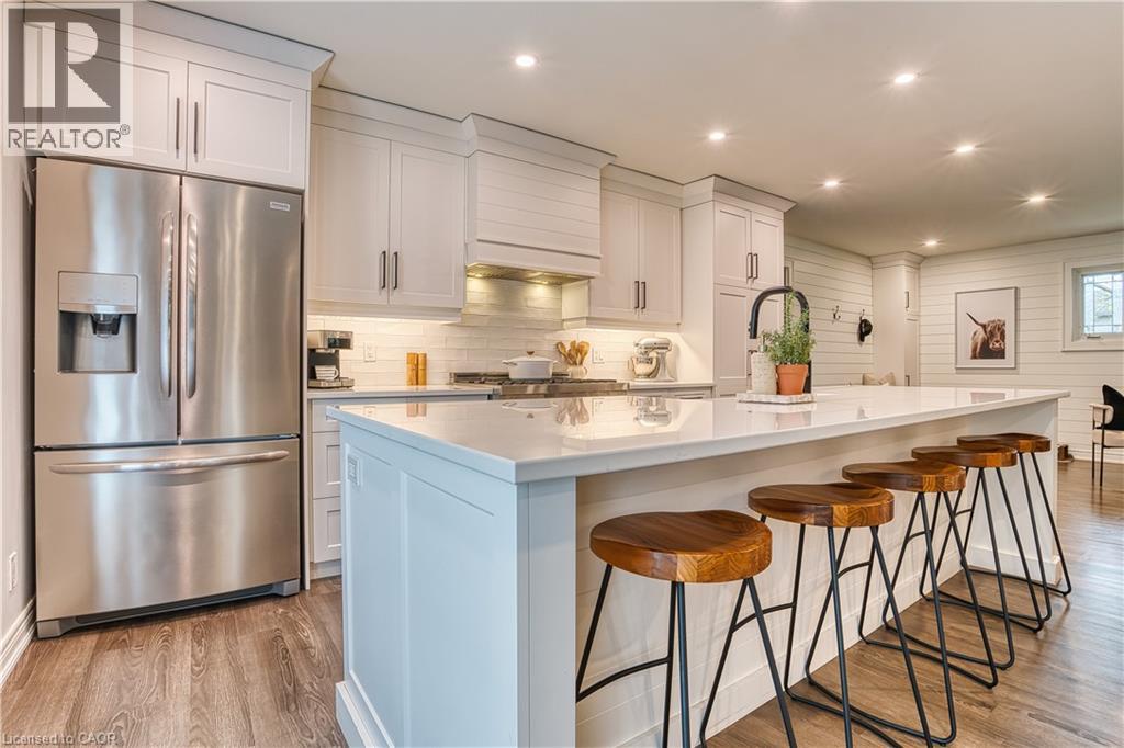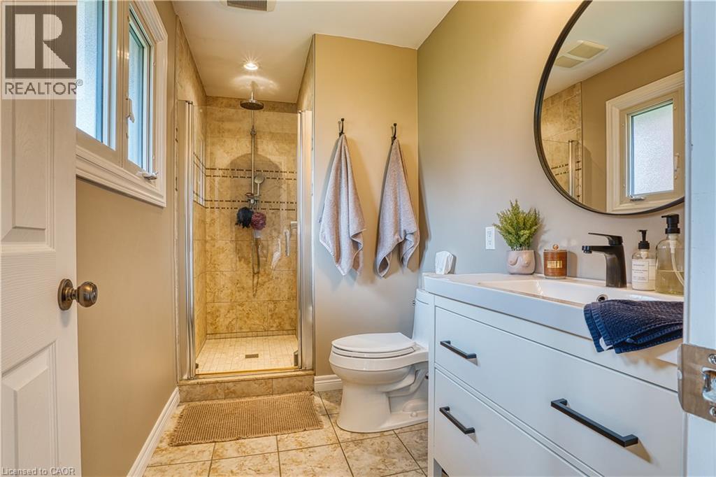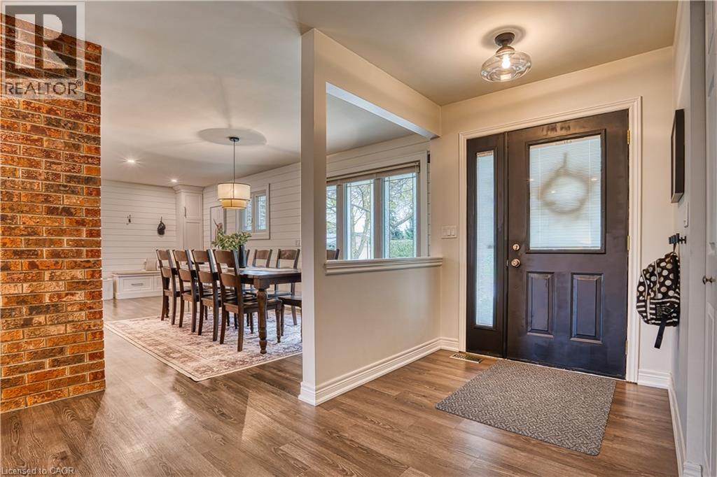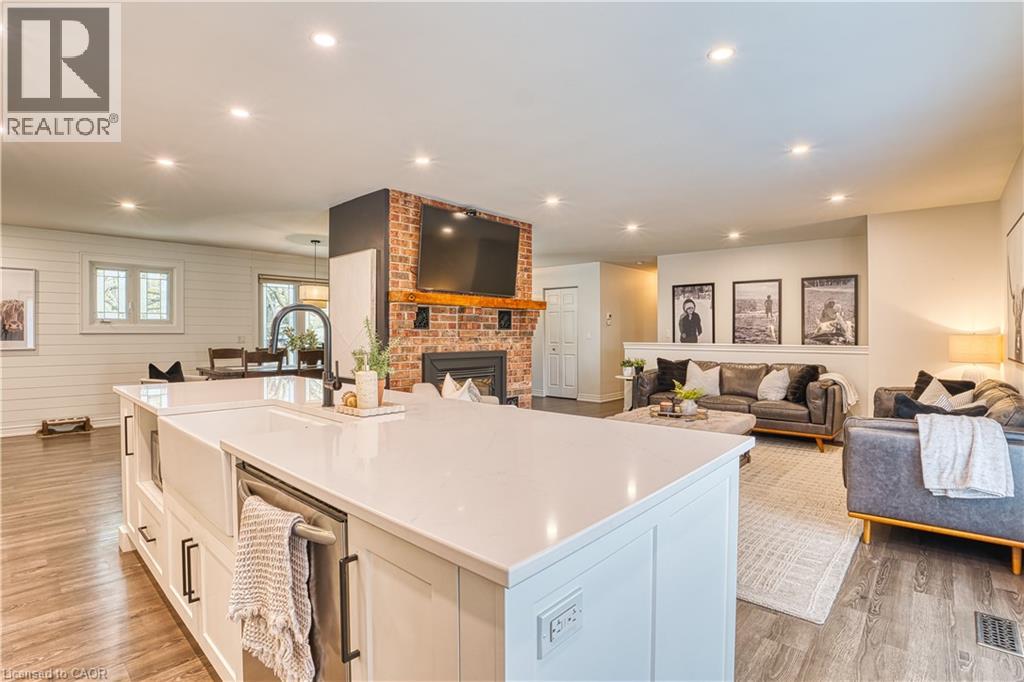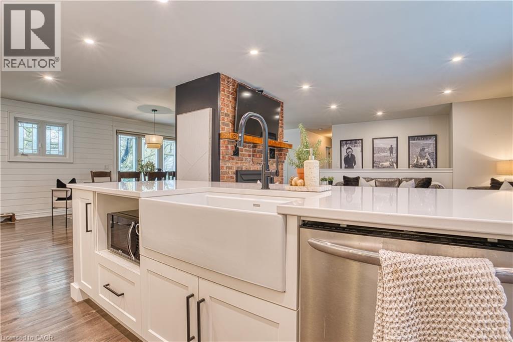 All brick bungalow situated on a dead end street in mature area of Listowel. 3+2 bedroom home is over 1555 sqft of finished space which has been recently renovated throughout. AAA location close to park, trails, Maitland River, baseball diamonds and wildlife. Step into the bright main floor which has newer kitchen (2020) with eat up island and quartz countertops, plenty of cabinetry and all newer appliances. Cozy up the beautiful brick fireplace in the living room for your favorite movie or enjoy your family time at the large formal dining area. Large master bedroom includes renovated 3 piece ensuite bath, 2 other bedrooms complete the main level. The open staircase leads to the finished basement which includes 2 more large bedrooms, bath, rec room area and laundry. Walk-up to the double car garage allows for great access. This home has very well cared for and is move in ready with the space for your growing family or for downsizers alike. (id:43681)