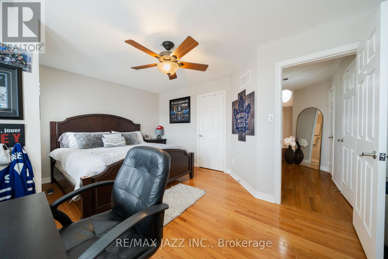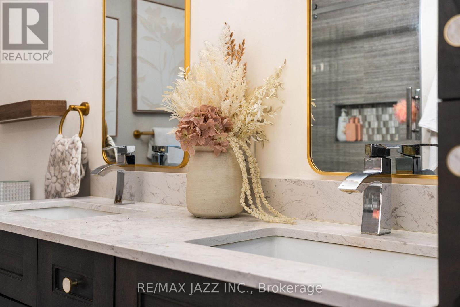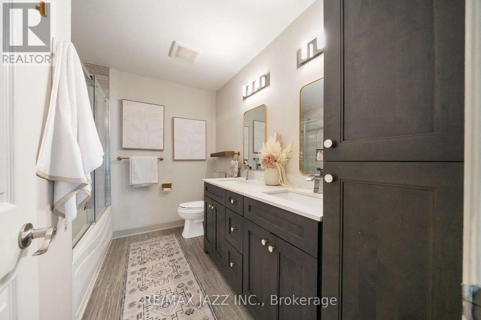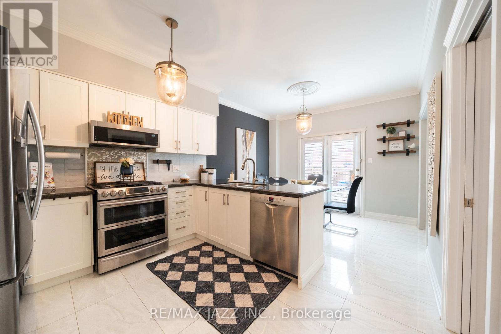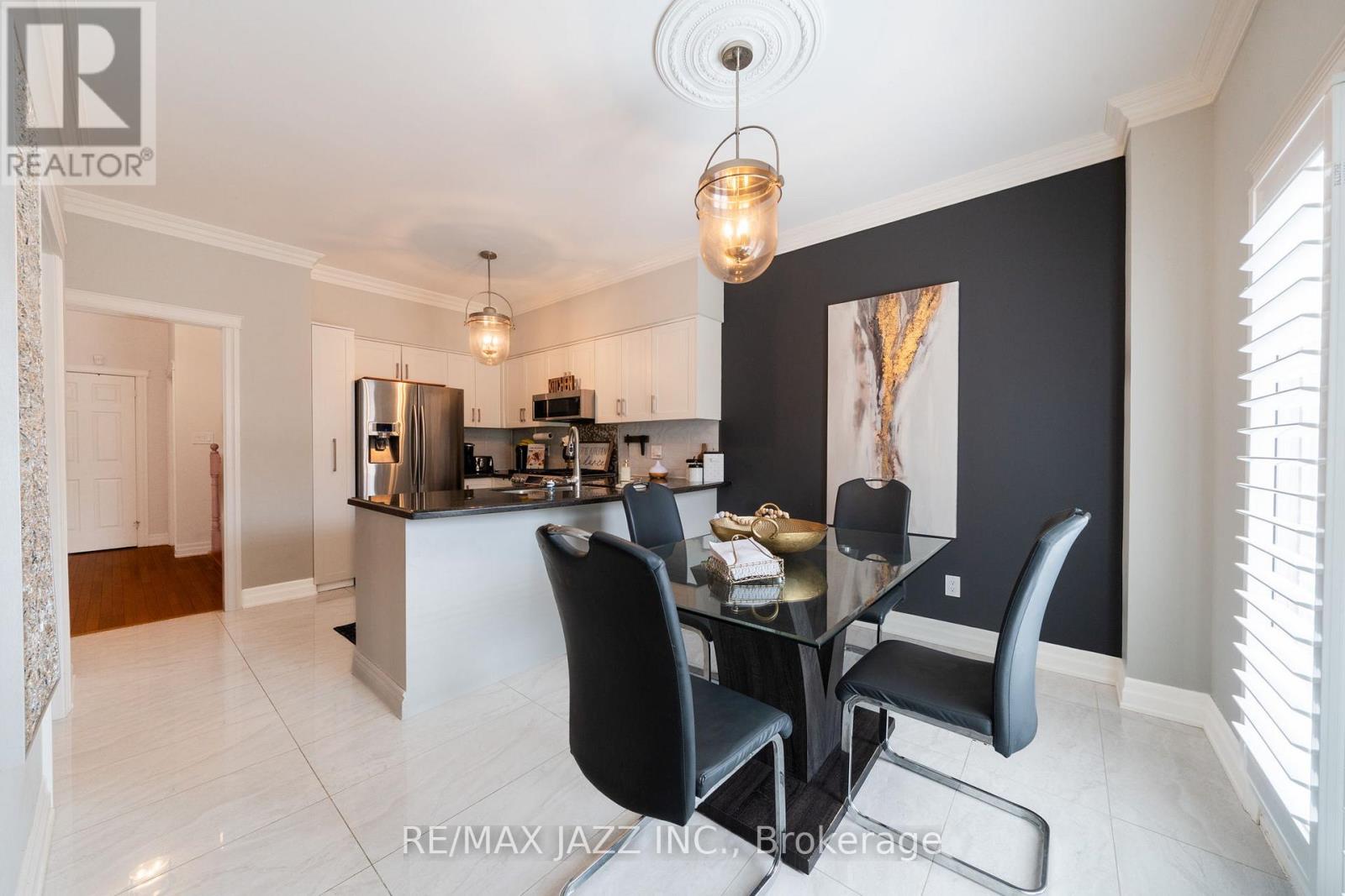 Beautiful 4-bedroom brick home with a finished basement in the highly sought-after College Manor! Bright, functional layout with hardwood floors and California shutters throughout. Features a spacious dining room with French doors, cozy family room with gas fireplace, and a modern eat-in kitchen with quartz counters, stainless steel appliances, gas stove, breakfast bar, and walk-out to a private landscaped backyard with deck-perfect for summer entertaining. Upstairs offers generously sized bedrooms, including a primary suite with double door entry, walk-in closet, and 4-piece ensuite. Separate garage entrance leads to a fully finished basement complete with a rec room, wet bar, 3-piece bath, and bonus office or workout space. Prime location close to top schools, Magna Centre, shopping, transit. A true turnkey family home ready to move in and enjoy. (id:43681)