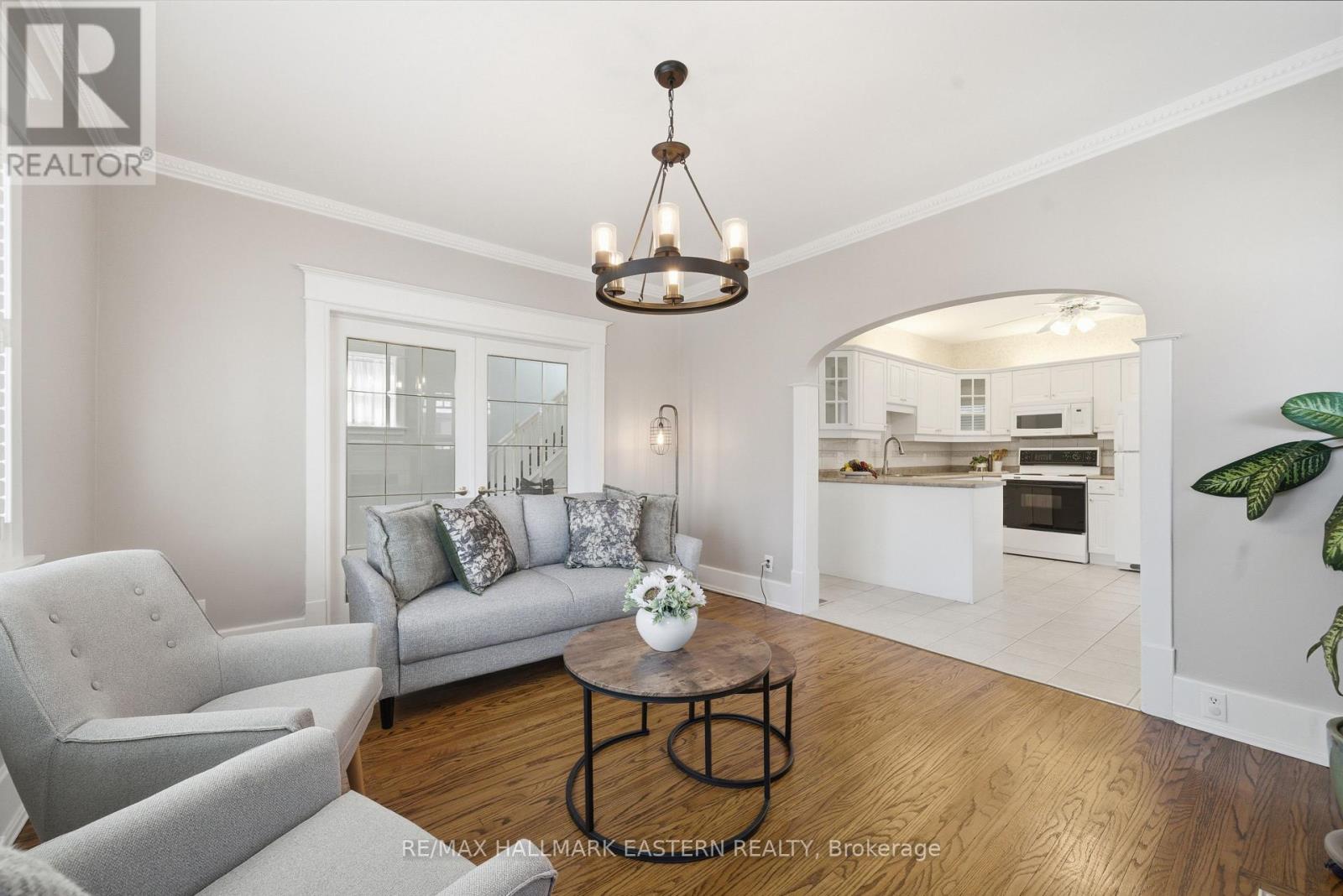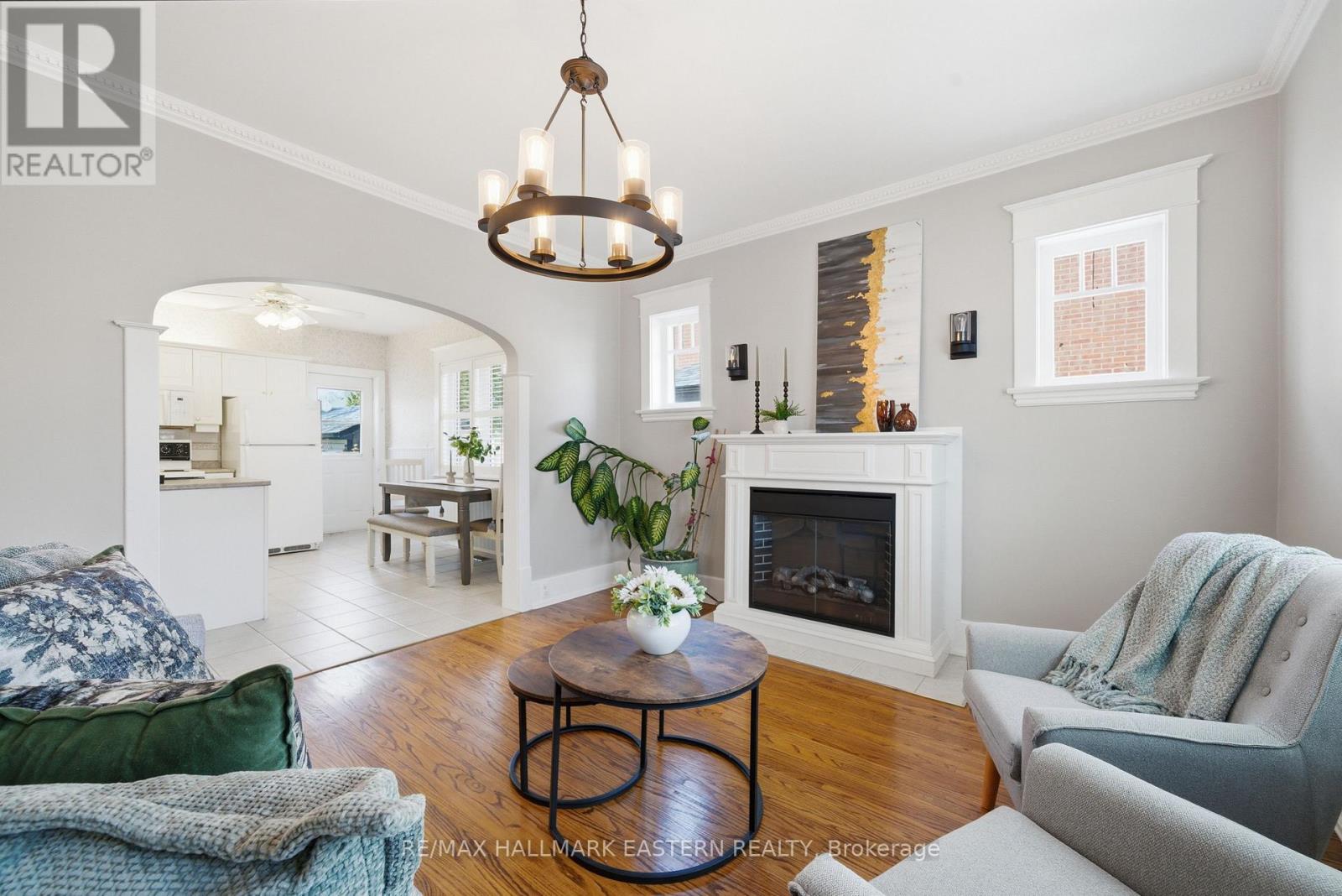 Welcome to 556 Douglas St., a charming 2-storey brick home full of character, ideally located on a quiet, tree-lined street in the heart of Peterborough. Quick bike or walk to downtown, Little Lake, local music festivals, and shopping on Lansdowne, this location offers the perfect blend of lifestyle and convenience. This well cared for home features 3 bedrooms and 2 bathrooms, with a bright and functional layout designed for everyday living. The open-concept kitchen and living area is warm and inviting, highlighted by original hardwood flooring and detailed crown mouldings. The spacious eat-in kitchen offers plenty of cupboard and counter space, a peninsula island and a walk-out to a private back deck overlooking beautifully maintained perennial gardens. With a fully fenced yard, an ideal space for relaxing or your four legged family members. Upstairs, you'll find three well sized bedrooms, while the finished basement provides additional living space with pot lights and ceramic flooring. A separate side entrance offers potential for an in-law suite or multi-generational living. A fantastic opportunity to own a centrally located home with charm, space, and flexibility in one of Peterborough's most walkable neighbourhoods. A prelist home inspection has been completed by AmeriSpec for your peace of mind. Floor plans and video tours are available for your convenience through the BROCHURE BUTTON on Realtor.Ca. Book your private showing today! (id:43681)