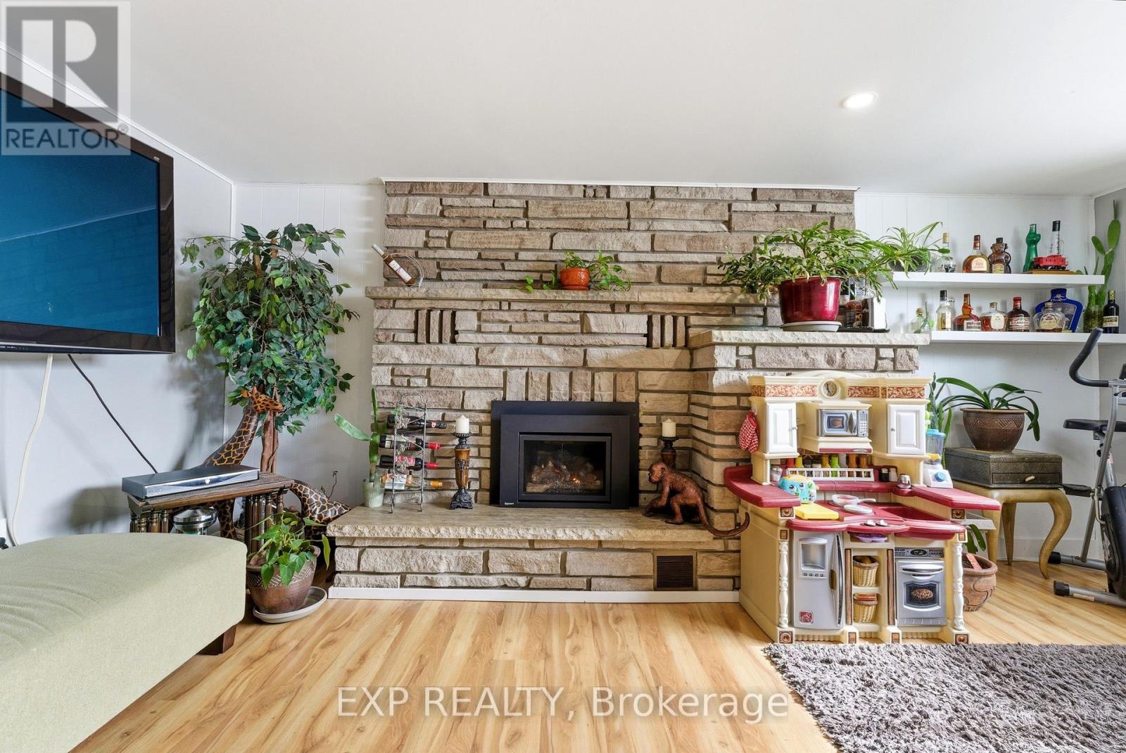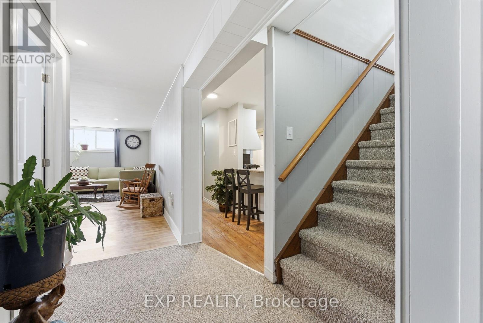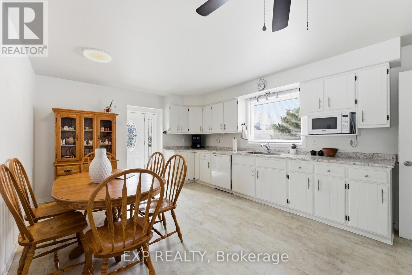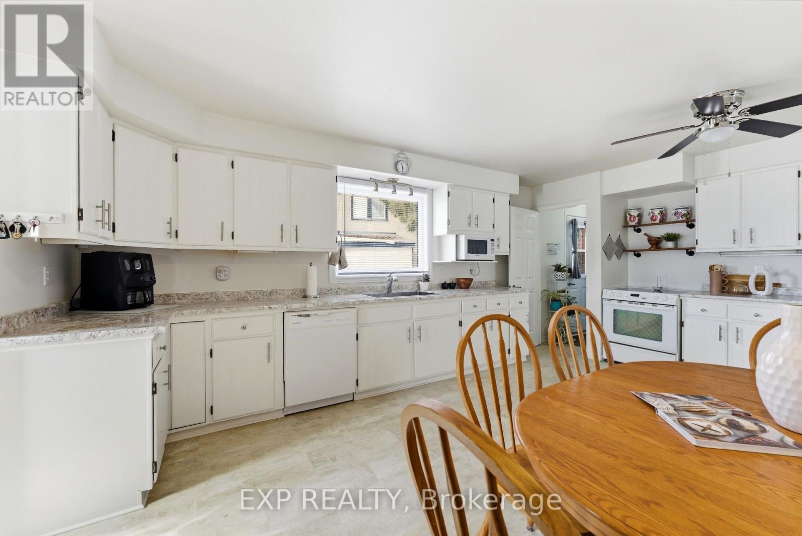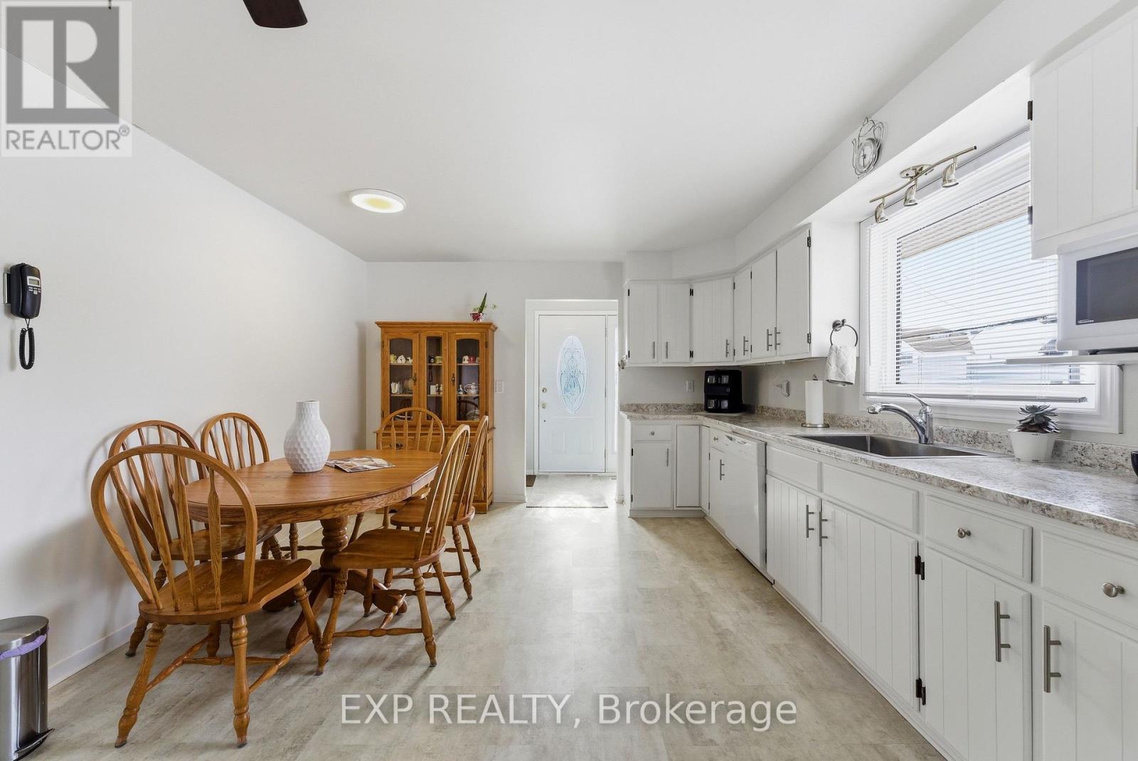 Welcome to 56 Graham Street, a beautiful brick bungalow set on a deep lot in an established Belleville neighbourhood. Built in 1976 and offering over 2,200 sq. ft. of finished living space, this well-maintained home provides exceptional flexibility with a fully finished lower level that presents excellent in-law suite potential or rental opportunities. The main floor features a bright and spacious layout designed for comfortable everyday living. A welcoming foyer opens into a large living room filled with natural light, creating an inviting space for relaxing or entertaining. The kitchen offers generous cabinetry and workspace and flows seamlessly into the adjoining dining space, making family meals easy and enjoyable. Two well-sized bedrooms are located on the main level, along with a three-piece bathroom. A bright sunroom off one of the bedrooms provides added living space and a cozy spot to unwind while enjoying views of the backyard. Downstairs, the fully finished basement significantly expands the home's living potential. With its own kitchen, spacious family room with a fireplace, three additional bedrooms, and a four-piece bathroom, the lower level is well suited for an in-law suite, extended family living, or the possibility of generating rental income. The layout provides excellent separation between levels while still maintaining easy access throughout the home. Outside, the property sits on a generous lot, offering a large backyard with plenty of room for gardening and outdoor entertaining. The detached garage/workshop offers added outdoor storage space, while the expansive driveway provides plenty of parking spaces, adding exceptional convenience for residents and guests alike. Located close to schools, shopping, parks, and everyday amenities, this property offers both space and versatility in a desirable location. This is the perfect home for those searching for a family home with room to grow or a property with income or multi-generational potential! (id:43681)