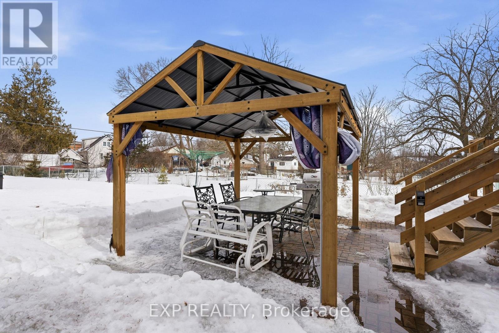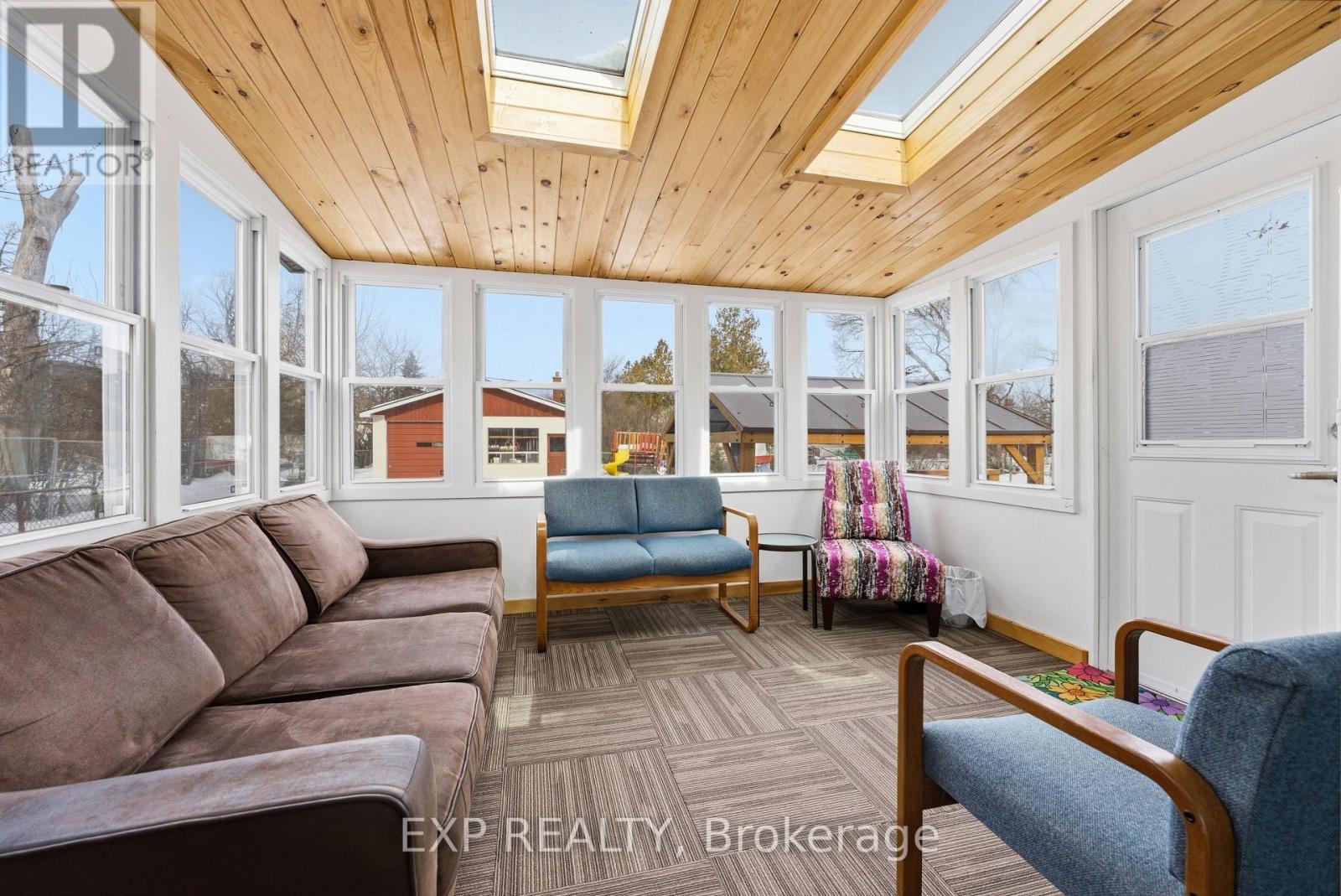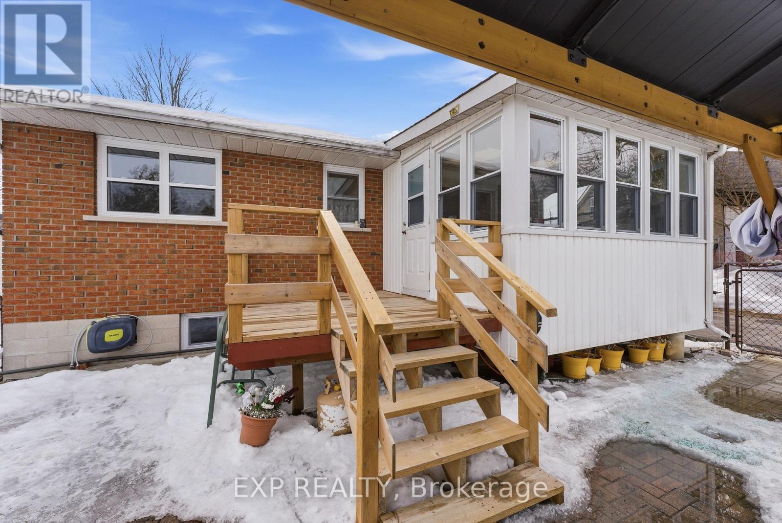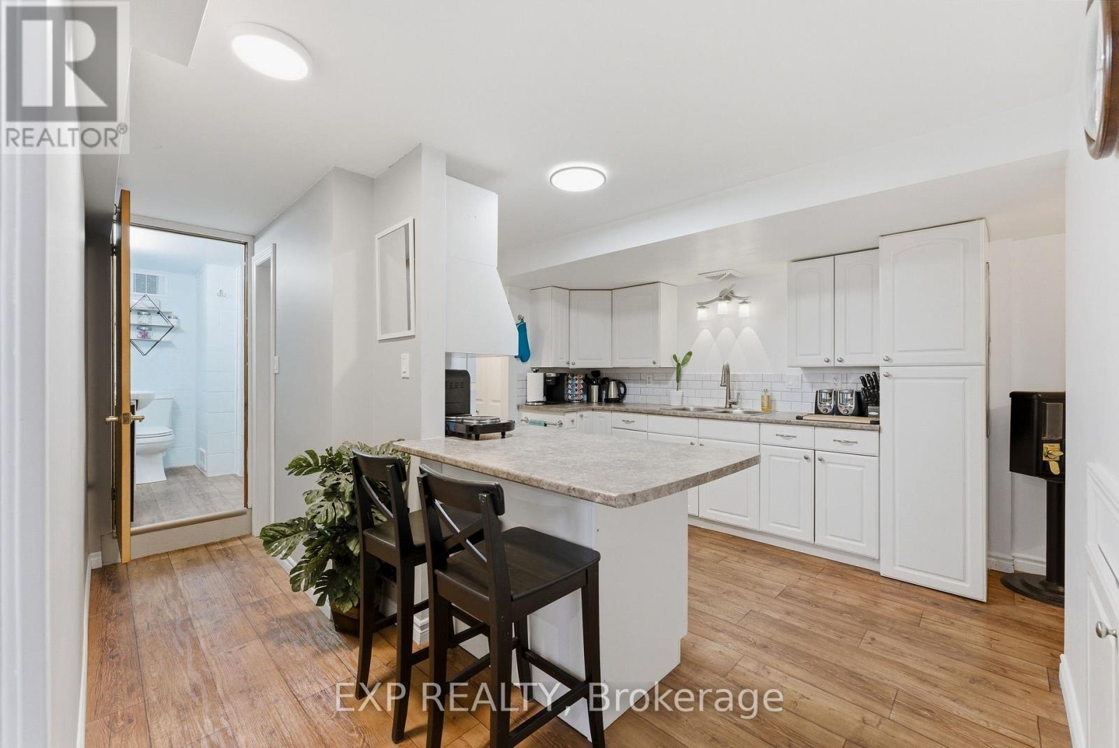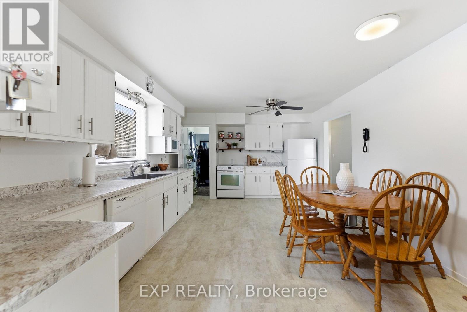 Welcome to 56 Graham Street, a beautiful brick bungalow set on a deep lot in an established Belleville neighbourhood. Built in 1976 and offering over 2,200 sq. ft. of finished living space, this well-maintained home provides exceptional flexibility with a fully finished lower level that presents excellent in-law suite potential or rental opportunities. The main floor features a bright and spacious layout designed for comfortable everyday living. A welcoming foyer opens into a large living room filled with natural light, creating an inviting space for relaxing or entertaining. The kitchen offers generous cabinetry and workspace and flows seamlessly into the adjoining dining space, making family meals easy and enjoyable. Two well-sized bedrooms are located on the main level, along with a three-piece bathroom. A bright sunroom off one of the bedrooms provides added living space and a cozy spot to unwind while enjoying views of the backyard. Downstairs, the fully finished basement significantly expands the home's living potential. With its own kitchen, spacious family room with a fireplace, three additional bedrooms, and a four-piece bathroom, the lower level is well suited for an in-law suite, extended family living, or the possibility of generating rental income. The layout provides excellent separation between levels while still maintaining easy access throughout the home. Outside, the property sits on a generous lot, offering a large backyard with plenty of room for gardening and outdoor entertaining. The detached garage/workshop offers added outdoor storage space, while the expansive driveway provides plenty of parking spaces, adding exceptional convenience for residents and guests alike. Located close to schools, shopping, parks, and everyday amenities, this property offers both space and versatility in a desirable location. This is the perfect home for those searching for a family home with room to grow or a property with income or multi-generational potential! (id:43681)