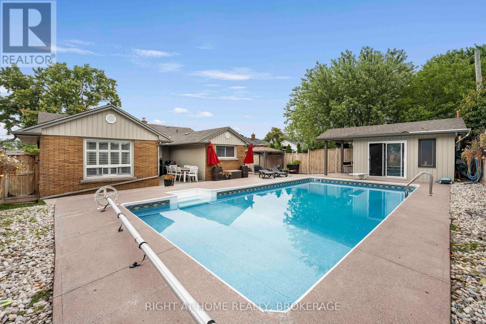 Welcome to this Stunning Oversized Bungalow with In-Law Suite & Backyard Oasis. This oversized bungalow offers over 3700 S/F total living space. 2,083 sq ft on the main floor, bsmt offers over 1700 s/f. making this the perfect home for a growing family, multi-generational family or rental opportunity. Professionally decorated and meticulously maintained, this home sits on a quiet street with a friendly mix of young families and seniors. The fully renovated main floor features 3 spacious bedrooms, 2 beautifully updated bathrooms, and a bright kitchen with a walk-in pantry that can easily be converted to a main floor laundry. Enjoy gatherings in the large great room with wet bar/kitchenette or the elegant dining room with fireplace. You'll find abundant closet space and quality finishes throughout, including real wood trim, crown moldings, and upgraded flooring. Extensive upgrades offer peace of mind and comfort: all exterior steel doors and interior doors replaced, new garage doors, upgraded electrical to 200-amp service, new sump pump, updated plumbing throughout, and a new ABS sewer line and copper water line from the city line (2018). Roof features 50-year shingles; soffits, fascia, and downspouts all replaced. Other upgrades include California shutters, all new windows, thick baseboards, and spray-foam insulated headers in the basement. The in-law suite was fully renovated 6 years ago. It has fire-rated steel doors, a separate entrance, and was previously rented for $1,350/month (2019) perfect for extended family or extra income. The beautifully landscaped yard boasts concrete work around the house and a backyard oasis featuring a inground pool, plus a 5-year-old pool house/man cave/shed with its own 40-amp panel. Pool supply/return lines redone. Enjoy the pool this summer. Close to Brock University, shopping, schools, and highway access. This home is waiting for its new owners. Immediate possession available. Great investment opportunity. Don't miss out. (id:43681)