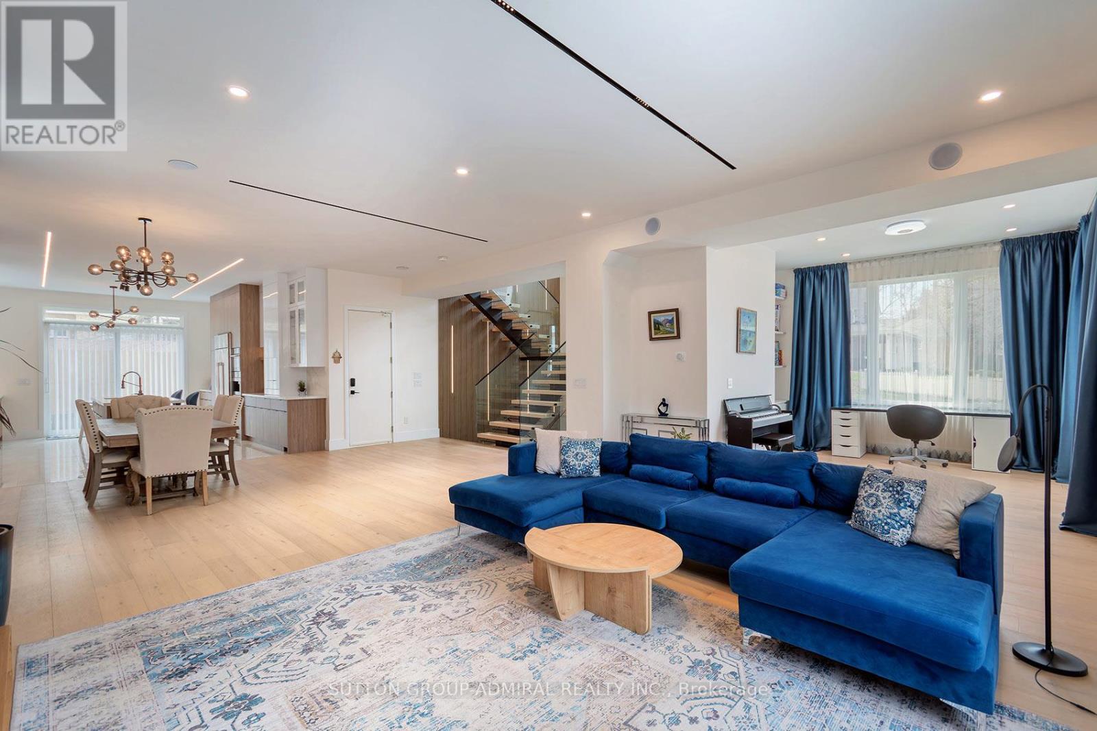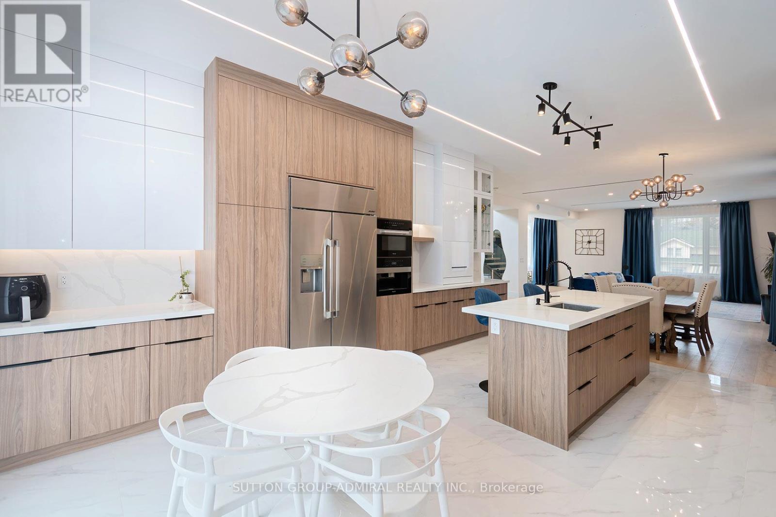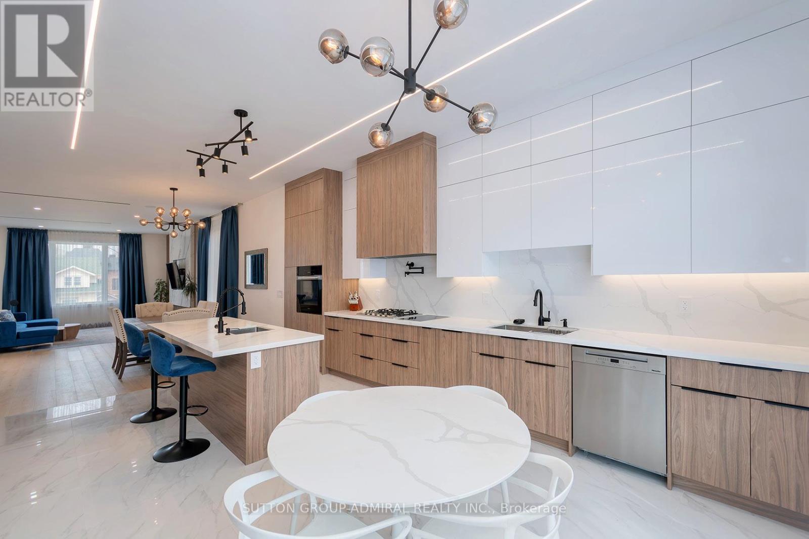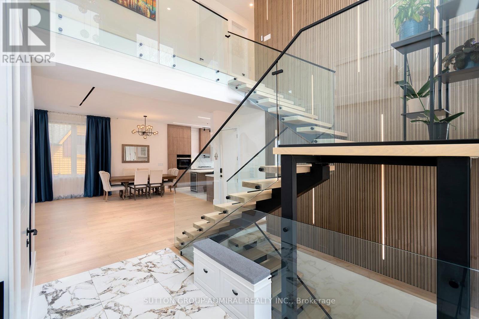 What a gem! Unparalleled luxury value in this custom-built home (2025), you won't find any whereelse in the area. Owner-built to satisfy every whim & last for generations, this 4-bedroom, 5washrooms, finished walk-out basement, 2-car garage beauty, offers ~4,800 sq ft of total ultra-luxury living space. A corner lot fronting on a quieter street w/ a wider driveway. Metal roof to last for ages & a shaded fenced side yard w/ interlocking & a BBQ-ready gas connection.10ft ceilings + 20ft foyer, XL windows + a breathtaking glass staircase w/ floating stairs + a modern chandelier. Ample natural lighting + an open concept to accommodate various furniture &generous hosting. A dream designer kitchen with an 8ft centre island w/ built-in wine fridge, Miele Built-in Appliances, Jen-Air Induction Stove, Dacor French-Door Fridge, Quartz Counters &solid-quartz backsplash. Primary bedroom with a 5-piece ensuite, walk-in closet & B/I closet. A Junior Prim. bedroom w/ ensuite, 2 bdrms w/ shared ensuite. Basement feels like a main level w/ a separate entrance, many windows, wall lighting & custom built-in ceiling lighting, built-in ceiling speakers for entertainment (1st floor & bsmt),hydronic heating floors in the whole basement (& in the hallway at the main entrance) a 3-piecebath, sauna, & in-law suite potential. Located at the heart of downtown, surrounded by walking distance: restaurants & shops, festivals, seasonal markets, culture, Southlake Hospital, Pickering College, library, schools &community. Enjoy Fairy Lake, Wesley Brooks Conservation & Tom Taylor Trail, perfect for walking, biking & unwinding. In the winter, Riverwalk Commons transforms into a charming outdoor skating rink, while warmer months bring patios & live music. This house blends refined, elevated living w/ everyday convenience, perfect for those with great taste who love to host &impress while living in a comfortable, thought-out luxury. (Deck photo is a render of a potential deck - not real). (id:43681)