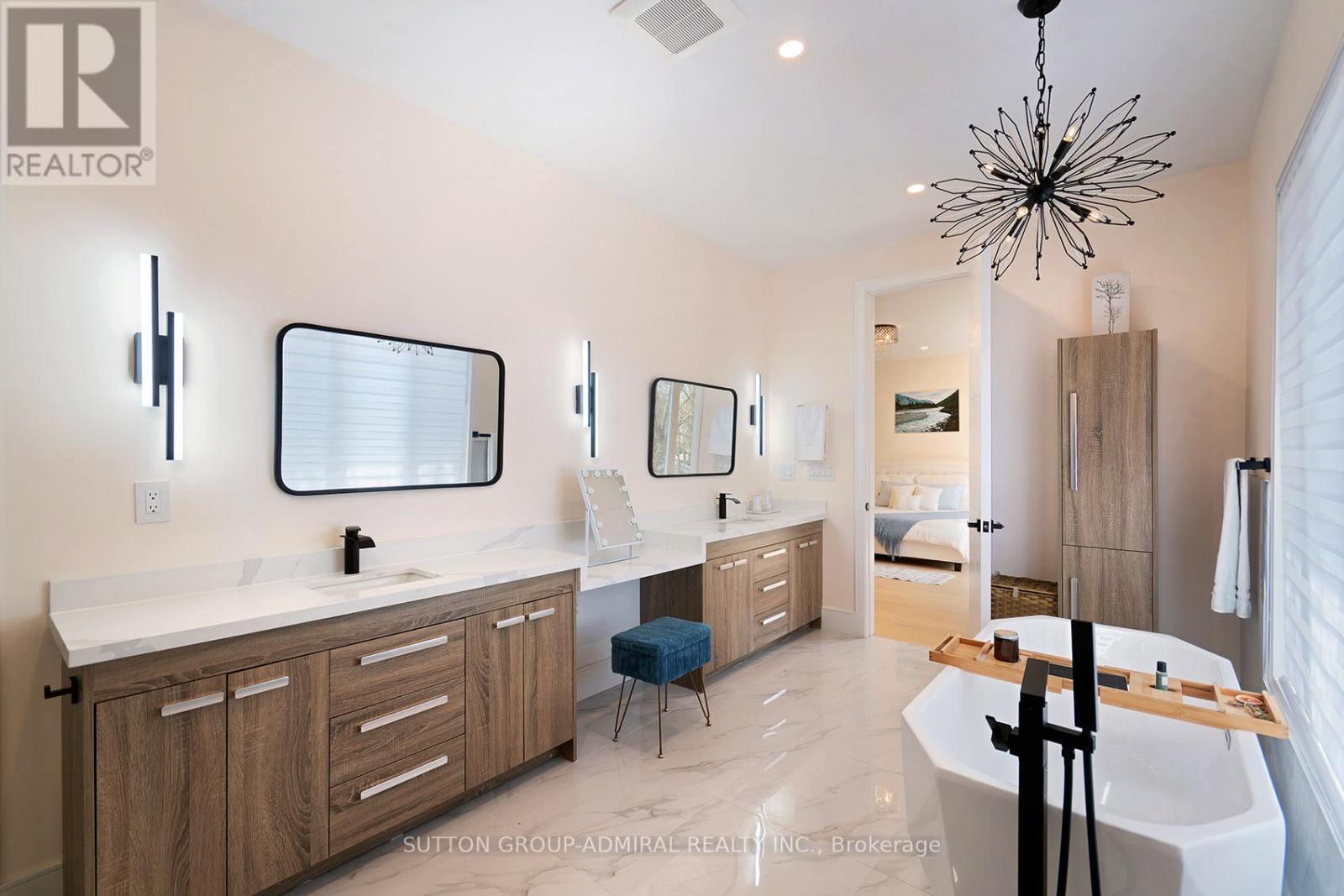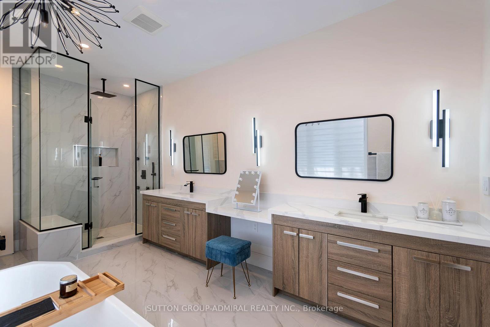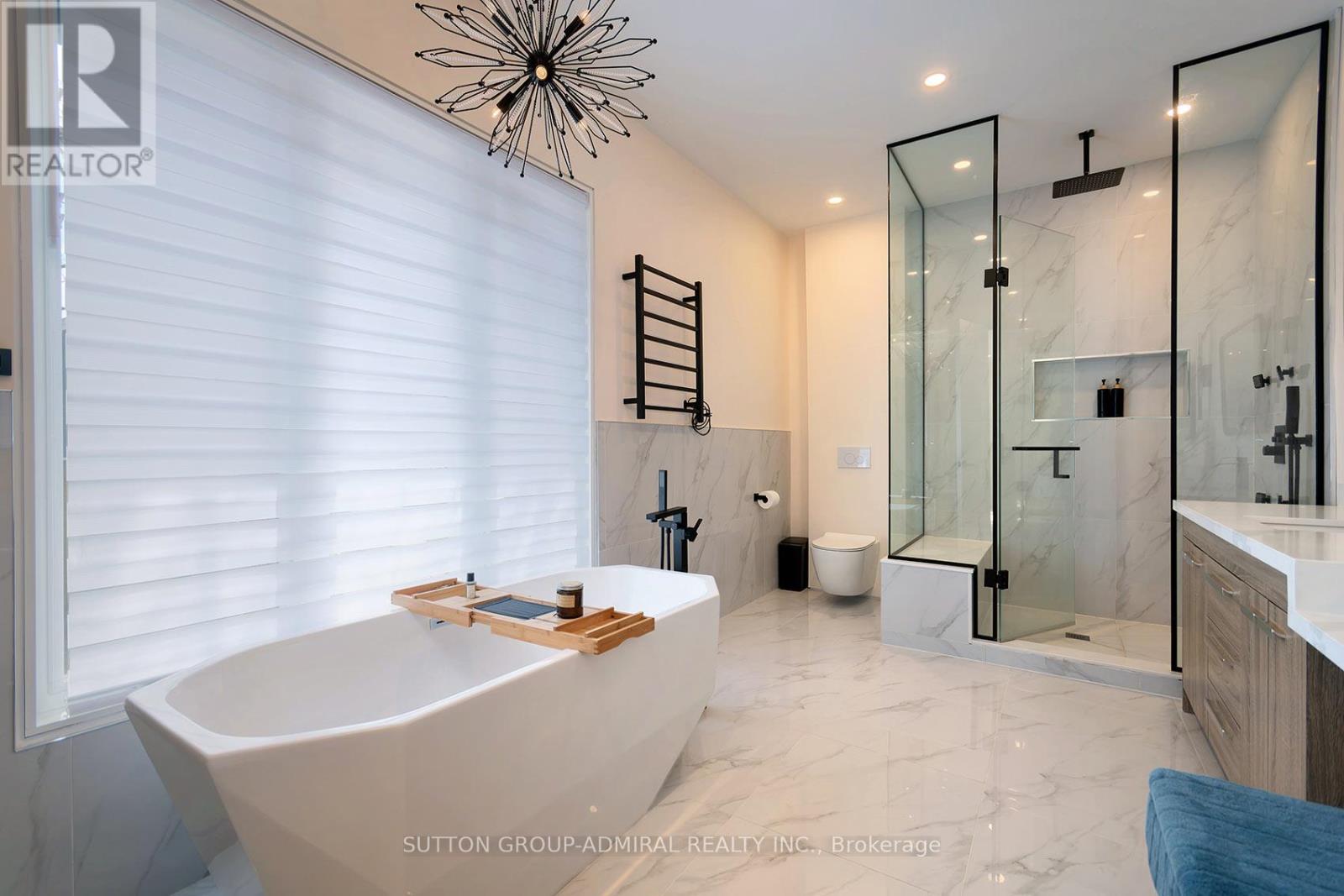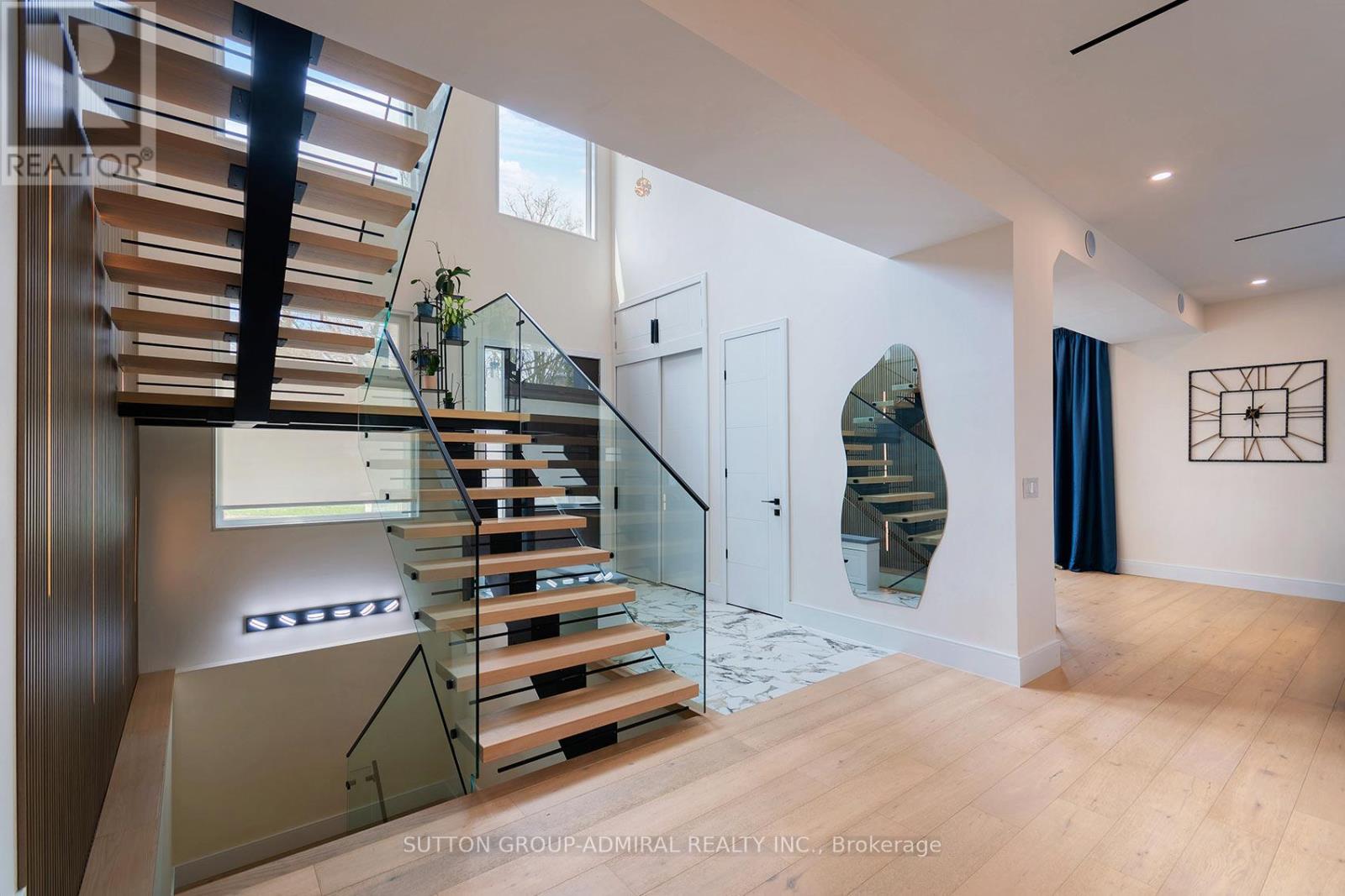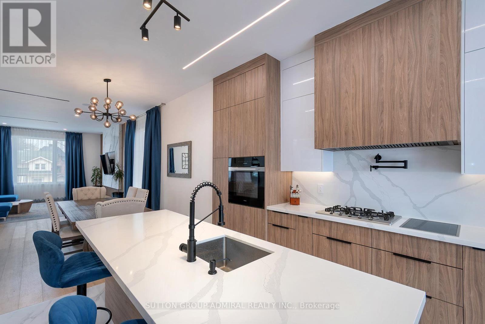 What a gem! Unparalleled luxury value in this custom-built home (2025), you won't find any whereelse in the area. Owner-built to satisfy every whim & last for generations, this 4-bedroom, 5washrooms, finished walk-out basement, 2-car garage beauty, offers ~4,800 sq ft of total ultra-luxury living space. A corner lot fronting on a quieter street w/ a wider driveway. Metal roof to last for ages & a shaded fenced side yard w/ interlocking & a BBQ-ready gas connection.10ft ceilings + 20ft foyer, XL windows + a breathtaking glass staircase w/ floating stairs + a modern chandelier. Ample natural lighting + an open concept to accommodate various furniture &generous hosting. A dream designer kitchen with an 8ft centre island w/ built-in wine fridge, Miele Built-in Appliances, Jen-Air Induction Stove, Dacor French-Door Fridge, Quartz Counters &solid-quartz backsplash. Primary bedroom with a 5-piece ensuite, walk-in closet & B/I closet. A Junior Prim. bedroom w/ ensuite, 2 bdrms w/ shared ensuite. Basement feels like a main level w/ a separate entrance, many windows, wall lighting & custom built-in ceiling lighting, built-in ceiling speakers for entertainment (1st floor & bsmt),hydronic heating floors in the whole basement (& in the hallway at the main entrance) a 3-piecebath, sauna, & in-law suite potential. Located at the heart of downtown, surrounded by walking distance: restaurants & shops, festivals, seasonal markets, culture, Southlake Hospital, Pickering College, library, schools &community. Enjoy Fairy Lake, Wesley Brooks Conservation & Tom Taylor Trail, perfect for walking, biking & unwinding. In the winter, Riverwalk Commons transforms into a charming outdoor skating rink, while warmer months bring patios & live music. This house blends refined, elevated living w/ everyday convenience, perfect for those with great taste who love to host &impress while living in a comfortable, thought-out luxury. (Deck photo is a render of a potential deck - not real). (id:43681)