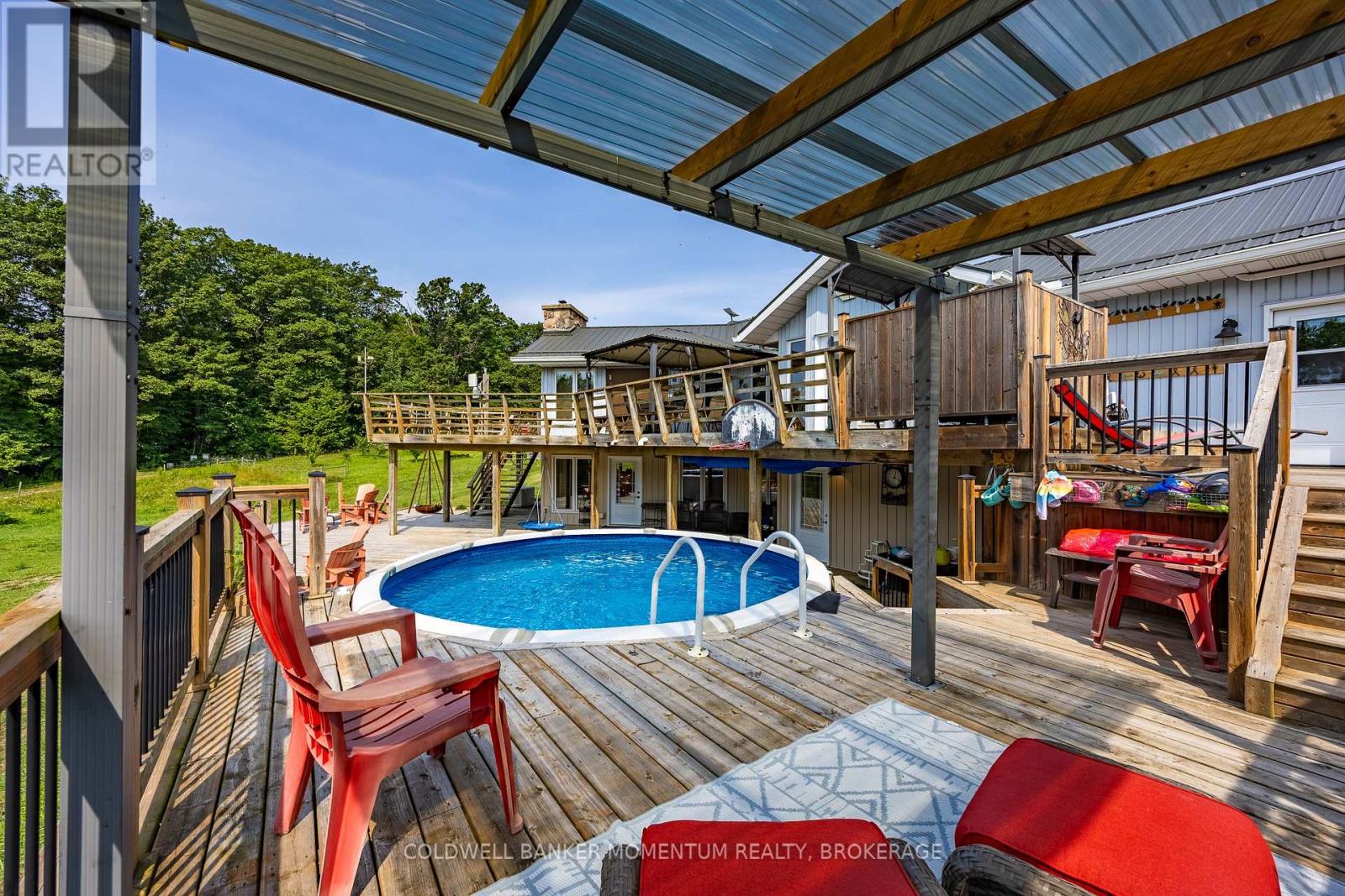 Discover the ultimate rural lifestyle on this rare 93-acre farm/equine retreat, thoughtfully designed for horse lovers, hobby farmers, or anyone seeking a peaceful and productive escape. Sustainability Meets Beauty This property is enrolled in an ALUS Canada tree planting program, with 3,500 trees different varieties planted in 2019. These trees must remain untouched for 15 years and generate an annual income of approximately $518-a smart blend of conservation and return. The Land has approximately 63 acres of worked farmland, (12 acres in hay) 4 acres of fenced pasture. Bush, Hard wood trees and pasture around the house . Plenty of space to grow, graze, and enjoy nature in every season. This spacious raised ranch features: 5 generous bedrooms & 4 bathrooms. Fully finished walk-out basement with separate entrance and a temperature-controlled wine cellar, 4 skylights that fill the home with natural light . Above-ground pool heated on the deck for summertime fun. Automatic whole-home backup generator for peace of mind. Furnace (2023) and water heater (2022)-updated for your comfort and efficiency. Equestrian & Agricultural Features , 65 x 120 indoor riding arena, , perfect for year-round riding, 28 x 80 barn with horse stalls and hay storage, , 40 x 60 equipment barn with room for all your gear. Septic has been pumped out in 2024. Ample space for trail rides , trailers, turnouts, paddocks, and more . All this, just a short drive to town amenities enjoy the serenity of country life without sacrificing convenience. Whether you're looking to grow your equestrian operation or simply enjoy the wide open spaces, this property offers the perfect blend of land, lifestyle, and long-term value. (id:43681)