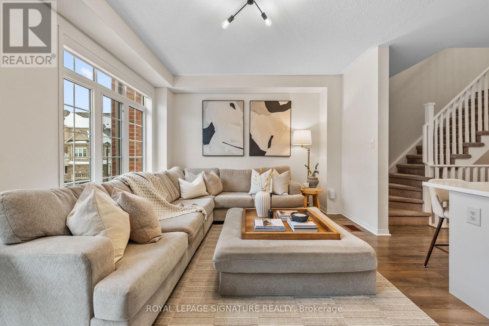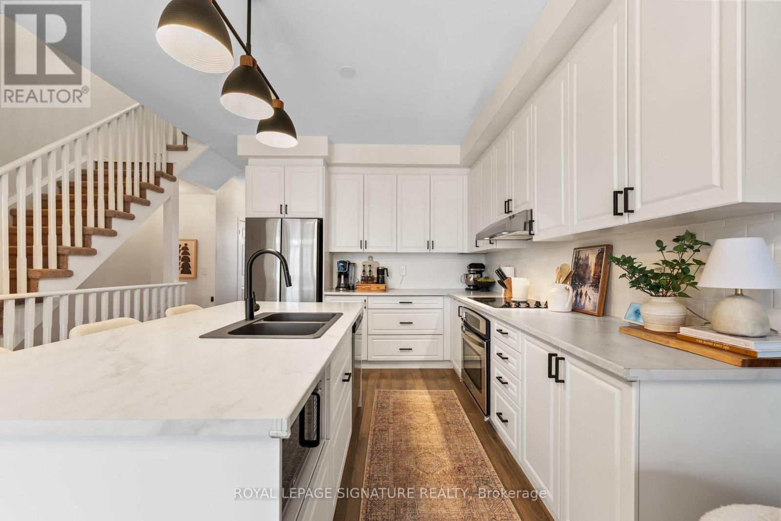 The most stylish and move-in-ready townhouse in Halton Hills, where thoughtful design meets effortless everyday living. Offering more than 1,700 square feet of finished space plus a full walk-out lower level, this home provides the versatility buyers want. The bright open-concept main level delivers an immediate sense of flow. Large windows fill the living and dining areas with natural light, while the walk-out balcony extends entertaining outdoors. At the center of the home, the kitchen features stainless steel appliances, generous cabinetry and a large island, offering excellent prep space for both daily routines and hosting. A main floor powder room adds convenience for guests. Upstairs, the primary bedroom retreat includes a walk-in closet and private four-piece ensuite. Two additional bedrooms each offer their own walk-in closets, a rare and valuable feature in townhome living, making the layout ideal for families, visitors, or work-from-home needs. The finished walk-out lower level adds exceptional flexibility, perfect for a recreation room, media space, office or guest suite. The updated laundry keeps the upper floors peaceful and organized. Two parking spaces and a location close to shopping, schools, parks, and commuter routes complete the package. For buyers seeking a turn-key townhouse in Halton Hills with modern finishes, parking, and room to grow, this home delivers on all levels. (id:43681)