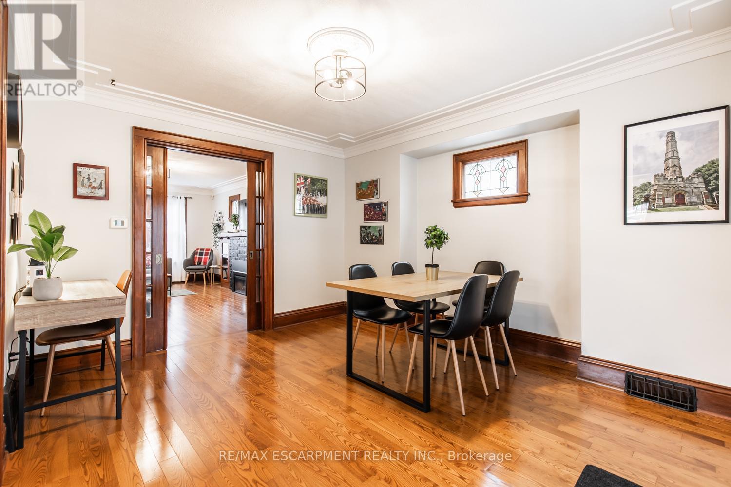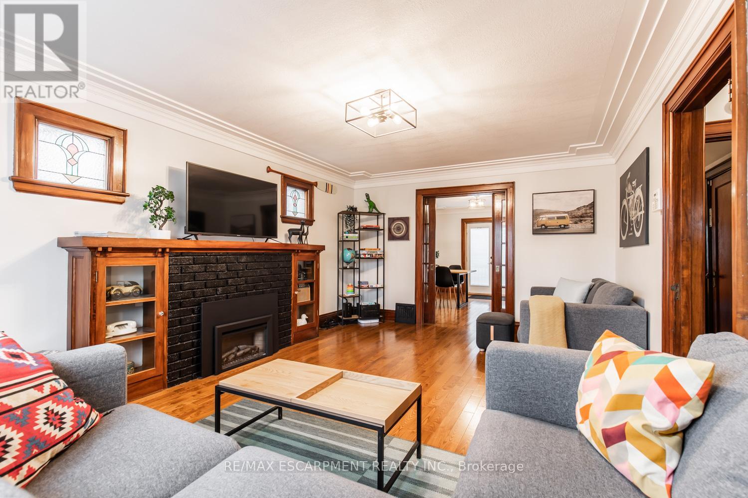 Charming 3-Bed, 2-Bath Stoney Creek Home with In-Law Suite! This bright and open main floor boasts a cozy living room with a fireplace, a kitchen featuring stainless steel appliances, and a spacious dining room with double doors leading to the back deck. Upstairs offers three generously sized bedrooms, a large 4-piece bathroom with laundry, and access to a quaint private balcony. A separate walk-out basement entrance leads to the in-law suite, complete with its own living area, bedroom, kitchen, and washer/dryer. Situated on a large 45 x 239.50 ft lot with a private deck, shed, and a detached garage! This home is close to Battlefield Park, downtown Stoney Creek, parks, shops, great schools, and offers easy highway access. (id:43681)