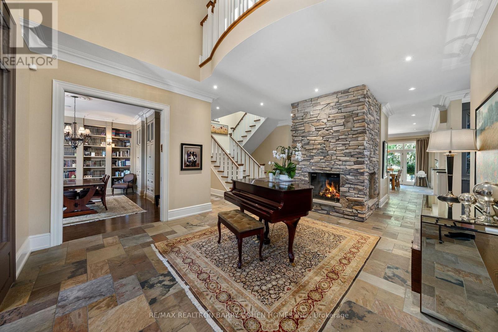 Grandeur On Parr Place Thornhills Only Entry Gated Community Located Amongst Like Mansions. Custom Built Design By David Small. This Craftsman-Inspired Masterpiece Boasts Over 9,700 Sq. Ft. Of Exquisitely Designed Living Space, Surrounded By Mature Trees In A Tranquil, Resort-Like Setting. Step Inside To Soaring Ceilings, Rich Oak Hardwood Floors, Slate Tile, Integrated Sound, Detailed Crown Moulding, Custom Stained Glass, And Anderson Windows Throughout. The Main Floor Centers Around A Grand Two-Sided Stone Fireplace, Connecting Elegant Principal Rooms With A Warm, Timeless Ambiance. Gourmet Chefs Will Love The Designer Kitchen With Centre Island, Breakfast Area With Views Of The Manicured Rear Gardens, And Seamless Indoor-Outdoor Flow. A Dedicated Utility Corridor Offers Garage Access, Laundry, And A Private Staircase To Upper And Lower Levels. Retreat To The Luxurious Primary Suite Featuring Vaulted Ceilings, Gas Fireplace, Double-Door Entry, A Custom Walk-In Closet, And An Opulent 9-Pc Ensuite. Versatile Upper Level Offers Primary Suite With Magnificent Boudoir Or 6 Spacious Bedrooms, Each With Private Or Semi-Private Ensuites, Ideal For Large Families Or Hosting Guests In Comfort And Style. The Fully Finished Lower Level Is Built To Entertain With A Second Kitchen, Oversized Rec Room With Fireplace, Wet Bar, Games Room, Gym, Bedroom, 2 Bathrooms & Cold Storage. The Private Backyard Oasis Is An Entertainers Dream With Multiple Pergolas, Covered Patio, Sport Court, Saltwater Pool, And A Fully Fenced Dog Run. Prime Location With Easy Access To 407, Yonge St, Top-Rated Public & Private Schools, Parks, And Shopping. This One-Of-A-Kind Estate Checks Every Box Luxury, Location, And Lifestyle. (id:43681)