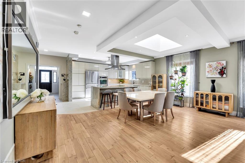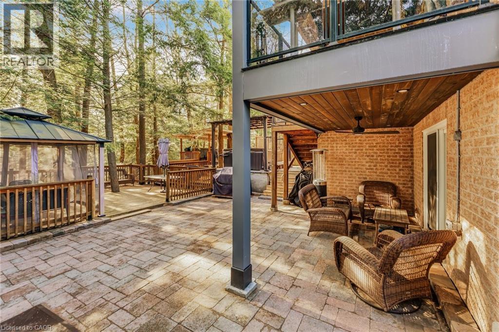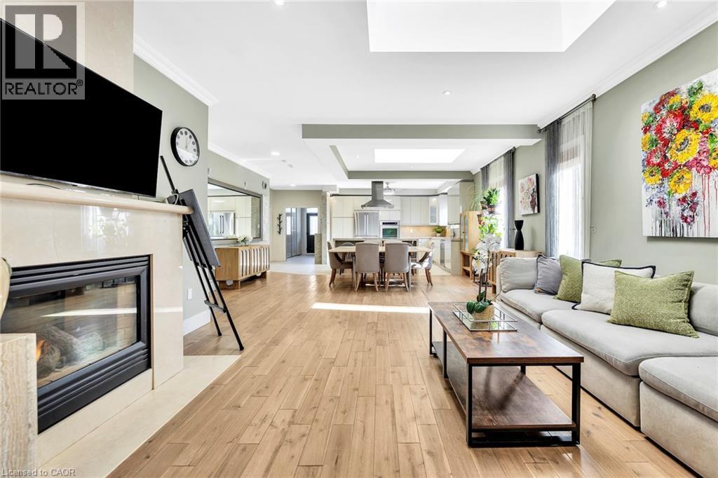 Tucked away on an exclusive private street shared by only three homes, 600 Henderson Drive offers a rare sense of seclusion and tranquility surrounded by mature trees and ravine views while still being centrally located in the highly sought-after Aurora Highlands. This extensively renovated 3+1 bedroom, 4 bathroom home is a must see. The main level showcases a stunning chef's kitchen with granite countertops, backsplash, and an impressive 88 x 38 waterfall island, complemented by stainless steel appliances. Engineered hardwood flooring, pot lights, skylights and sun tunnels fill the home with natural light, while a striking two-sided Crema Marfil marble gas fireplace anchors the living space. Walk out from both the living room and primary bedroom to a fully upgraded balcony featuring new flooring, glass railings, wood ceilings, pot lights, and a ceiling fan, all overlooking a private ravine setting. The spa-inspired primary ensuite features travertine tile throughout and a quartz countertop vanity. The fully finished lower level offers a second kitchen with granite counters and stainless steel appliances, a full bath with stand-up shower, a dry sauna accommodating 5-7 people, and a walk-out to an interlock patio. Enjoy your own backyard oasis with landscaped grounds, multiple decks, gas line for BBQ, Hot tub, and serene ravine views. Ideally located close to top-rated schools, trails, shopping, and more. A true showstopper not to be missed. (id:43681)