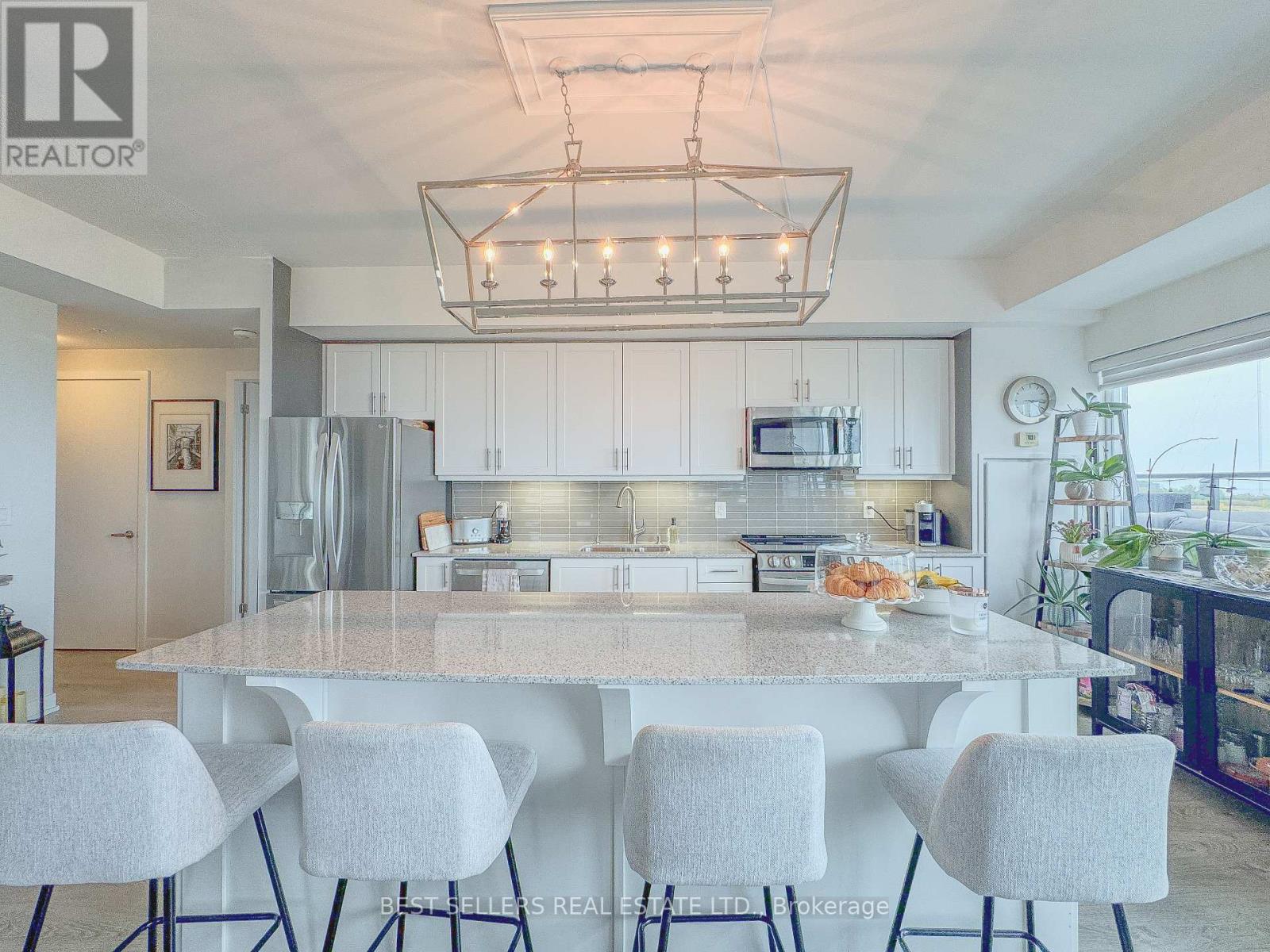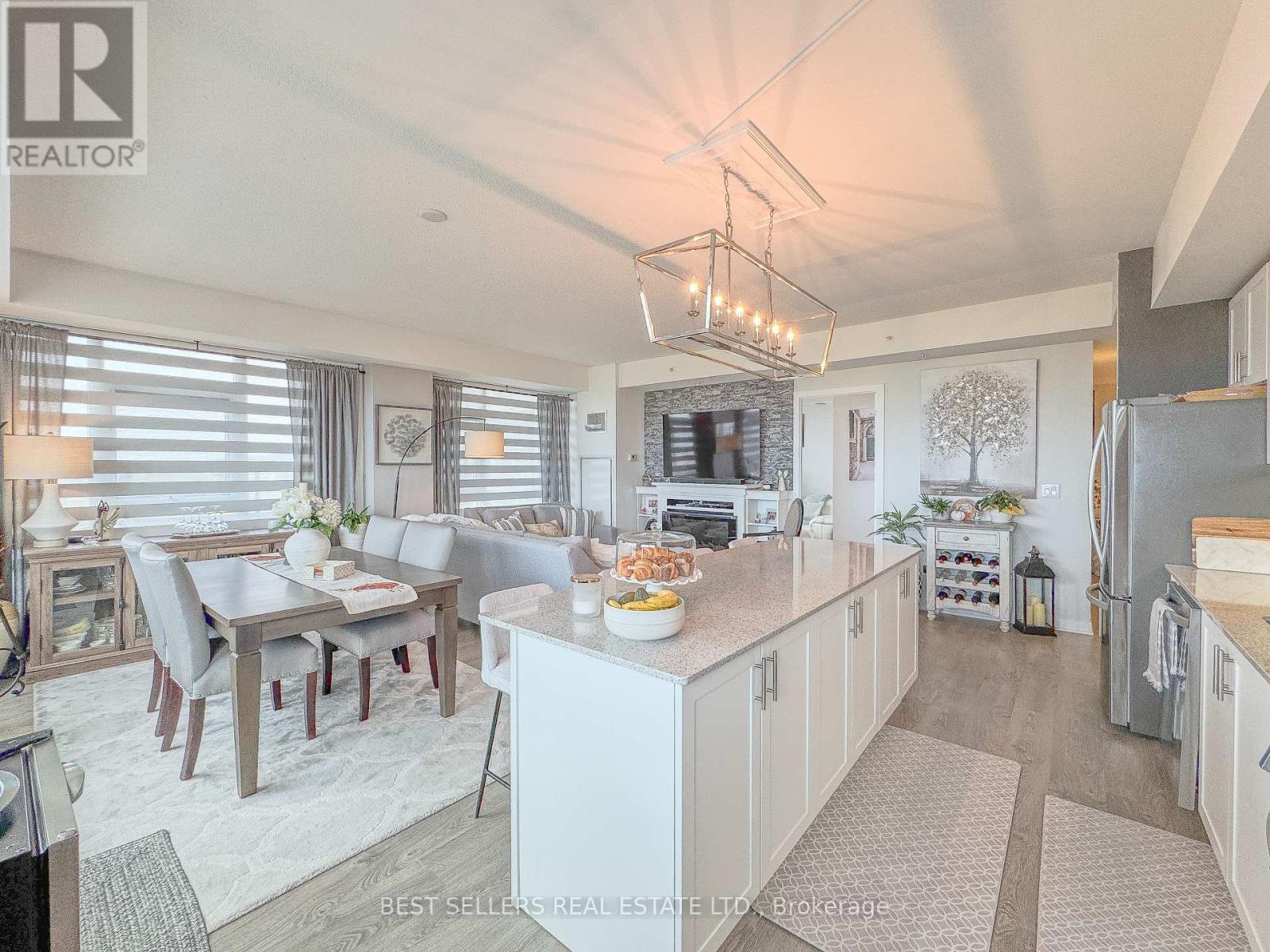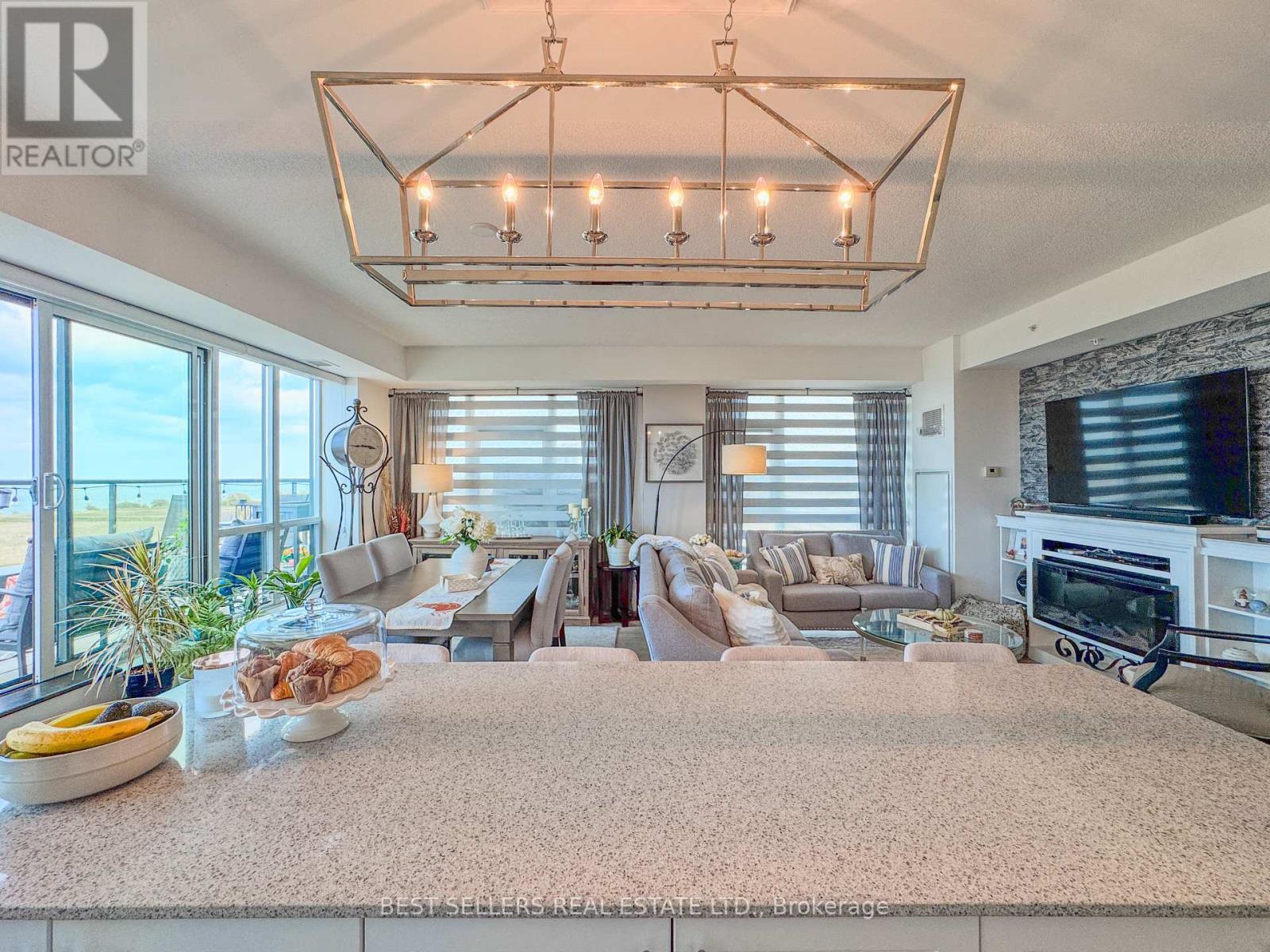 $971 每月Welcome to waterfront living in Grimsby Beach! With over 1100 square feet of living space this stunning 2-bedroom, 2-bathroom condo offers unparalleled waterfront views and the Toronto skyline from every room. Step inside and be greeted by designer painted interiors and gorgeous laminate floors throughout. The huge chef's kitchen features a large breakfast island perfect for cooking, entertaining, or casual dining. The formal dining room offers plenty of space for gatherings and opens to a spectacular 413 sq. ft. wraparound terrace, where you can relax and enjoy breathtaking sunsets. Spacious living room boasts a cozy fireplace, creating the perfect ambiance year-round. The primary suite includes a walk-in closet and a private 4-piece ensuite bath, while the second bedroom and full bathroom provide comfort and convenience for guests or family. This unit comes with 2 side-by-side parking spots and 1 locker, ensuring both ease and storage. Building amenities include: Rooftop landscaped courtyard oasis with BBQs & private lounging areas, 24-hour concierge & security, private meeting rooms, party room with full kitchen, billiards & exercise rooms. Constructed with solid concrete design, this building offers superior soundproofing and a truly serene living environment. Don't miss the opportunity to call this waterfront retreat home close to all amenities such as: HWY access, shopping, walking trails, restaurants, grocery stores, waterfront, Costco, and Grimsby Beach! (id:43681)