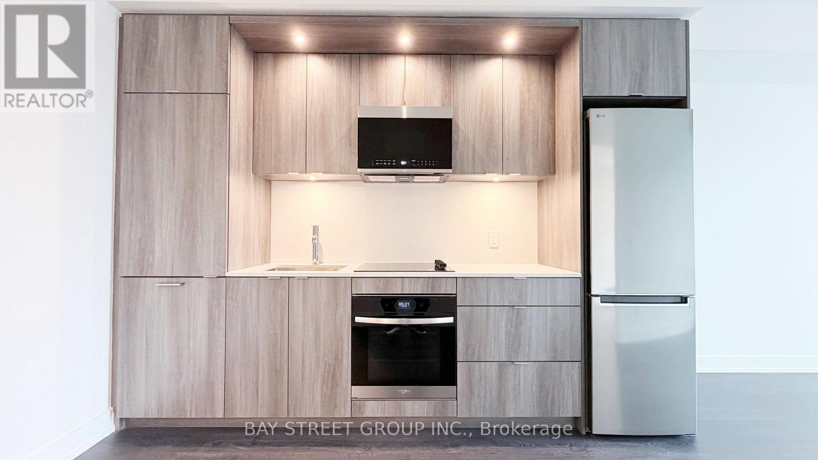 Welcome to The Westerly 2 by award winning builder - Tridel, a brand new luxury residence in the heart of Islington-City Centre West! 1 parking included! This bright suite features 521 sq. ft. of well-planned interior space with clean contemporary finishes and an open-concept layout suited to comfortable everyday living. The kitchen is equipped with full-height cabinetry, integrated stainless steel appliances, quartz countertops, and under-cabinet lighting. It flows seamlessly into the combined living and dining area, where wide-plank flooring and large windows create a welcoming, light-filled atmosphere. A walk-out from the living room extends your living space outdoors onto a private balcony. The bedroom includes a full-height window and ample closet space. The modern 4-piece bathroom features contemporary tilework and a sleek vanity. This suite also offers in-suite laundry, premium appliances, and high-end finishes that reflect Tridel's signature craftsmanship. Residents enjoy access to a full range of luxury amenities, including a 24-hour concierge, state-of-the-art fitness centre, party rooms, guest suites, and more. Ideally located, Just steps from Islington Subway Station, Bloor West shops, restaurants, and major commuter routes, offering the perfect blend of urban convenience and upscale living. High speed internet included for the first year. (id:43681)