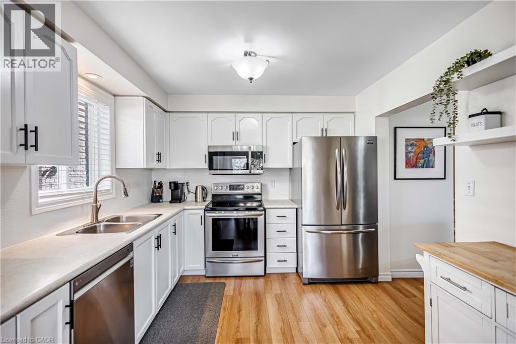 Welcome to this charming two-storey home tucked away on a quiet court in a desirable Ancaster neighbourhood. Over 2000 sq ft of finished living space this home offers 3 bedrooms and 2.5 bathrooms, this incredibly well-maintained property provides the perfect blend of comfort. space, and convenience for families and professionals alike. The open-concept main floor features updated flooring and has been freshly painted, creating a bright and inviting atmosphere throughout the kitchen, dining, and family room areas-ideal for everyday living and entertaining. A large pantry on the main level offers excellent storage and includes rough-ins for exhaust and water presenting a great opportunity for a future main floor laundry setup. New smart carbon monoxide/ smoke detectors on each level. Upstairs, you'll find an oversized primary bedroom with a private ensuite, along with two additional generously sized bedrooms, offering plenty of space for family, guests, or a home office. The finished basement adds valuable living space and features a cozy fireplace, making it perfect for entertaining, relaxing, or setting up a hobbyist workspace. Additional highlights include a garage with inside entry and a large backyard with a grass area, providing plenty of room for outdoor enjoyment. Ideally located within walking distance to parks and schools, and offering easy highway access, this home is also just minutes from grocery stores, restaurants, shopping, and everyday amenities. A wonderful opportunity to live in a sought-after Ancaster community - don't miss your chance to call 614 Kendrick Court home. Act fast! (id:43681)