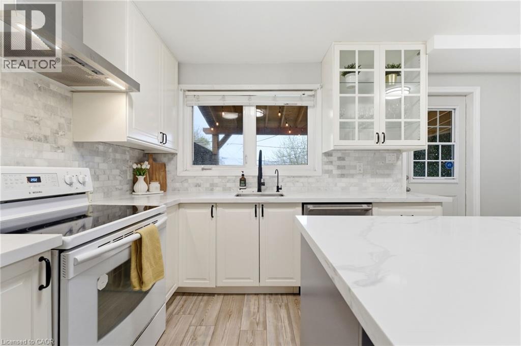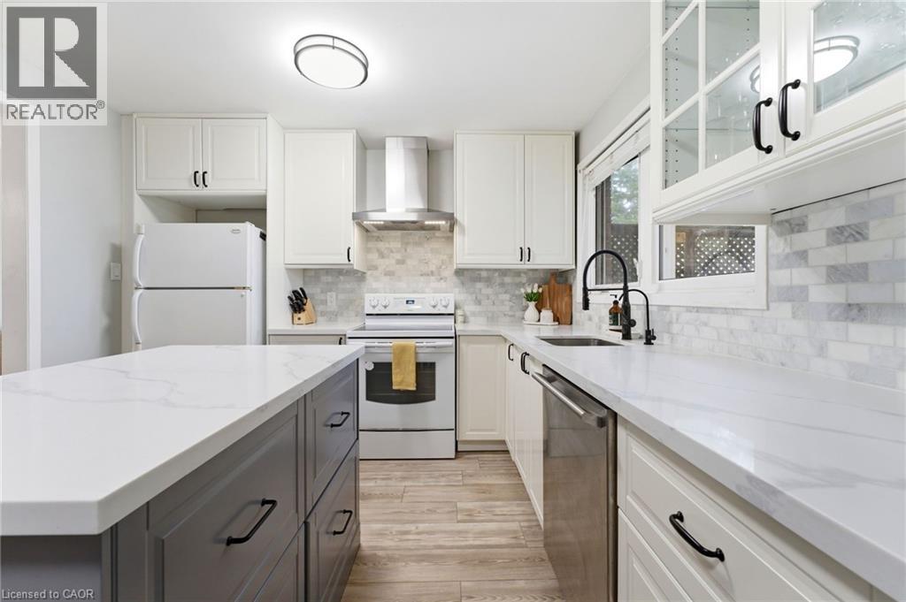 Welcome to this beautifully updated semi-detached home in one of Preston's most sought-after neighbourhoods, where peaceful tree-lined streets and friendly neighbours create the ideal setting for your next chapter. Offering 2 bedrooms, 2 bathrooms, and a finished basement, this meticulously maintained property has been thoughtfully upgraded throughout, featuring a complete kitchen renovation (2021) with modern finishes, a fully renovated main bathroom (2021), refreshed half bath (2026), new second-floor flooring (2021), new basement flooring (2026), and fresh paint throughout. Central air (2020) keeps things comfortable year-round. Step outside and discover your private retreat. A large fenced backyard with a deck beneath the custom wood awning (2022), where you can enjoy those quiet summer evenings. The location truly delivers, with Dunbar Road Conservation Area just moments away for hiking and nature lovers, convenient access to shopping, restaurants, and everyday amenities, plus easy proximity to Highway 401 for commuters. This is more than a house, it's the lifestyle you've been searching for. Do not miss it. Book a showing today! (id:43681)