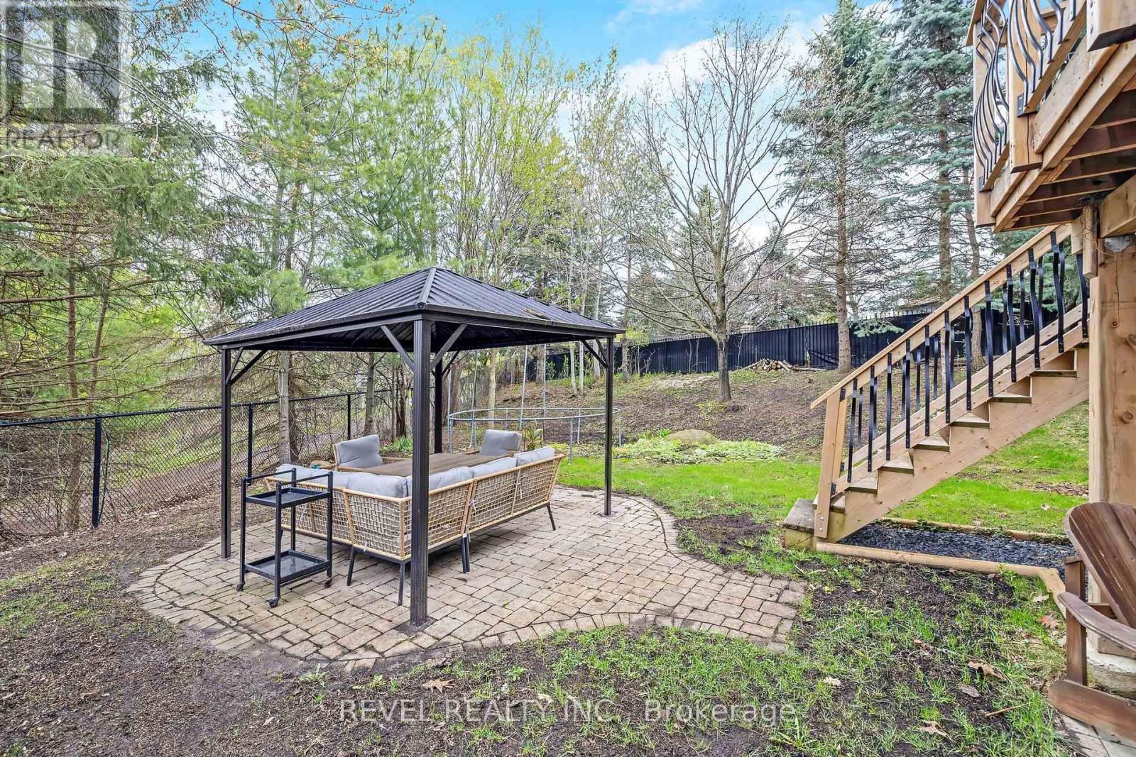 Welcome to Stewart's Mill - Family Living at Its Finest - Located in one of Georgetown's most sought-after communities, this beautiful stone and brick four-bedroom home sits on a premium oversized pie-shaped lot backing onto ravine, pond, green space, and trails, with McNally Park just steps away and no rear neighbours. Privacy like this is rare.The backyard is the star of the show. Mature trees, a gorgeous gazebo, and those pond views create an outdoor retreat you'll never want to leave.Inside, the layout is bright and functional with great flow for everyday living and entertaining. Hardwood and ceramic flooring, crown moulding, upgraded baseboards, and a stunning circular hardwood staircase give the home an elevated, polished feel throughout.Four generous bedrooms upstairs, including a primary suite with those peaceful backyard views. The finished walkout basement adds flexibility for recreation, guests, or extended family, with direct backyard access.Stamped concrete double driveway. Exceptional setting. A truly turnkey home in a location that doesn't come available often. (id:43681)