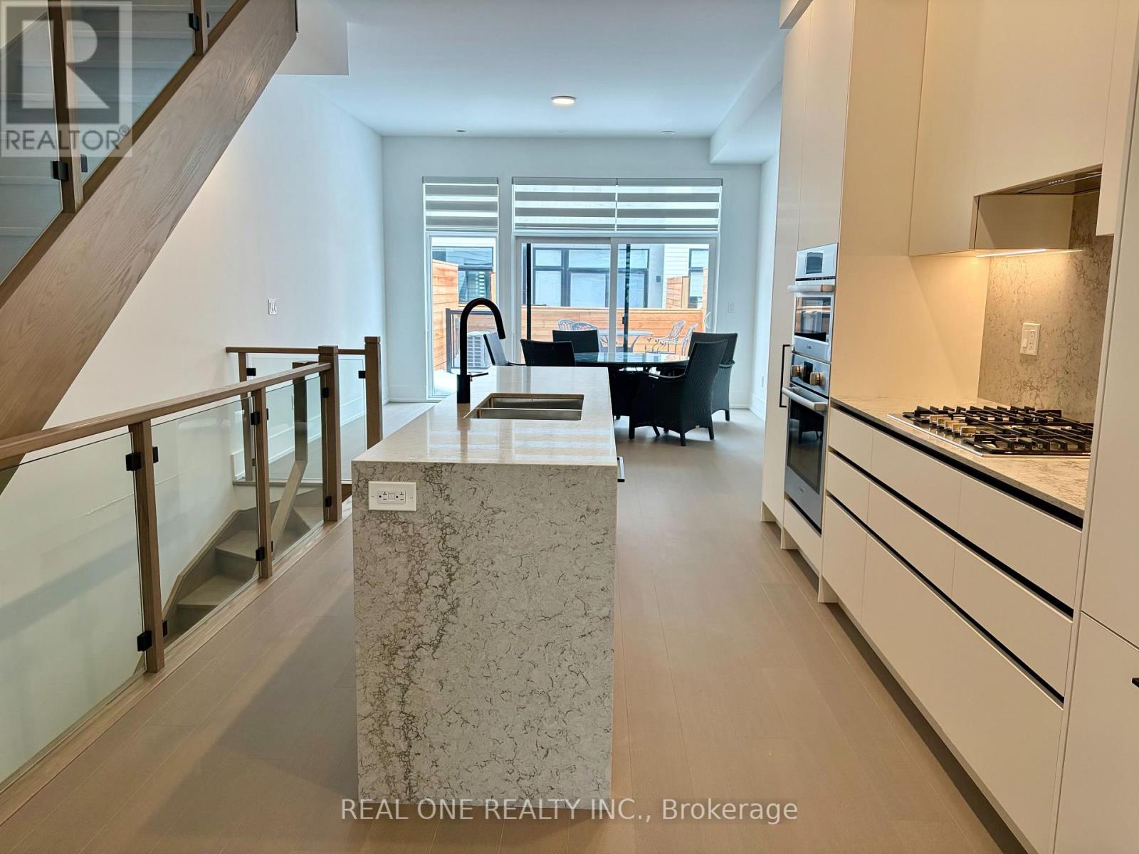 Lakeside luxury in this brand-new, never-lived-in 3-bedroom + den townhome in the heart of Port Credit. Step into a welcoming foyer with a convenient closet and powder room. The bright dining area flows seamlessly into a sleek, modern kitchen with quartz countertops, a waterfall-edge island, and high-end Bosch appliances, including a 5-burner gas cooktop, built-in oven and microwave, integrated fridge, and dishwasher. The kitchen is further enhanced with a stainless-steel double sink with a matte black faucet, soft-close cabinetry, and many storages. The spacious living room opens onto a private terrace-perfect for entertaining. Upstairs, two generously sized bedrooms each offer their own ensuite bathrooms and large closets, while the primary suite bathroom with a freestanding tub, glass-enclosed tiled shower, and dual-sink vanity. The third floor offers a open space ideal for a home office or fitness area, leading to a private rooftop deck. This level also includes a third bedroom and a full bathroom, providing additional comfort and flexibility. It comes with a tandem garage and an extra outside covered pad to accommodate 3 cars total. This exceptional home is finished with premium features and thoughtful upgrades, including wide-plank hardwood floors, 10-foot ceilings, and oversized windows that fill the space with natural light. This home offers convenience and easy access to local shopping, including Farm Boy, LCBO, Rexall, Loblaws and more. Seize the opportunity and move in today! (id:43681)