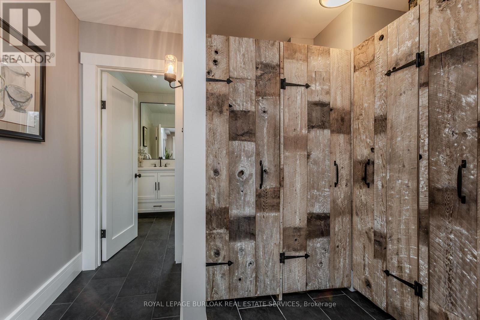 Discover the perfect blend of rural charm and refined luxury on an exceptional property that offers the tranquility of country living while remaining just mins from Burlington's everyday amenities, schools, shopping, and hwys. Set behind automated wrought iron gates is one of the most historic homes in the area originally from 1865. Inside, rustic character meets modern comfort. A welcoming foyer with heated floors sets the tone, while beautiful 1865 wood floors (2020), 8" baseboards, and designer lighting add warmth throughout. The heart of the home is the kitchen featuring concrete countertops, custom cabinetry, SS appliances, wood beam accents, tile backsplash, and a breakfast bar, seamlessly connecting to a bright breakfast area with a bay window. Multiple gathering spaces offer flexibility for living and entertaining, including a family room with stone-surround fireplace, formal dining room, and a living room with wood paneling, French doors, and a bay window. A main-floor bedroom and beautifully renovated 3pc bath with heated floors and glass shower provide ideal space for guests or multigenerational living. Upstairs, the expansive primary retreat impresses with vaulted 12' ceilings, automated blinds, private balcony, and a custom California Closets walk-in. The spa-inspired ensuite features a freestanding tub, and glass walk-in shower. 2 additional spacious bedrooms and a stylish 4pc bath complete the level. The heated garage is a dream entertainment space, and offers polished concrete floors, automated blinds, and an EV charger rough-in. The partially renovated lower level provides excellent storage, laundry with new machines, a workbench, and walkout cellar doors. Outdoors, the fully fenced backyard is a true private retreat with a professionally landscaped stone patio, flagstone pathways, inground pool, hot tub, fire pit, and large shed-perfect for family gatherings, summer entertaining, and peaceful evenings under the stars. (id:43681)