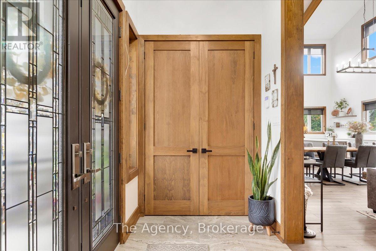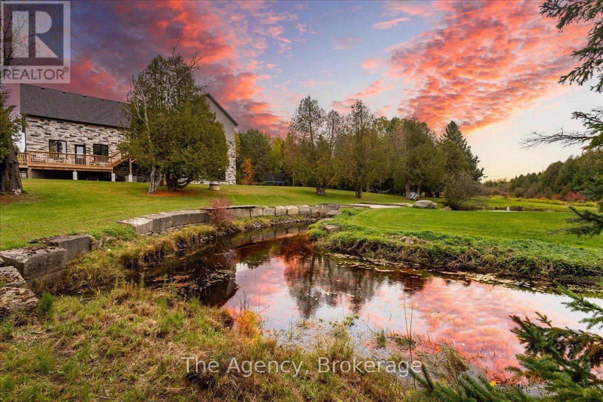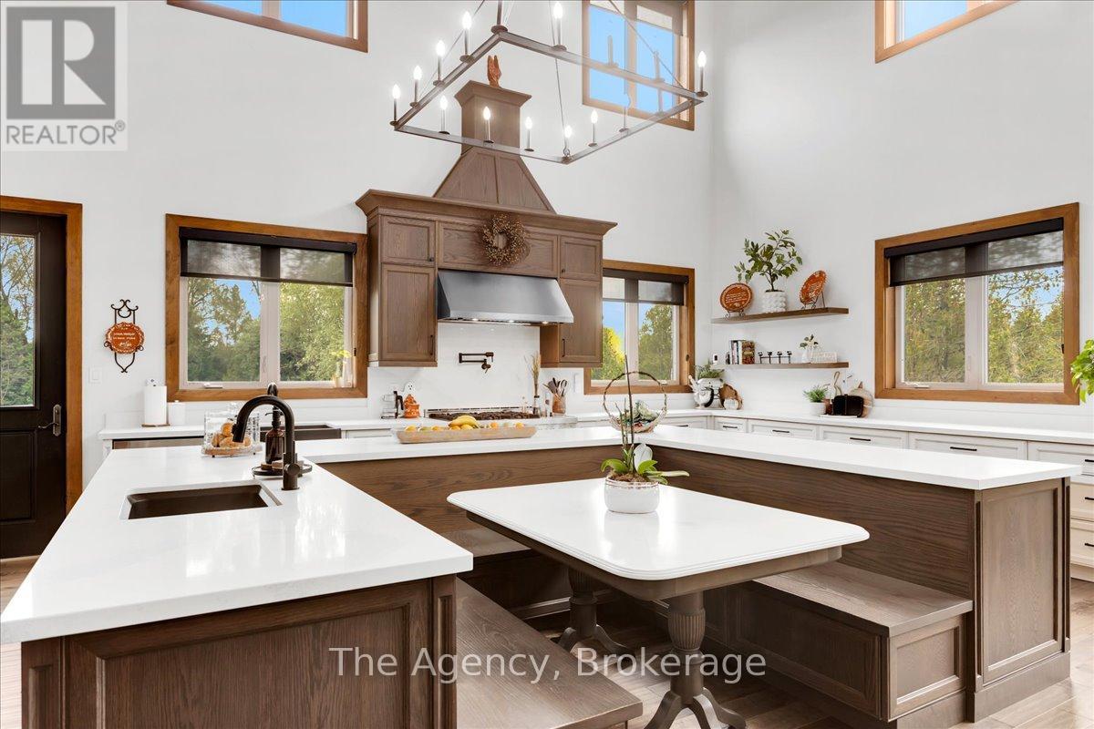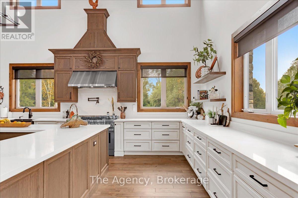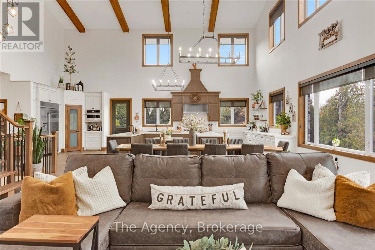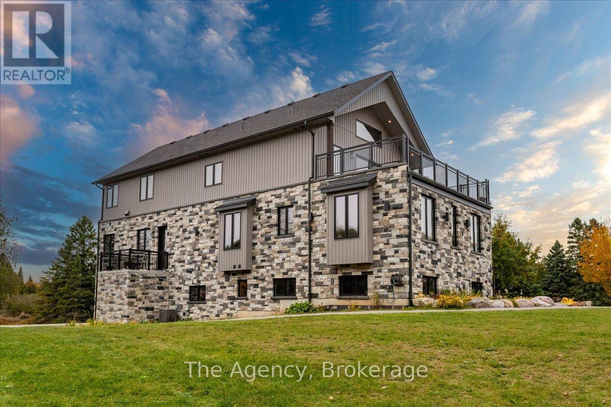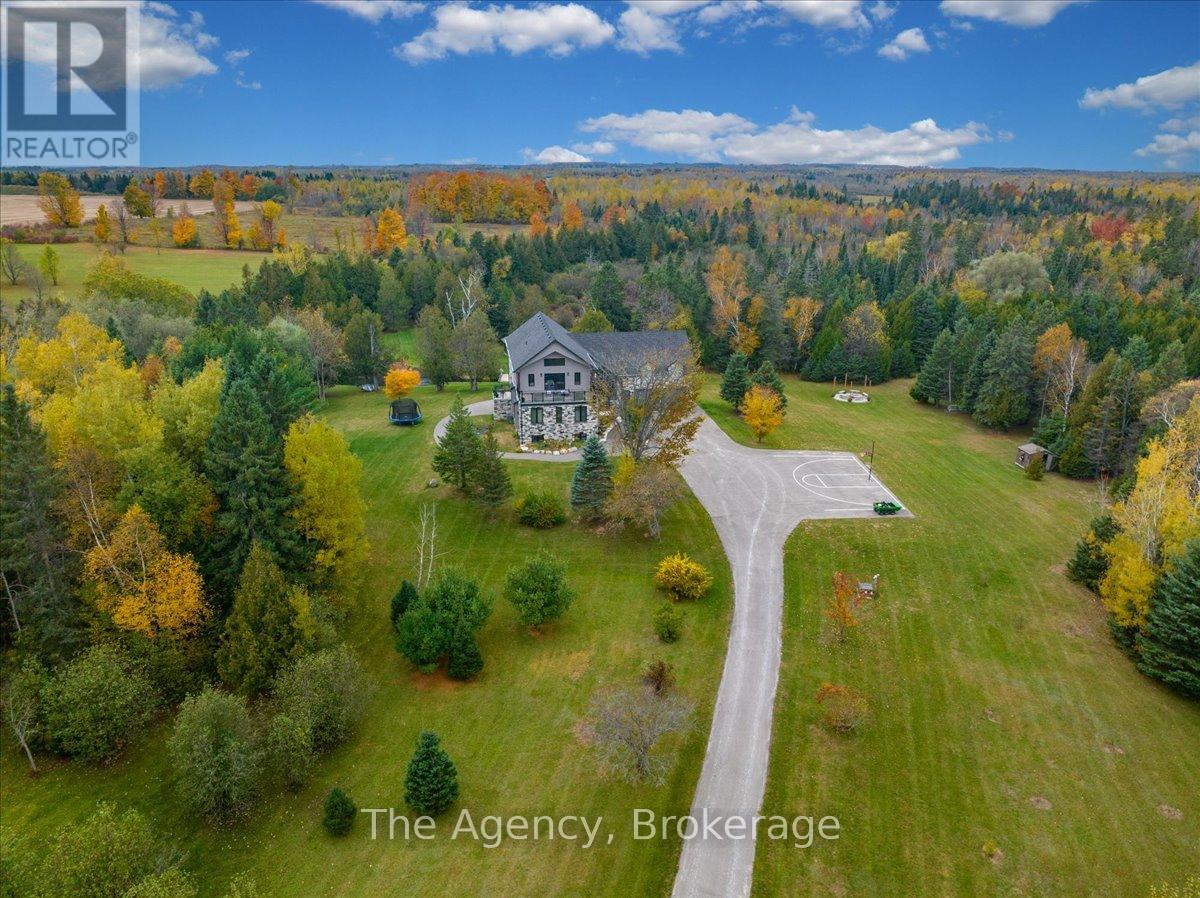 Escape the city and discover a rare offering of refined country living on 49.25 acres of picturesque land featuring streams, ponds, trails, and exceptional natural beauty. This custom-built 5+1 bedroom luxury estate blends modern living with the tranquility of nature, creating a lifestyle defined by privacy, space, and sophistication. Built in 2020 and set over 700 ft from the road down a long winding driveway, the property offers complete seclusion while still providing convenient access to a main road. With over 5,800 sq ft of finished living space, this home is ideal for large or multi-generational families and offers exceptional flexibility, including potential for 3 units. The lower level currently features 1 in-law suite, plus a rough-in for a second kitchen, creating potential for a second suite. With a total of 3 laundry areas throughout the home, the layout is well-suited for multi-generational living or income potential. The main level showcases soaring vaulted ceilings and expansive principal rooms designed for both comfort and entertaining. A bright great room flows into the designer kitchen, the heart of the home, featuring a statement banquette-style island, 48" gas range, 48" refrigerator, beverage fridge, and built-in pantry. Rich hardwood flooring and custom wood trim run throughout, and each bedroom includes a walk-in closet and private ensuite. Main floor laundry adds everyday convenience. The second-floor primary retreat offers vaulted ceilings and direct access to a large private patio overlooking the estate, creating a peaceful and private sanctuary. Outside, enjoy your own private park with scenic trails, flowing streams, and tranquil ponds. Additional highlights include a full gym, Generac generator, EV charger, and new underground 400-amp service (200 amp to the home and 200 amp available for a future outbuilding). Approval is in place for a detached shop, adding further value and versatility to this exceptional country estate (id:43681)
