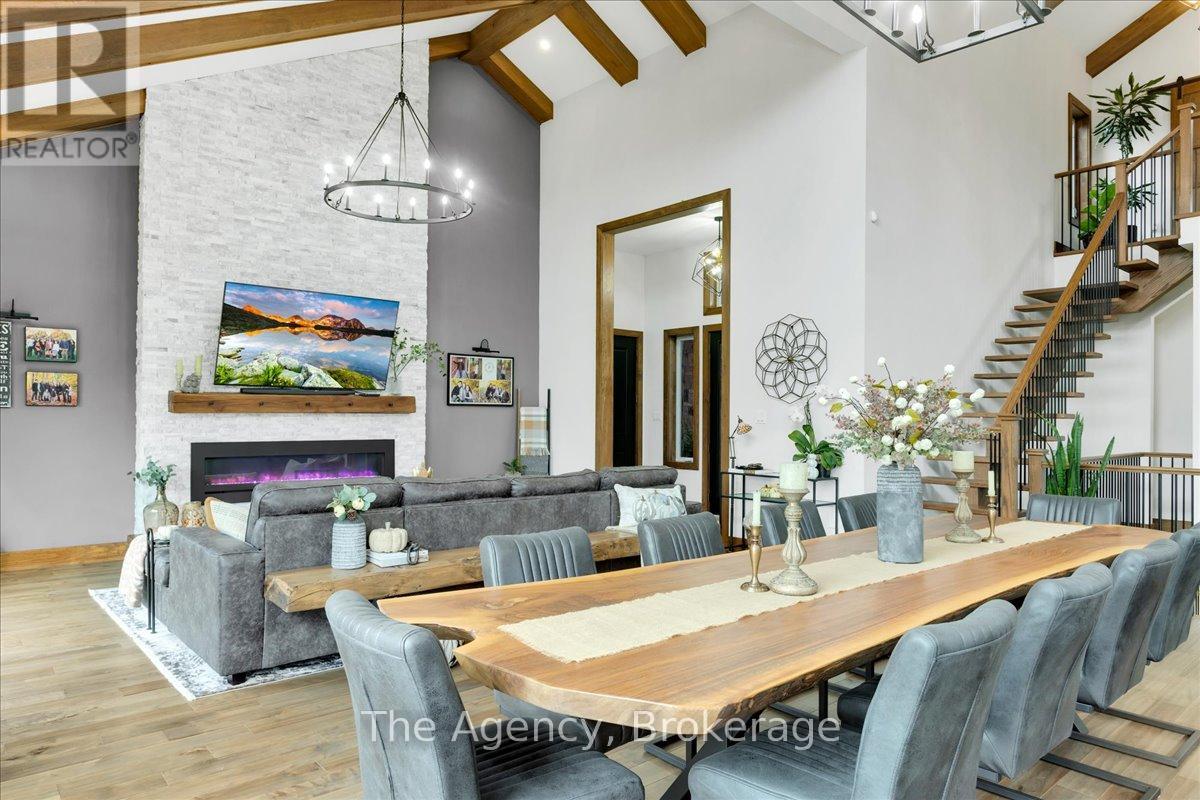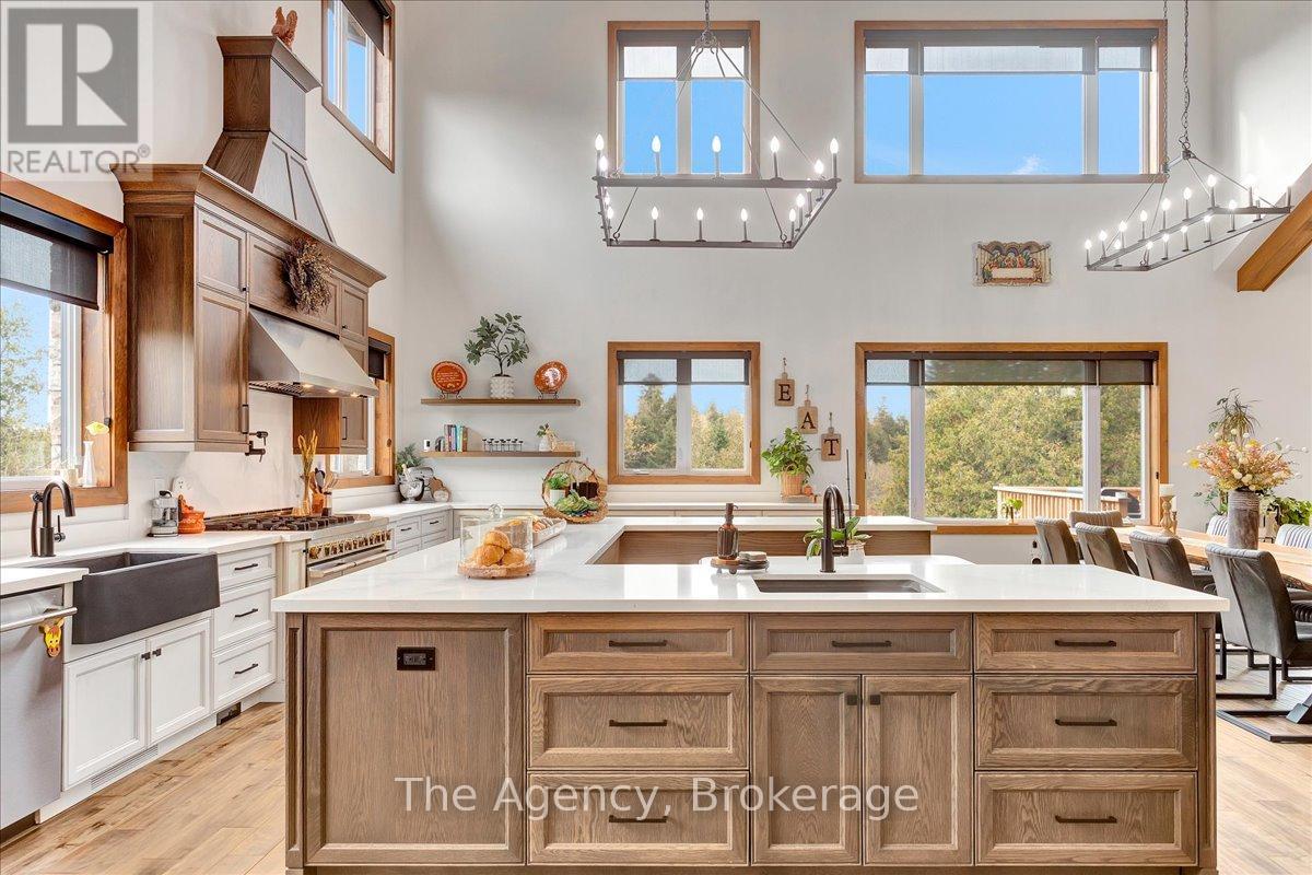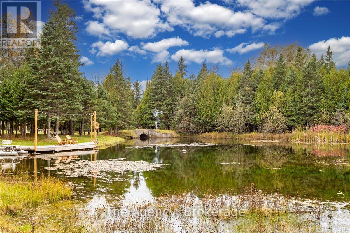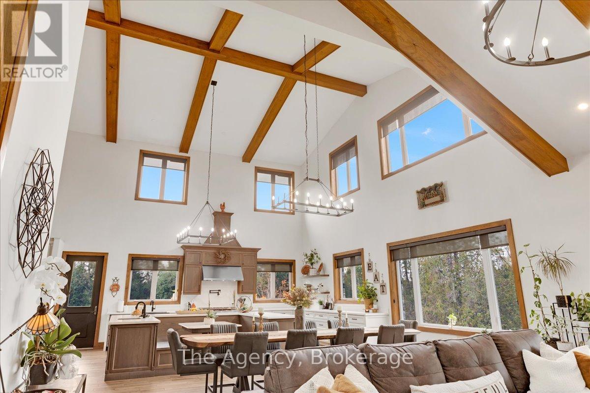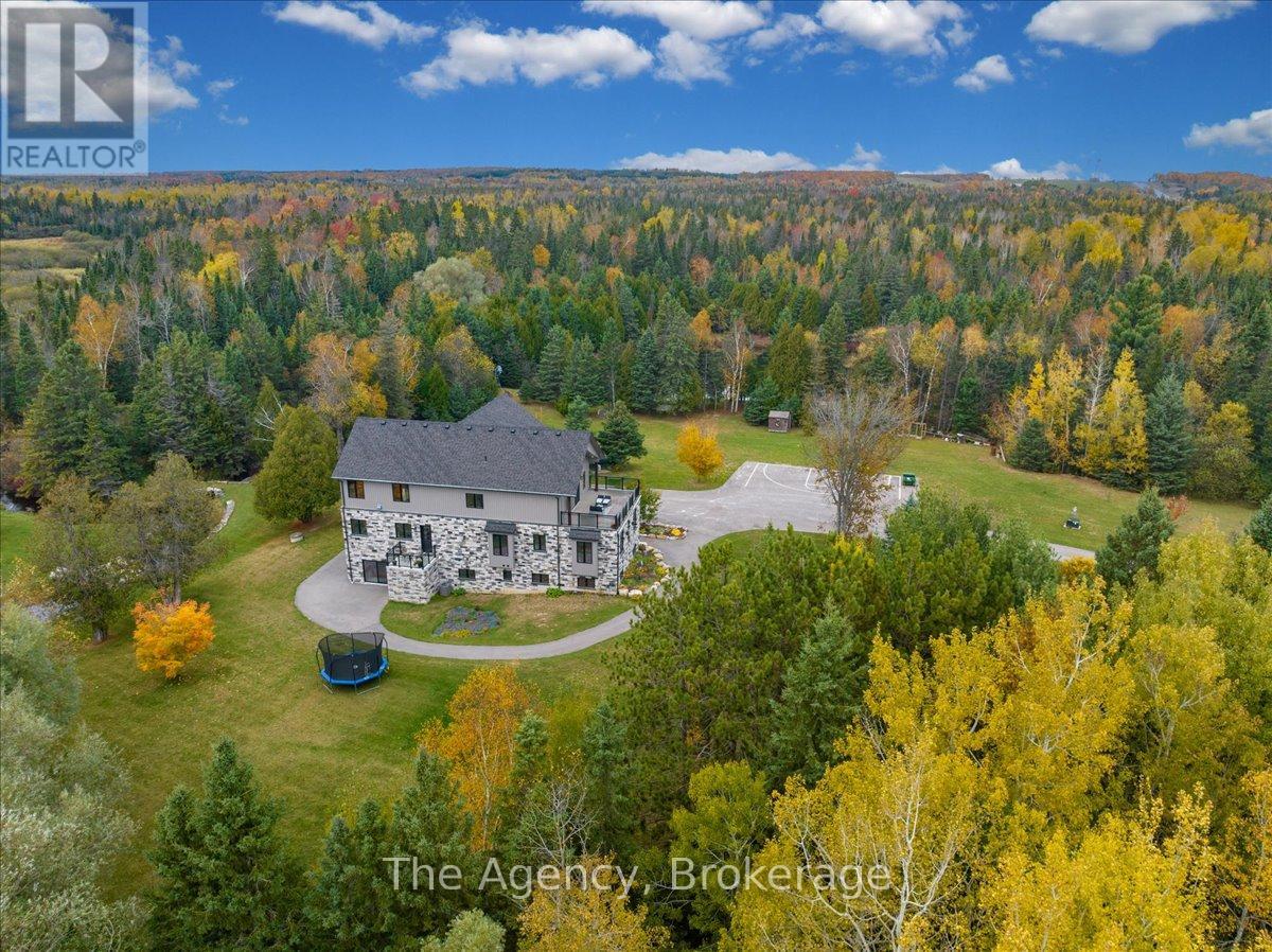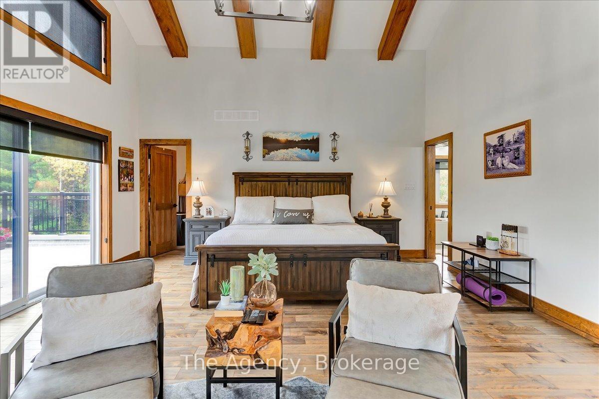 Escape the city and discover a rare offering of refined country living on 49.25 acres of picturesque land featuring streams, ponds, trails, and exceptional natural beauty. This custom-built 5+1 bedroom luxury estate blends modern living with the tranquility of nature, creating a lifestyle defined by privacy, space, and sophistication. Built in 2020 and set over 700 ft from the road down a long winding driveway, the property offers complete seclusion while still providing convenient access to a main road. With over 5,800 sq ft of finished living space, this home is ideal for large or multi-generational families and offers exceptional flexibility, including potential for 3 units. The lower level currently features 1 in-law suite, plus a rough-in for a second kitchen, creating potential for a second suite. With a total of 3 laundry areas throughout the home, the layout is well-suited for multi-generational living or income potential. The main level showcases soaring vaulted ceilings and expansive principal rooms designed for both comfort and entertaining. A bright great room flows into the designer kitchen, the heart of the home, featuring a statement banquette-style island, 48" gas range, 48" refrigerator, beverage fridge, and built-in pantry. Rich hardwood flooring and custom wood trim run throughout, and each bedroom includes a walk-in closet and private ensuite. Main floor laundry adds everyday convenience. The second-floor primary retreat offers vaulted ceilings and direct access to a large private patio overlooking the estate, creating a peaceful and private sanctuary. Outside, enjoy your own private park with scenic trails, flowing streams, and tranquil ponds. Additional highlights include a full gym, Generac generator, EV charger, and new underground 400-amp service (200 amp to the home and 200 amp available for a future outbuilding). Approval is in place for a detached shop, adding further value and versatility to this exceptional country estate (id:43681)