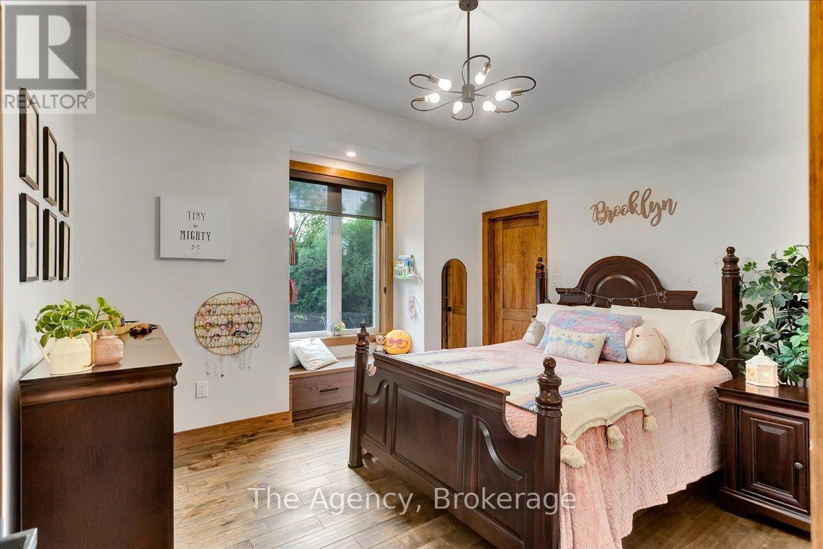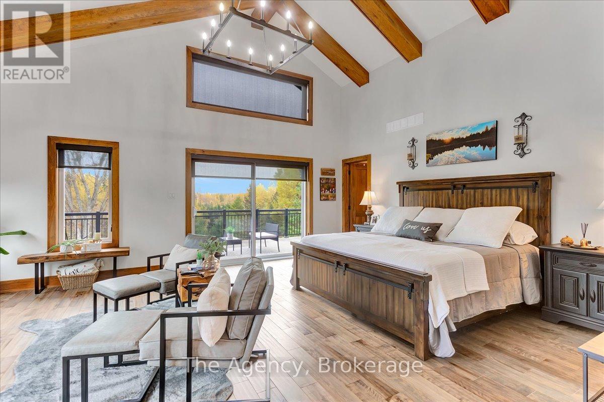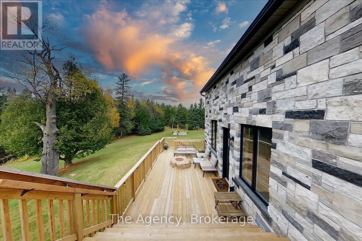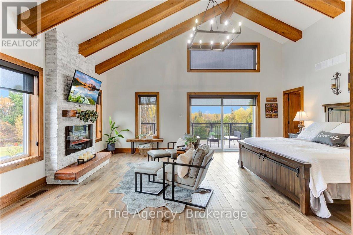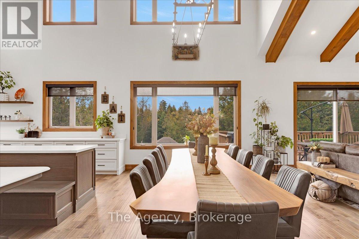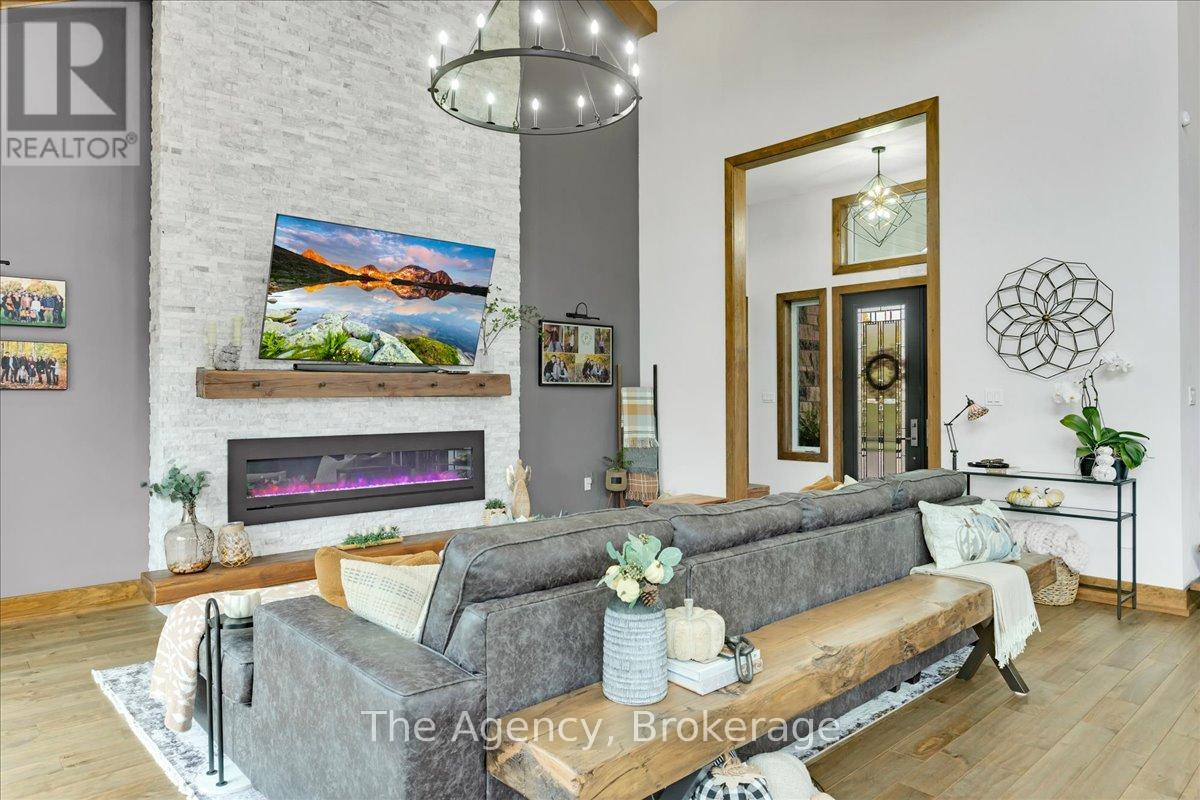 Escape the city and discover a rare offering of refined country living on 49.25 acres of picturesque land featuring streams, ponds, trails, and exceptional natural beauty. This custom-built 5+1 bedroom luxury estate blends modern living with the tranquility of nature, creating a lifestyle defined by privacy, space, and sophistication. Built in 2020 and set over 700 ft from the road down a long winding driveway, the property offers complete seclusion while still providing convenient access to a main road. With over 5,800 sq ft of finished living space, this home is ideal for large or multi-generational families and offers exceptional flexibility, including potential for 3 units. The lower level currently features 1 in-law suite, plus a rough-in for a second kitchen, creating potential for a second suite. With a total of 3 laundry areas throughout the home, the layout is well-suited for multi-generational living or income potential. The main level showcases soaring vaulted ceilings and expansive principal rooms designed for both comfort and entertaining. A bright great room flows into the designer kitchen, the heart of the home, featuring a statement banquette-style island, 48" gas range, 48" refrigerator, beverage fridge, and built-in pantry. Rich hardwood flooring and custom wood trim run throughout, and each bedroom includes a walk-in closet and private ensuite. Main floor laundry adds everyday convenience. The second-floor primary retreat offers vaulted ceilings and direct access to a large private patio overlooking the estate, creating a peaceful and private sanctuary. Outside, enjoy your own private park with scenic trails, flowing streams, and tranquil ponds. Additional highlights include a full gym, Generac generator, EV charger, and new underground 400-amp service (200 amp to the home and 200 amp available for a future outbuilding). Approval is in place for a detached shop, adding further value and versatility to this exceptional country estate (id:43681)