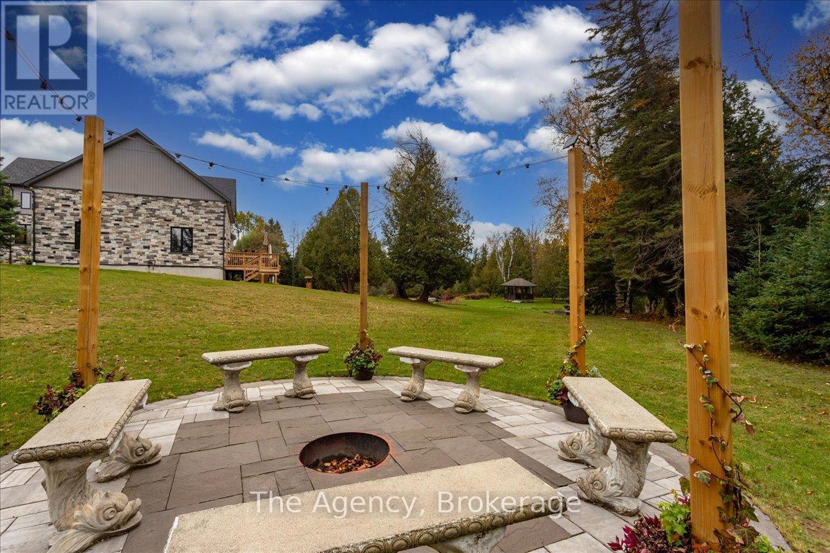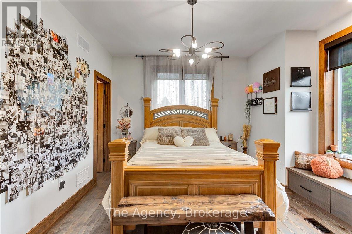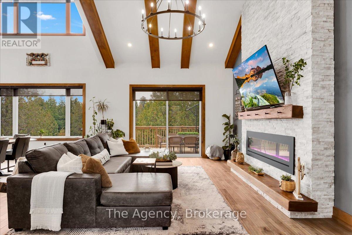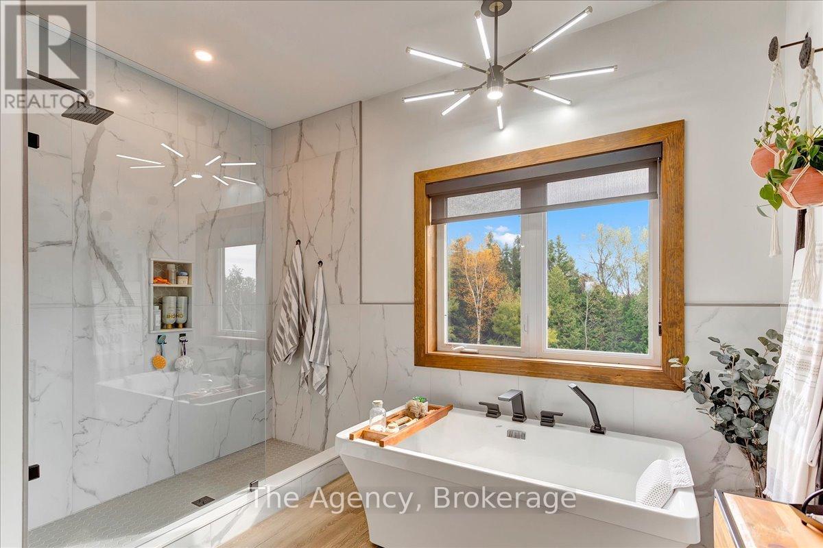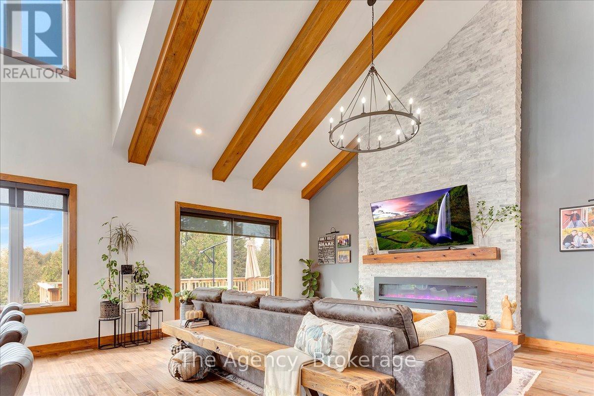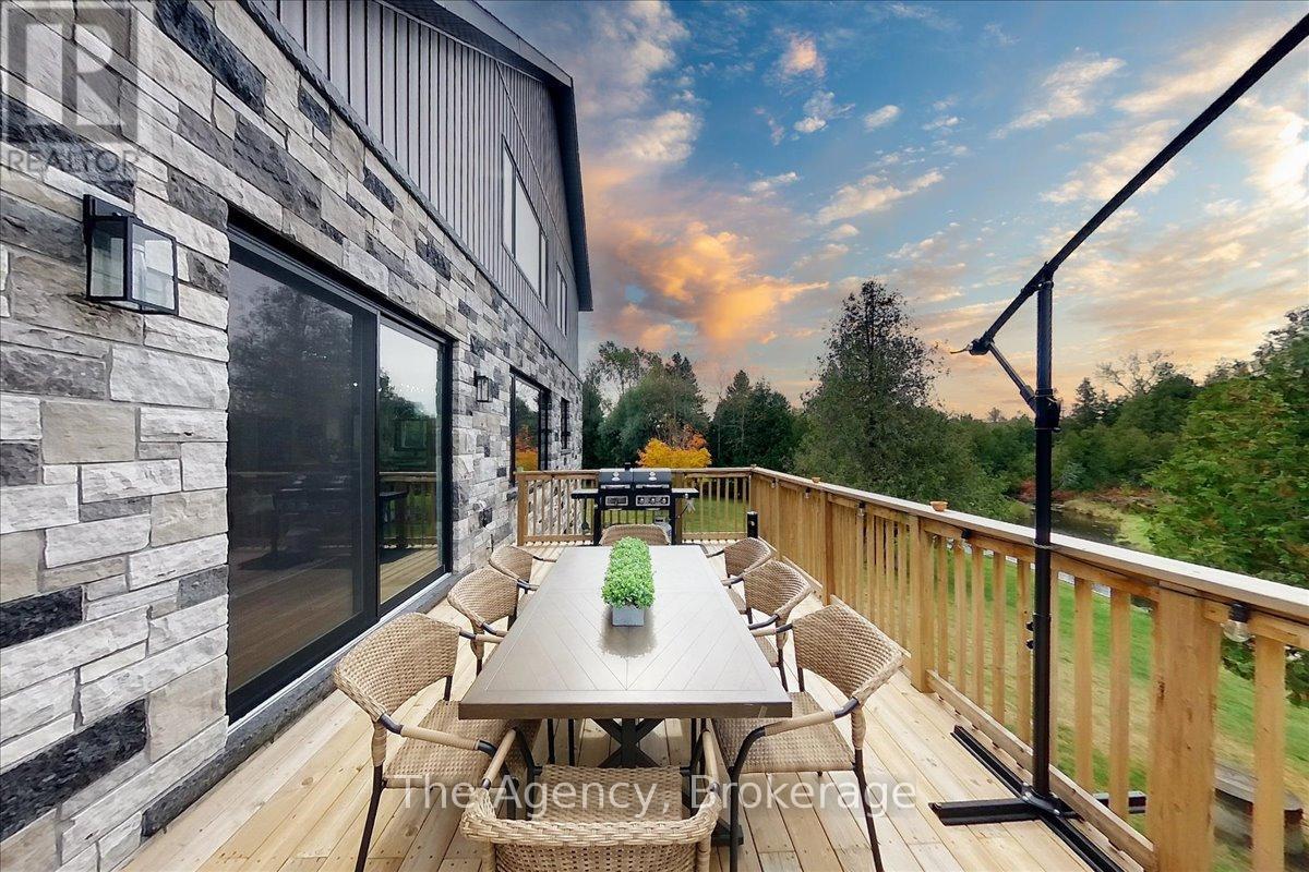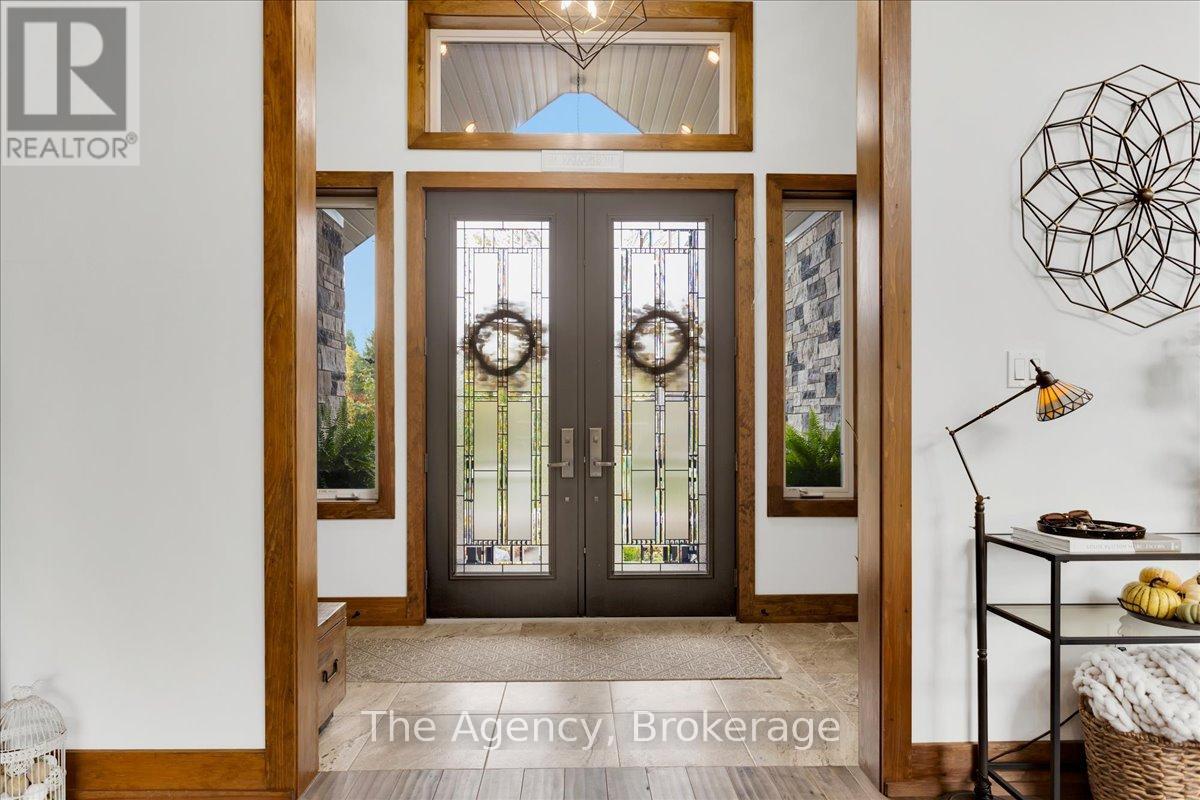 Escape the city and discover a rare offering of refined country living on 49.25 acres of picturesque land featuring streams, ponds, trails, and exceptional natural beauty. This custom-built 5+1 bedroom luxury estate blends modern living with the tranquility of nature, creating a lifestyle defined by privacy, space, and sophistication. Built in 2020 and set over 700 ft from the road down a long winding driveway, the property offers complete seclusion while still providing convenient access to a main road. With over 5,800 sq ft of finished living space, this home is ideal for large or multi-generational families and offers exceptional flexibility, including potential for 3 units. The lower level currently features 1 in-law suite, plus a rough-in for a second kitchen, creating potential for a second suite. With a total of 3 laundry areas throughout the home, the layout is well-suited for multi-generational living or income potential. The main level showcases soaring vaulted ceilings and expansive principal rooms designed for both comfort and entertaining. A bright great room flows into the designer kitchen, the heart of the home, featuring a statement banquette-style island, 48" gas range, 48" refrigerator, beverage fridge, and built-in pantry. Rich hardwood flooring and custom wood trim run throughout, and each bedroom includes a walk-in closet and private ensuite. Main floor laundry adds everyday convenience. The second-floor primary retreat offers vaulted ceilings and direct access to a large private patio overlooking the estate, creating a peaceful and private sanctuary. Outside, enjoy your own private park with scenic trails, flowing streams, and tranquil ponds. Additional highlights include a full gym, Generac generator, EV charger, and new underground 400-amp service (200 amp to the home and 200 amp available for a future outbuilding). Approval is in place for a detached shop, adding further value and versatility to this exceptional country estate (id:43681)