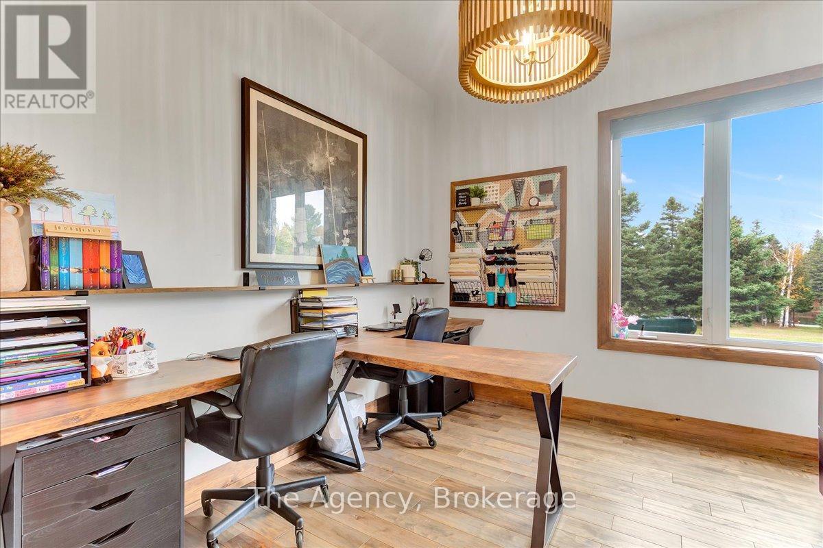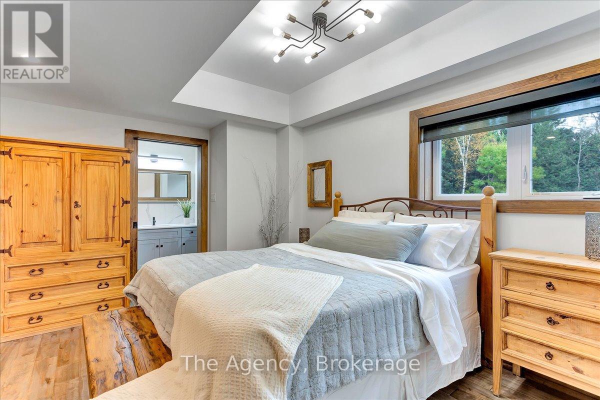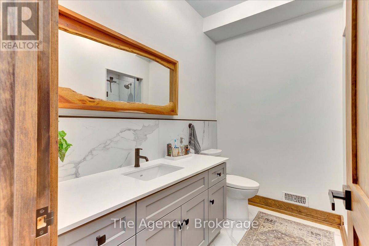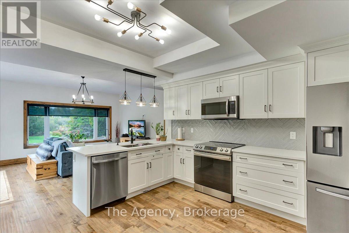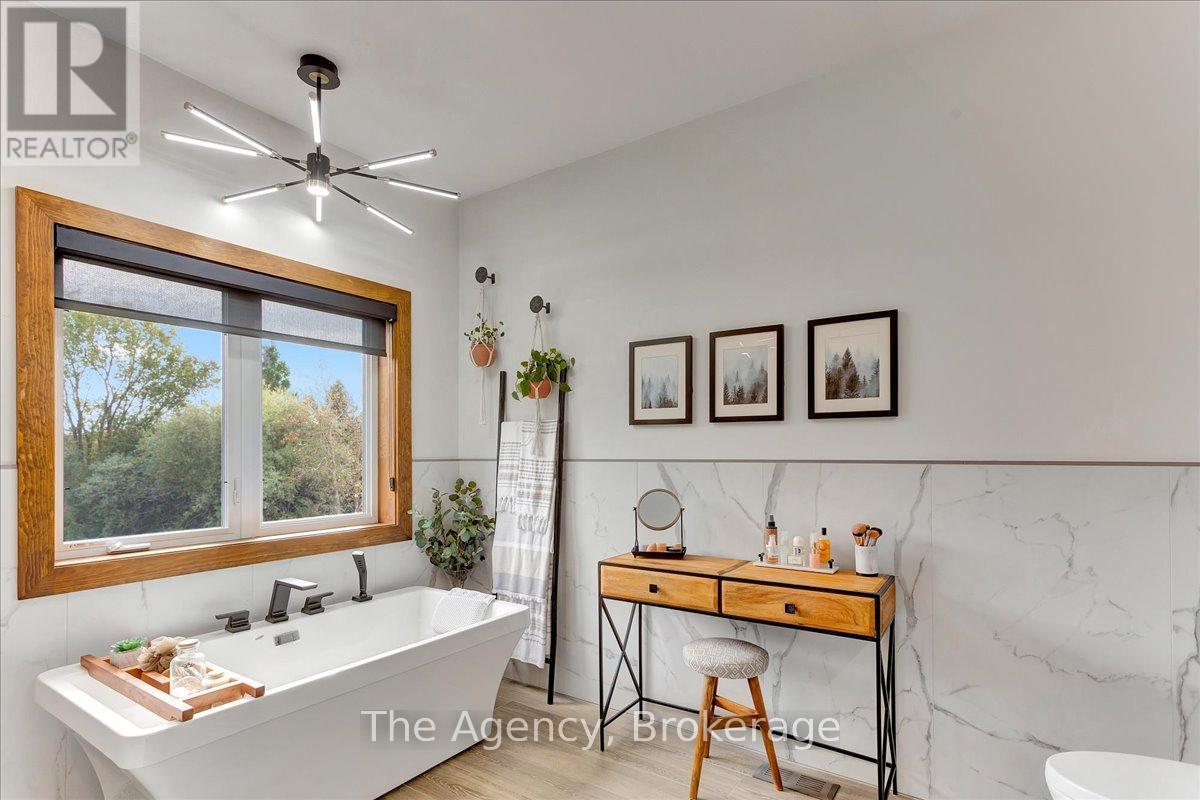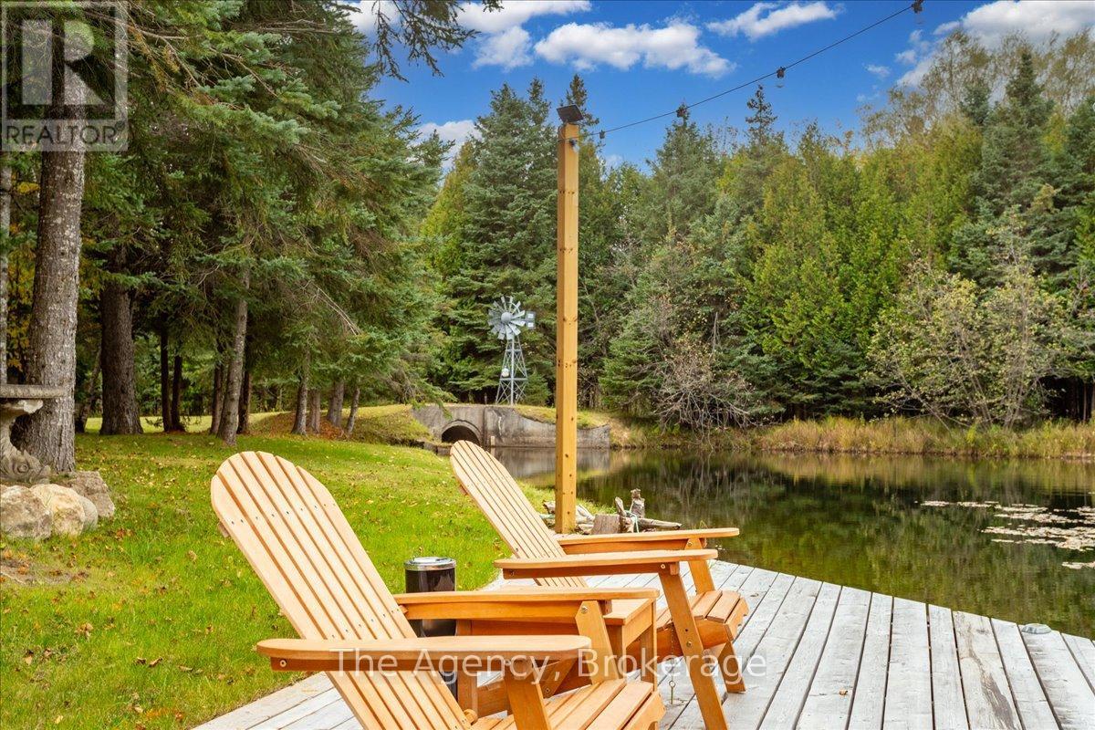 Escape the city and discover a rare offering of refined country living on 49.25 acres of picturesque land featuring streams, ponds, trails, and exceptional natural beauty. This custom-built 5+1 bedroom luxury estate blends modern living with the tranquility of nature, creating a lifestyle defined by privacy, space, and sophistication. Built in 2020 and set over 700 ft from the road down a long winding driveway, the property offers complete seclusion while still providing convenient access to a main road. With over 5,800 sq ft of finished living space, this home is ideal for large or multi-generational families and offers exceptional flexibility, including potential for 3 units. The lower level currently features 1 in-law suite, plus a rough-in for a second kitchen, creating potential for a second suite. With a total of 3 laundry areas throughout the home, the layout is well-suited for multi-generational living or income potential. The main level showcases soaring vaulted ceilings and expansive principal rooms designed for both comfort and entertaining. A bright great room flows into the designer kitchen, the heart of the home, featuring a statement banquette-style island, 48" gas range, 48" refrigerator, beverage fridge, and built-in pantry. Rich hardwood flooring and custom wood trim run throughout, and each bedroom includes a walk-in closet and private ensuite. Main floor laundry adds everyday convenience. The second-floor primary retreat offers vaulted ceilings and direct access to a large private patio overlooking the estate, creating a peaceful and private sanctuary. Outside, enjoy your own private park with scenic trails, flowing streams, and tranquil ponds. Additional highlights include a full gym, Generac generator, EV charger, and new underground 400-amp service (200 amp to the home and 200 amp available for a future outbuilding). Approval is in place for a detached shop, adding further value and versatility to this exceptional country estate (id:43681)