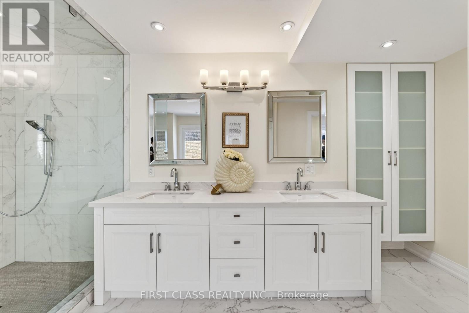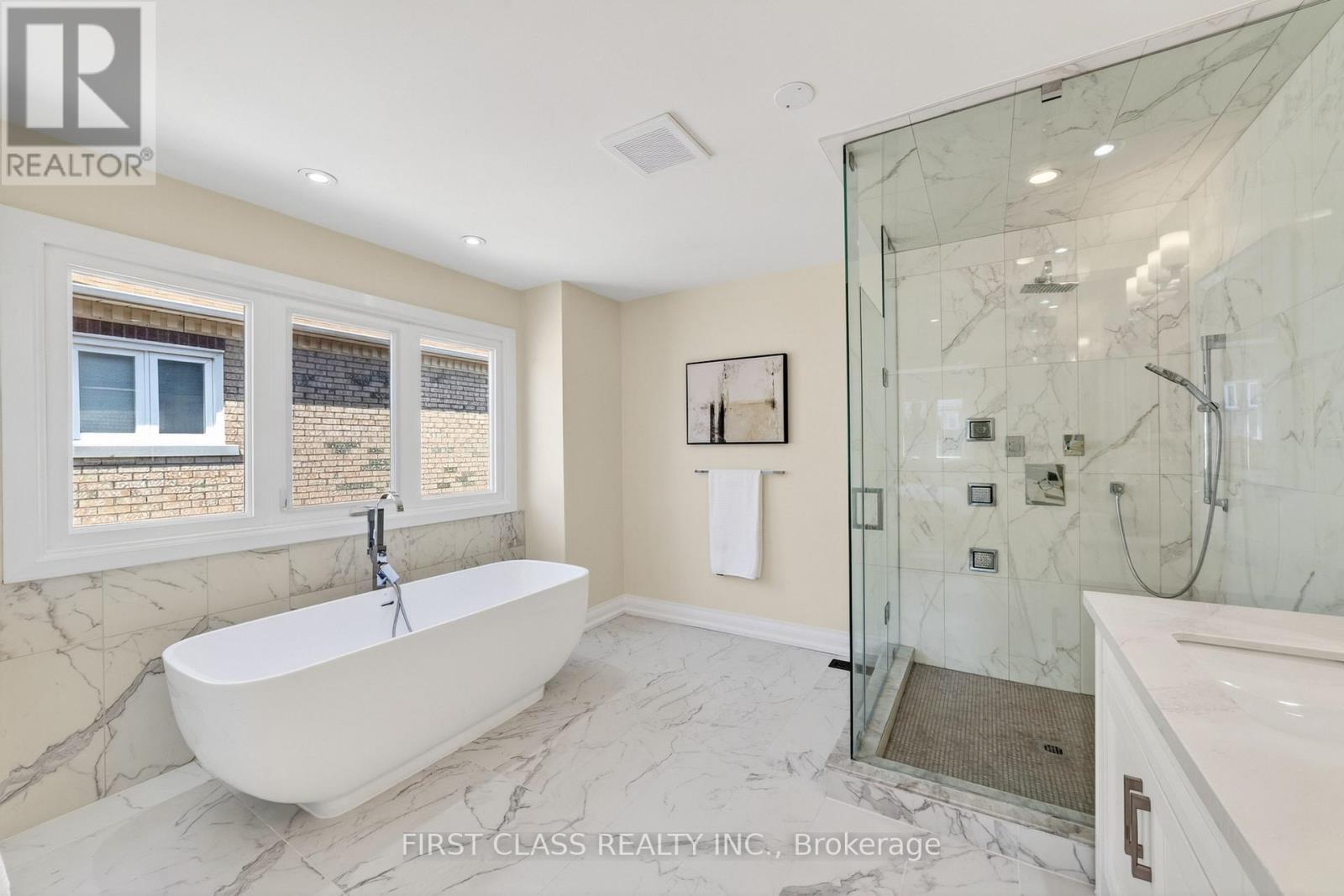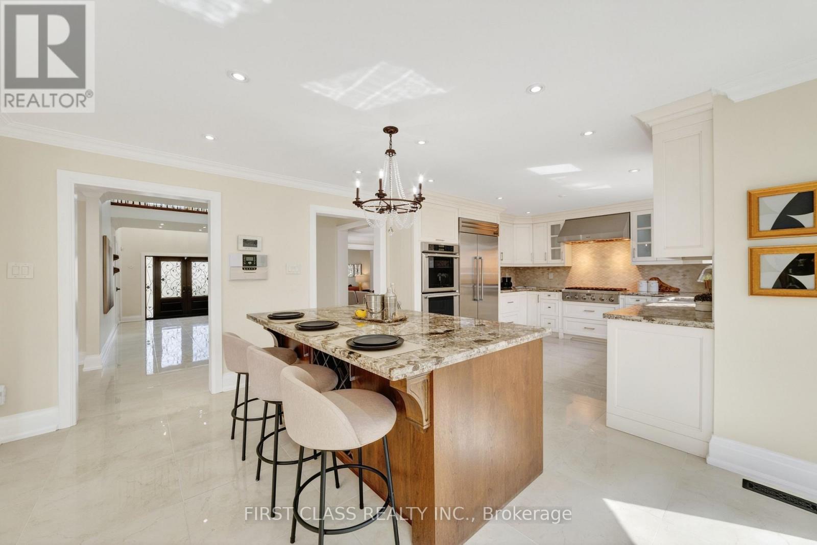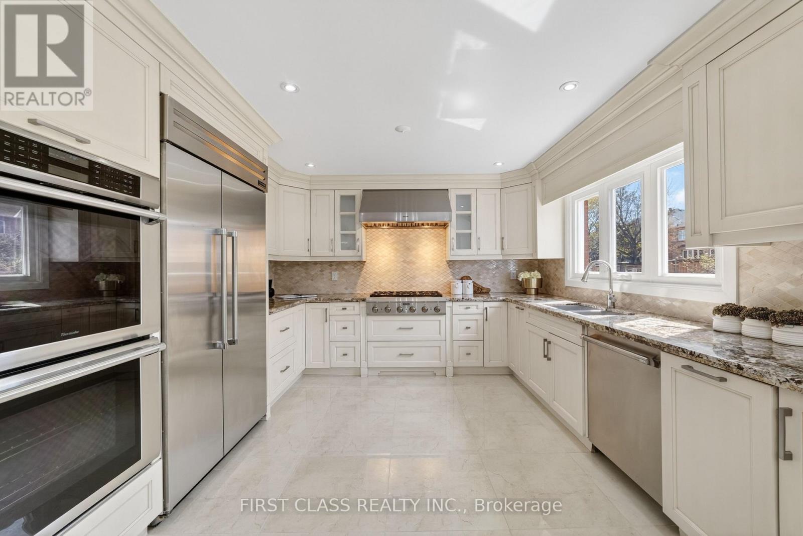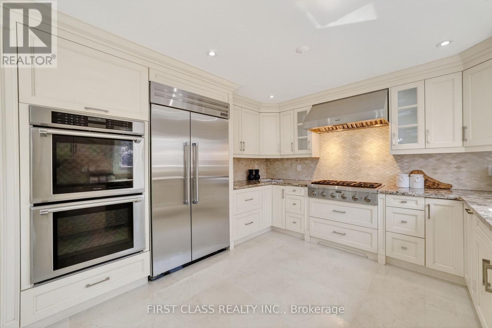 Immaculate & Move-In Ready Executive Home in Prestigious Bayview Hill! Situated on a premium nearly 60 ft frontage lot on a quiet street, this beautifully renovated and meticulously maintained classic residence offers elegant living in one of Richmond Hill's most sought-after communities with approx. 5500 sq.ft. of total living space. Featuring 4 spacious bedrooms, 2 ensuites, and 5 bathrooms, this home also offers a ground-floor office and two additional bedrooms in the finished basement, all within a bright and highly functional layout and true turnkey condition. Enjoy high-quality site-finished hardwood flooring throughout, a modern granite kitchen with commercial-grade Thermador appliances, updated bathrooms including heated flooring in the primary ensuite, majestic cast-iron double front doors with side panels, wrought-iron staircase, and an impressive 18' grand foyer with soaring skylight. Elegant sunken family room with a stunning stone fireplace creates the perfect gathering space, while the ground-floor office is ideal for working from home. Exceptionally well maintained with a clean, modern, and move-in-ready interior. The finished basement includes a recreation room, two bedrooms, and a full bathroom-ideal for extended family or guests. Sunny private backyard with 2022 interlocking, fully interlocked front yard, and roof updated in 2021.Located in the luxury Bayview Hill community, walking distance to Bayview Secondary School, parks, plazas, shopping, Walmart, and all amenities. A rare opportunity to own a fully renovated executive family home in an unbeatable location. (id:43681)