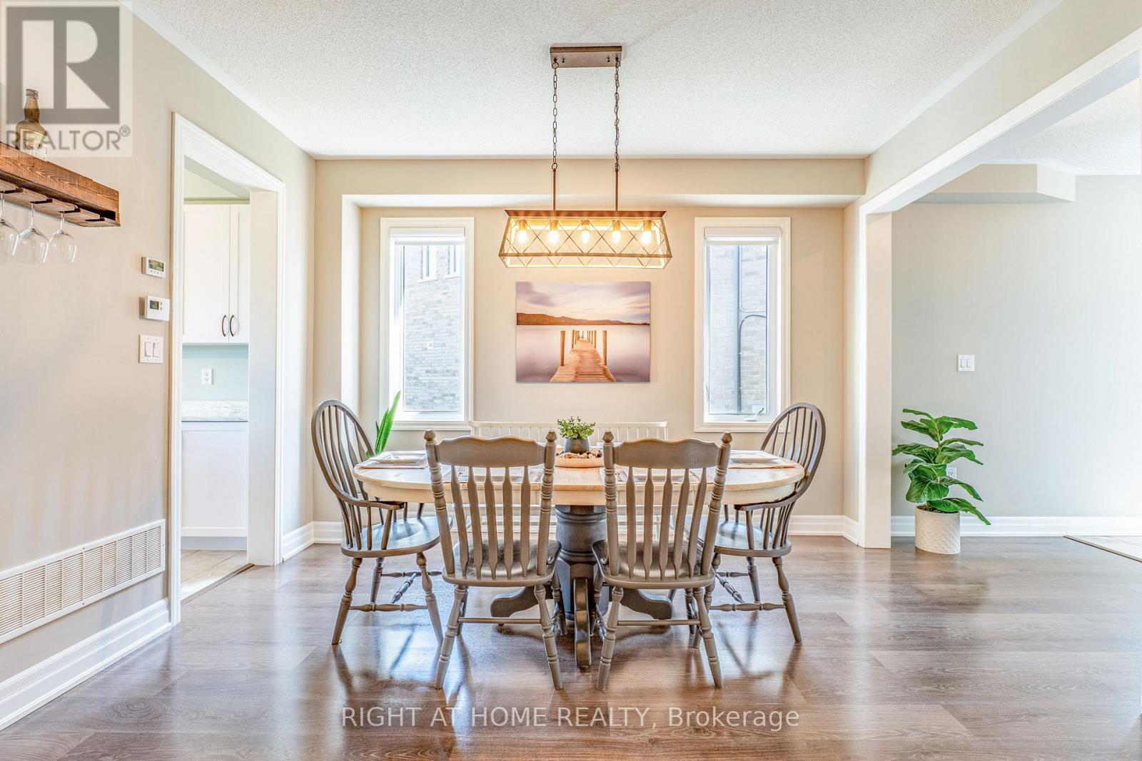 Stunning Home Backing onto Greenspace, Trails & Sunset Views in Coveted Woodlands! Welcome to this beautifully designed 4-bedroom, 3.5-bath, two-storey home offering 2,280 sq ft of bright, functional living space in one of Angus's most sought-after communities. Backing directly onto parkland and scenic walking trails, this premium lot delivers privacy, nature, and breathtaking sunset views right from your backyard. Step inside to 9 ft ceilings and a seamless blend of 12x24 tile and modern laminate flooring throughout the main level. The main floor offers a bright, open layout featuring a fresh white kitchen with black stainless-steel appliances, a sun-filled breakfast area with walkout to a deck overlooking greenspace, and a separate dining room, ideal for entertaining or family gatherings. The oversized living room is filled with natural light, creating a warm and inviting space to relax or host. Convenience meets function with a main floor powder room, inside access to an oversized garage, and a thoughtfully designed hall closet complete with custom built-ins. Upstairs, an elegant oak staircase leads to four generously sized carpeted bedrooms and upper level laundry room. The primary bedroom offers a walk-in closet with custom built-ins and a private en-suite featuring a glass shower, soaker tub, and double vanity. A second bedroom also enjoys its own en-suite, while another bedroom featuring a custom built-in closet and semi-ensuite access - ideal for family or guests. The fourth bedroom is bright and versatile, perfect as a bedroom, office, or flex space. The unfinished walkout basement offers incredible potential with a 3 pc rough-in and cold cellar - ideal for creating additional living space, an in-law suite, or income potential. Located in this family friendly subdivision, close to parks, schools, and amenities, this home blends comfort, style, and an unbeatable setting. Space, views, and a setting you can't replace - this one stands out! (id:43681)