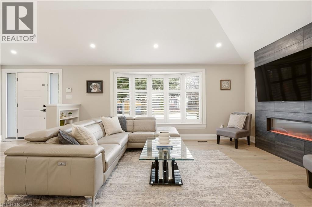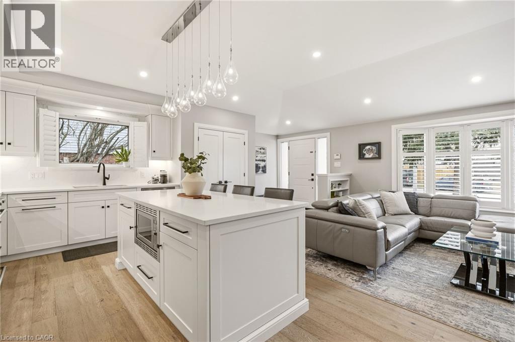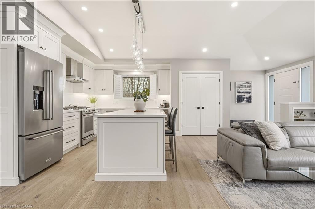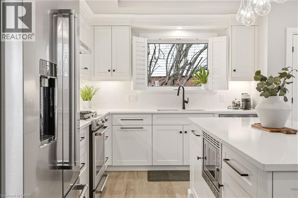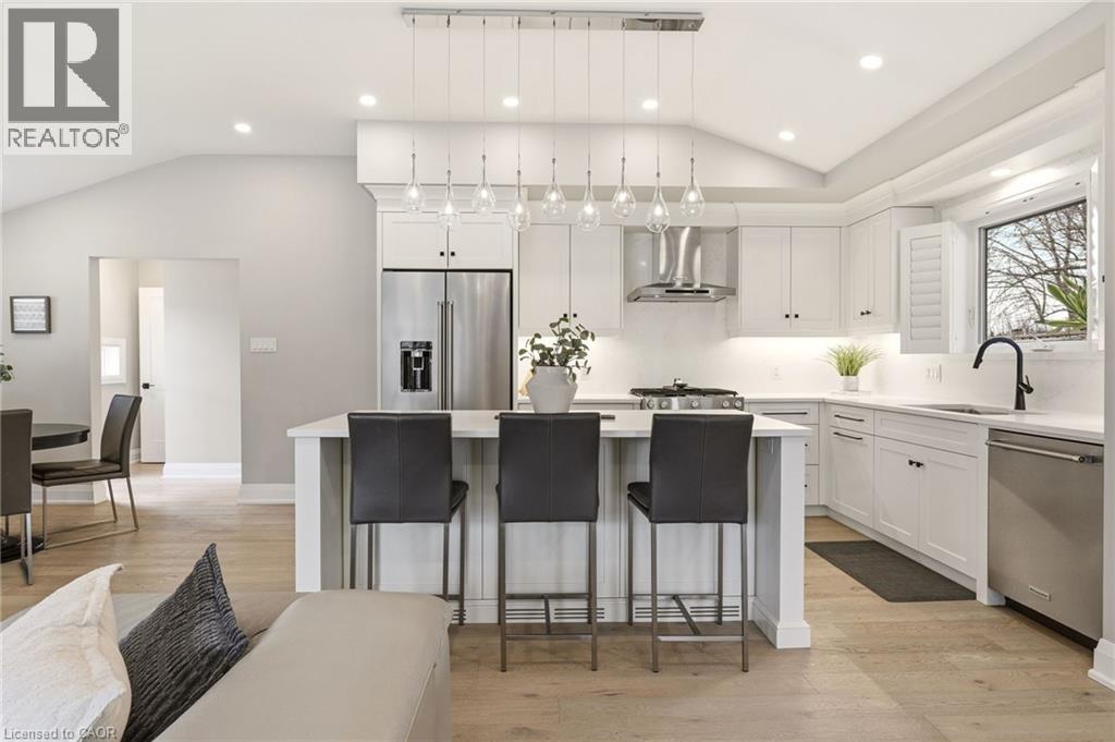 Sophisticated bungalow living in South Burlington! Welcome to 688 Mullin Way. Beautifully renovated main floor with vaulted ceilings, a chef's kitchen and an oversized island. Main bath is a spa retreat with heated floors and designer finishes. The lower level offers a seamless extension of the home, featuring a cozy recreation room with a gas fireplace, additional bedroom, and a full bath - perfect for guests or a growing family. The real magic, is in the backyard. Oversized pie lot with a heated inground salt-water pool (21' pump, 22' new heater/salt conversion, 23' new liner) multiple seating areas and cabana backing onto Sherwoood Park. The detached double-car garage is a blank canvas. Whether you envision a high-tech golf simulator, a professional home gym, or an executive garden office, this space is ready for your vision. With quick access to the GO Station and major highways, commuting is effortless, while the quiet, low-traffic street adds to the peaceful charm this sought-after neighbourhood is known for. (id:43681)