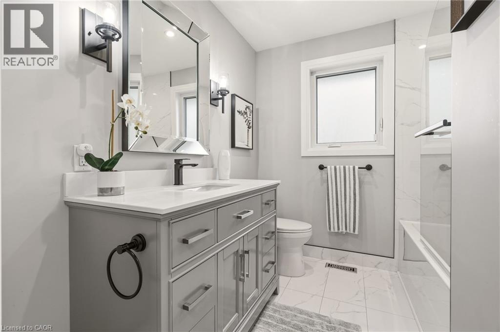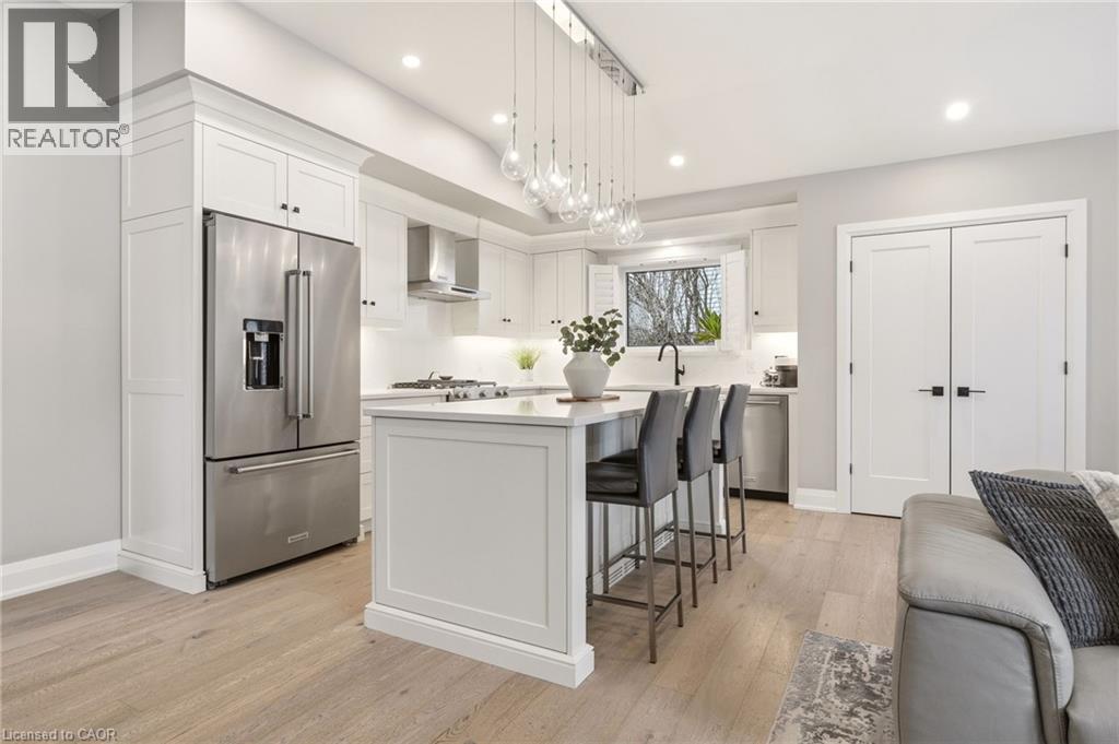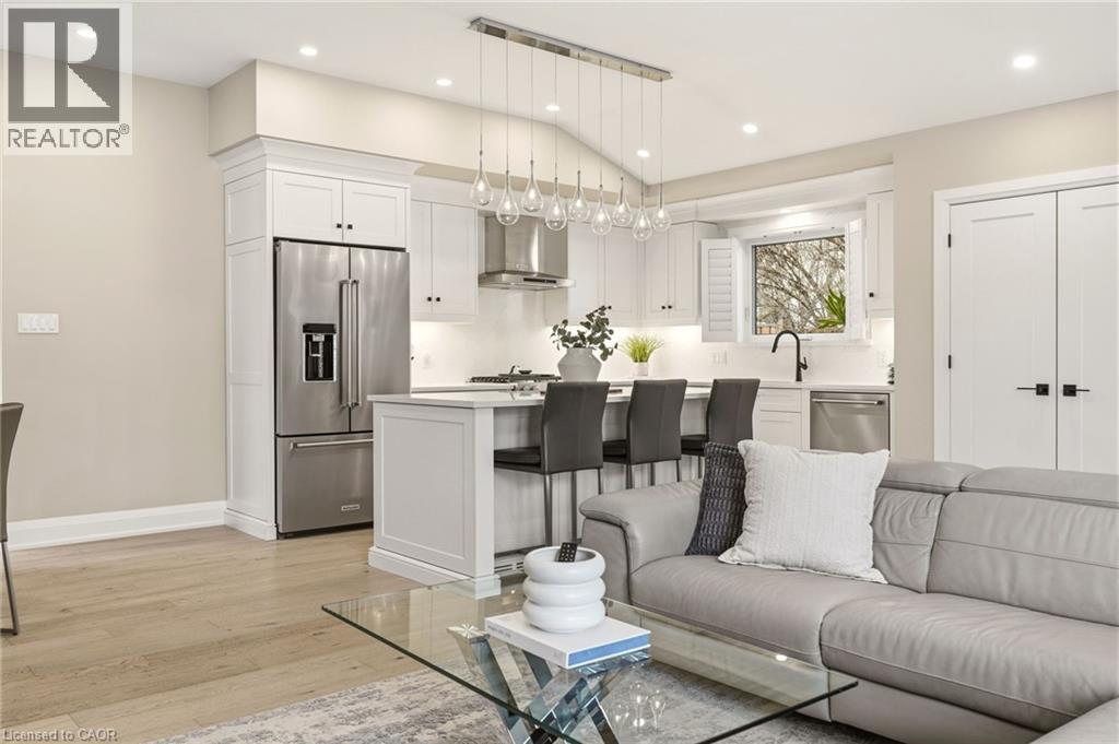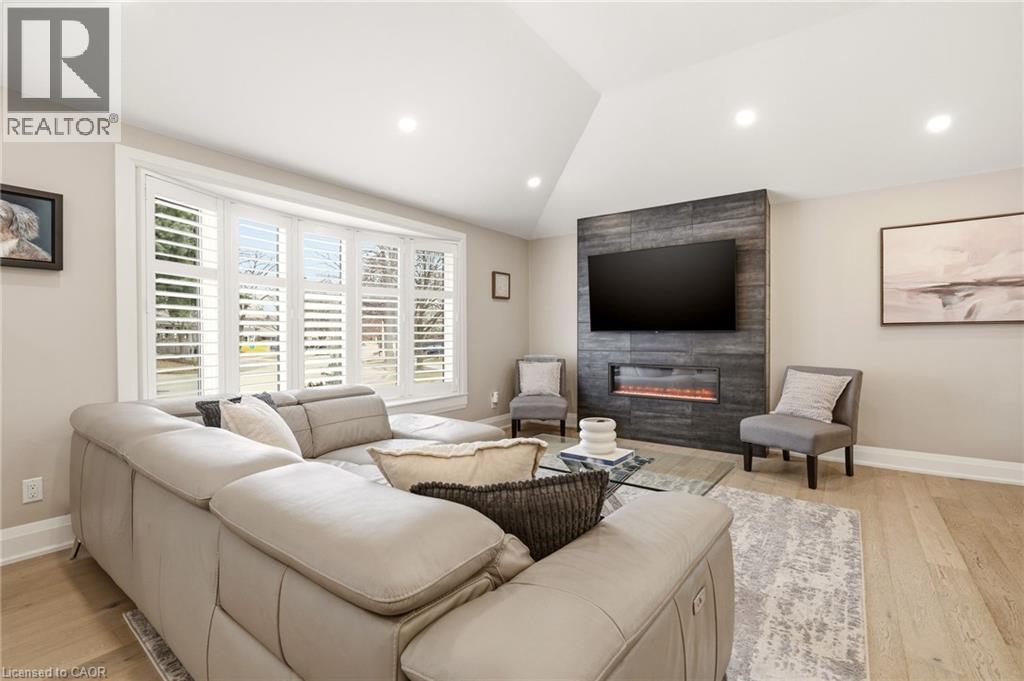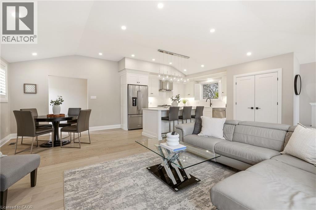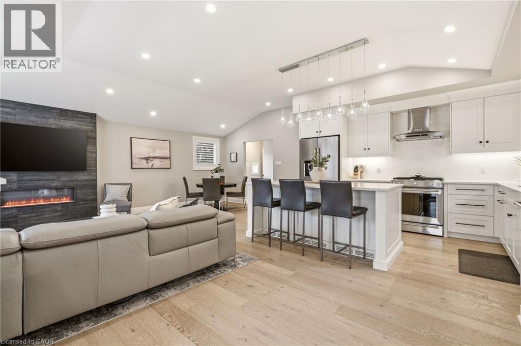 Sophisticated bungalow living in South Burlington! Welcome to 688 Mullin Way. Beautifully renovated main floor with vaulted ceilings, a chef's kitchen and an oversized island. Main bath is a spa retreat with heated floors and designer finishes. The lower level offers a seamless extension of the home, featuring a cozy recreation room with a gas fireplace, additional bedroom, and a full bath - perfect for guests or a growing family. The real magic, is in the backyard. Oversized pie lot with a heated inground salt-water pool (21' pump, 22' new heater/salt conversion, 23' new liner) multiple seating areas and cabana backing onto Sherwoood Park. The detached double-car garage is a blank canvas. Whether you envision a high-tech golf simulator, a professional home gym, or an executive garden office, this space is ready for your vision. With quick access to the GO Station and major highways, commuting is effortless, while the quiet, low-traffic street adds to the peaceful charm this sought-after neighbourhood is known for. (id:43681)