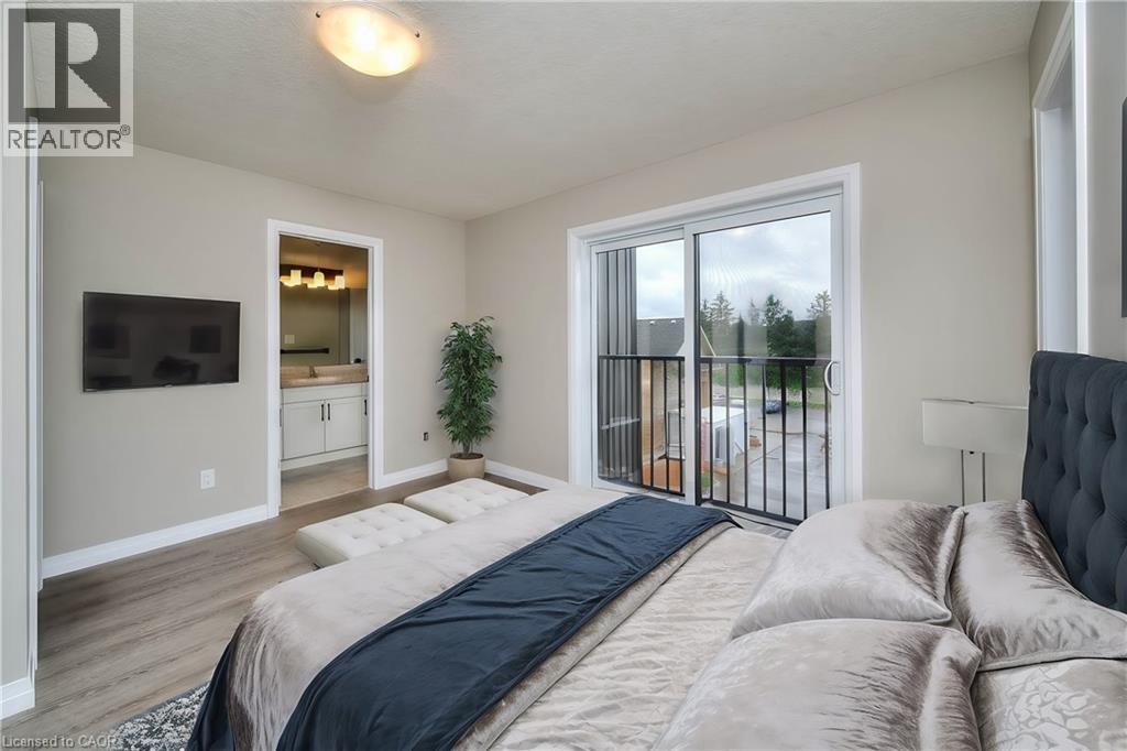 MODERN LIVING TUCKED IN THIS ACTIVE NEIGHBOURHOOD. This stylish stacked townhome is conveniently located in the desirable and growing family-friendly neighborhood of East Galt. This upper unit boasts a bright and airy open-concept layout – the kitchen with a center island offering seating, equipped with new appliances, and a large pantry perfect for casual dining or entertaining. It seamlessly flows into the living room and dining room. The townhome also includes convenient in-suite laundry facilities, saving you time and effort. With over 1500sqft with 3 bedrooms and 2.5 bathrooms including the primary suite with a 3pc bathroom and spacious walk-in closet. The contemporary finishes throughout the unit add a touch of style and sophistication. Visitor parking is available. Located just steps away from a variety of amenities, including parks. Close to schools and for those who commute or enjoy exploring the surrounding areas, the townhome is only a 4-minute drive to Highway 8, providing easy access to transportation routes. Furthermore, it is a short 14-minute drive to Valens Lake Conservation Area. Heat, hydro, gas, water, and hot water heater are to be paid by the tenant(s). Good credit is required, and a full application must be submitted. AVAILABLE immediately. Photos are virtually staged and used from the end model. (id:43681)
