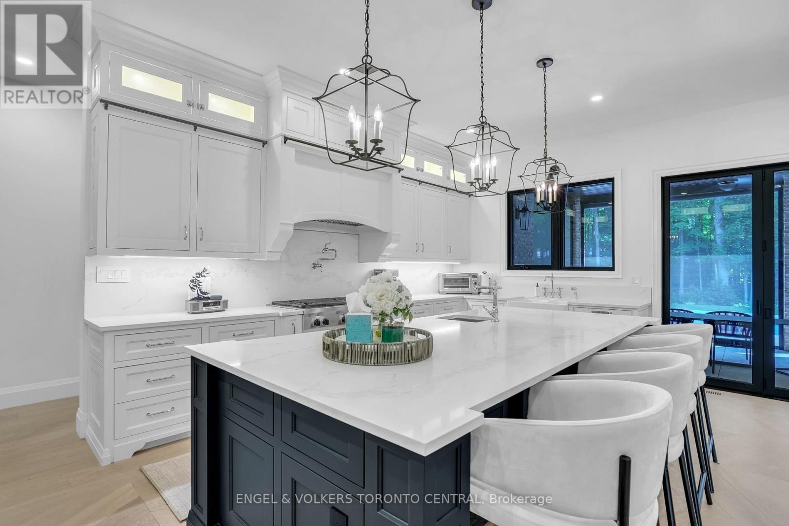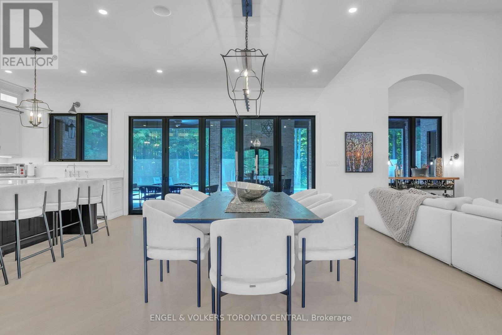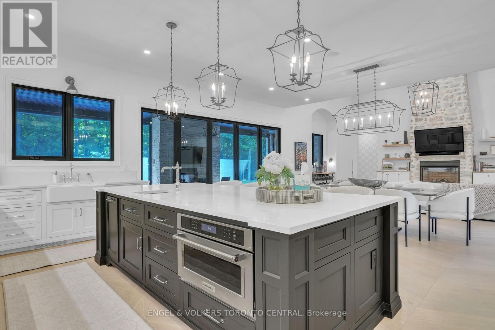 Welcome to 7 Apto Court in prestigious Apto Glen Estates, Springwater. This spectacular custom-built home is set on a private, naturally treed 1.48-acre lot on a quiet court, offering approximately 4,800 sq. ft. of beautifully finished living space. Designed for both luxury and functionality, the home features soaring 10-foot ceilings, a stunning blend of handmade clay brick, heated ceramic floors, and white oak hardwood throughout, along with a thoughtfully designed main floor layout and a versatile loft/nanny suite.The gourmet kitchen is complemented by high-end cabinetry, premium countertops, top-of-the-line appliances, and a spacious walk-in pantry, flowing seamlessly into elegant living spaces anchored by a gas fireplace. The fully finished lower level offers additional living space with radiant in-floor heating, including a home office, games room, and separate entrance, ideal for extended family or guests.Outdoor living is equally impressive, featuring a heated 18' x 36' saltwater pool, inground spa, double-sided wood-burning fireplace, and power outdoor screens, creating a true resort-style setting. Additional highlights include oversized garage doors, a separate heated shop building, custom closets, and a fully fenced yard. A rare opportunity to own a private estate property in one of Springwater's most sought-after communities. (id:43681)