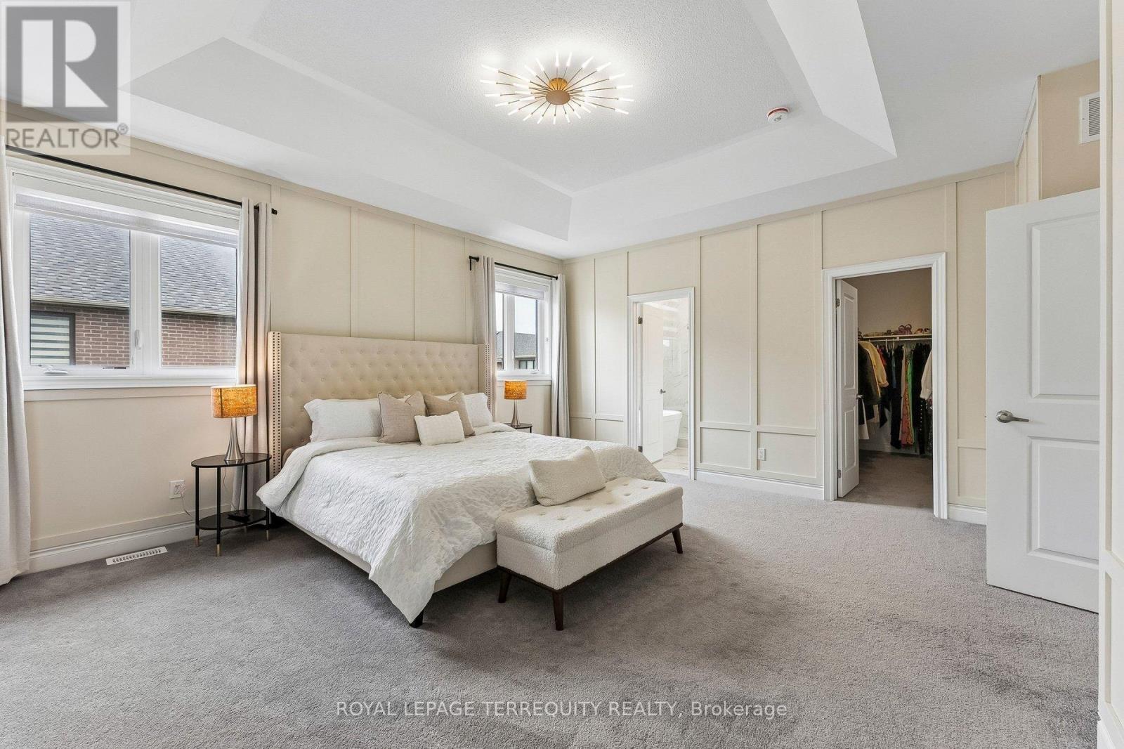 Welcome to Wedgewood in Ballantrae, ideally located near Ballantrae Golf Club. Built in 2023by Ballymore Homes, this 2,639 sq ft (above grade) detached residence sits on a premium fully fenced corner lot in a quiet, no-through-traffic subdivision, offering privacy and an exceptional lifestyle setting.This extensively upgraded home features 4 bedrooms and 4 bathrooms, highlighted by a dramatic19-ft foyer, 10-ft ceilings on the main floor, and 9-ft ceilings on the second level,complemented by 8-ft doors throughout. The open-concept main level showcases 24"x24" porcelain tile flooring, a private office, and a refined family room with custom built-ins, wall paneling, and a gas fireplace with marble mantle.The designer two-tone kitchen offers a four-tier layout with breakfast bar, centre island,stone countertops, and premium Bosch appliances including built-in double ovens and cooktop. A dedicated wine & coffee bar and a 4x4 coffered ceiling in the dining area add to the upscale feel. A 4-panel oversized sliding door opens to a premium, pool-sized backyard.Upstairs, the primary suite features a tray ceiling, wall paneling, two walk-in closets, and aspa-inspired 5-piece ensuite. The second bedroom includes a private 3-piece ensuite, while bedrooms three and four share a Jack & Jill bath, each with direct access and double closets.Additional features include main floor laundry/mudroom, roughed-in central vacuum, 200-ampservice, tankless hot water system, and an unfinished basement with permit secured for a side entrance, offering excellent future potential. (id:43681)
